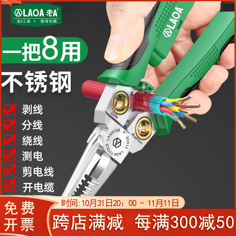 전원 측정 기능이있는 오래된 A 8-in -1 다기능 와이어 스트리퍼 와이어 절단 와이어 드로잉 케이블 절단 와이어 압착 와이어 펜치 전기 펜치스토어 가기