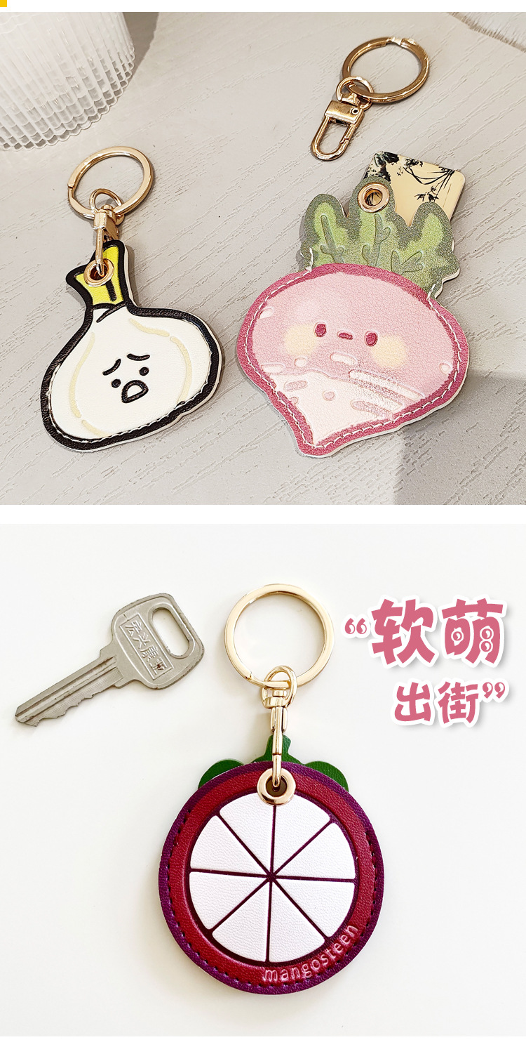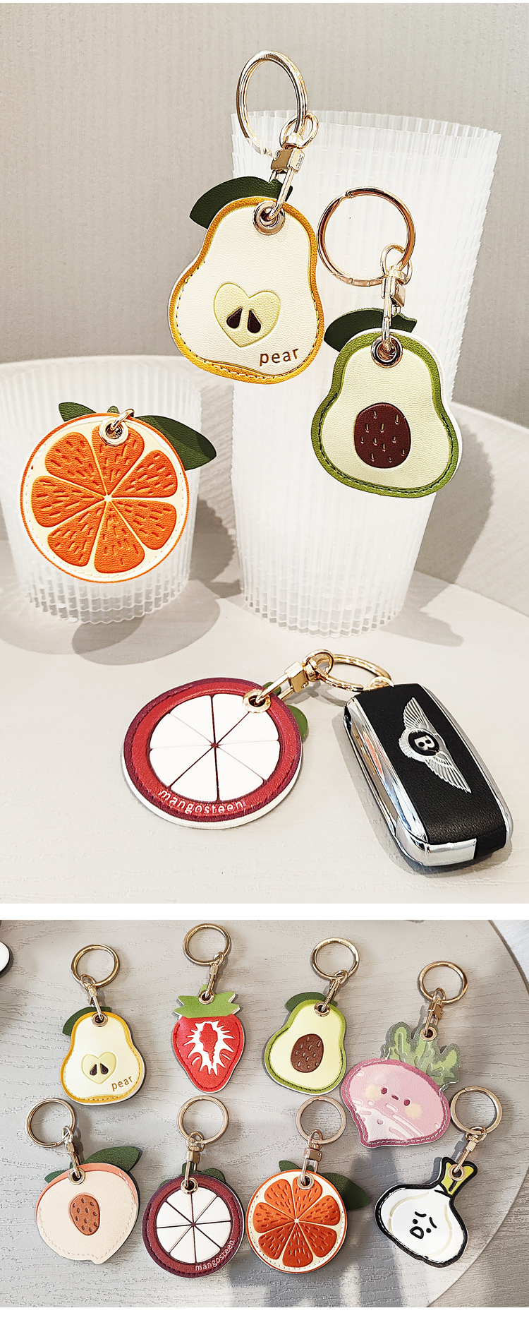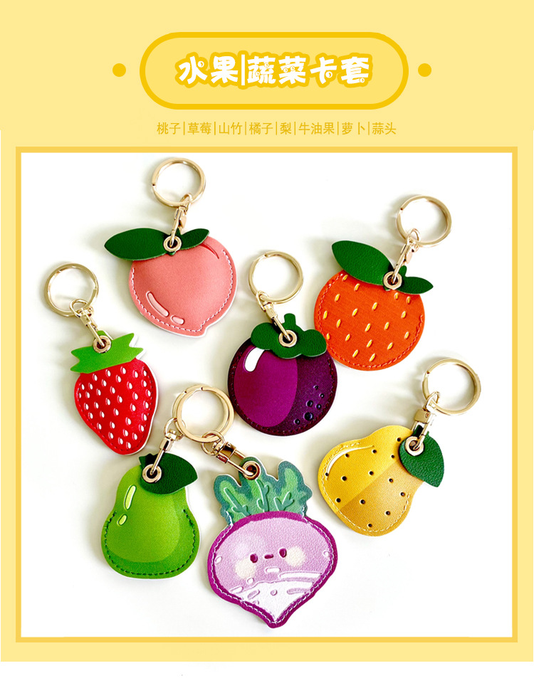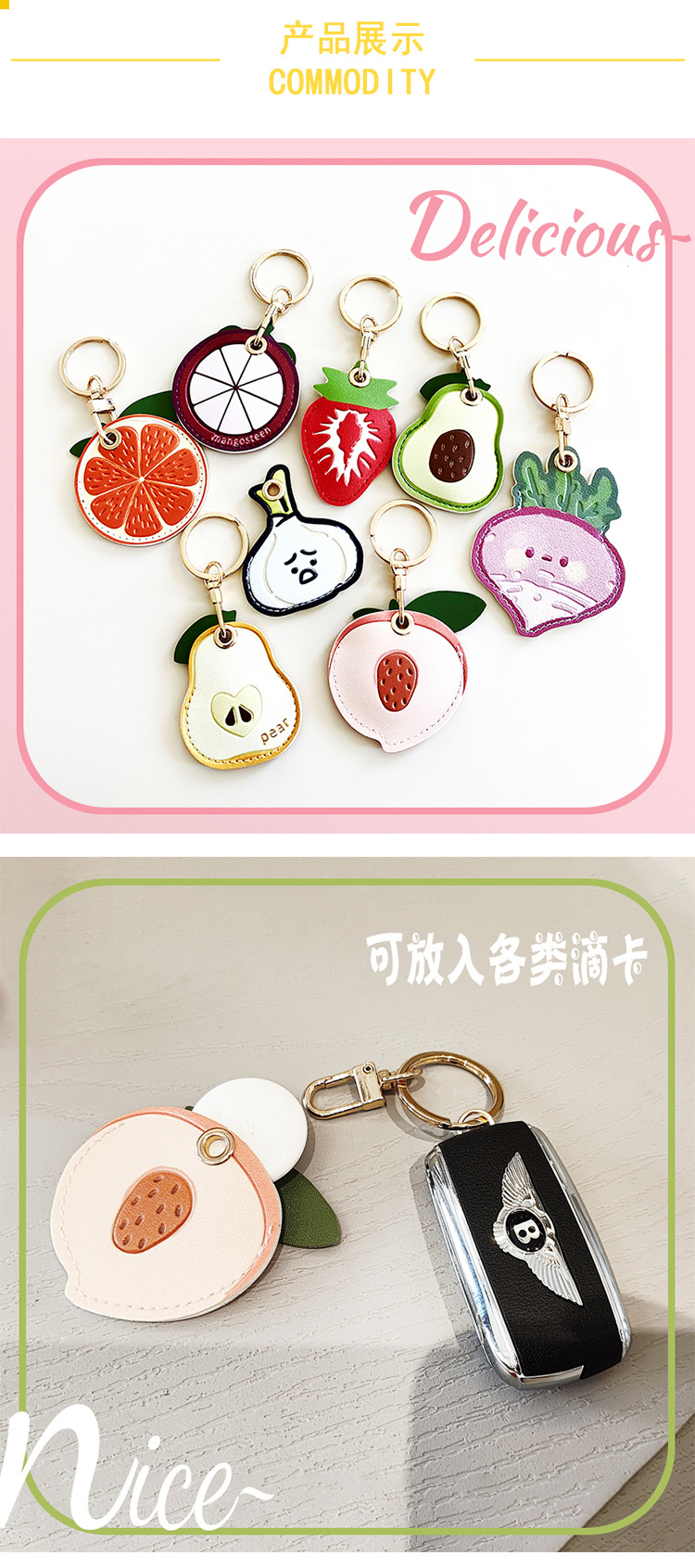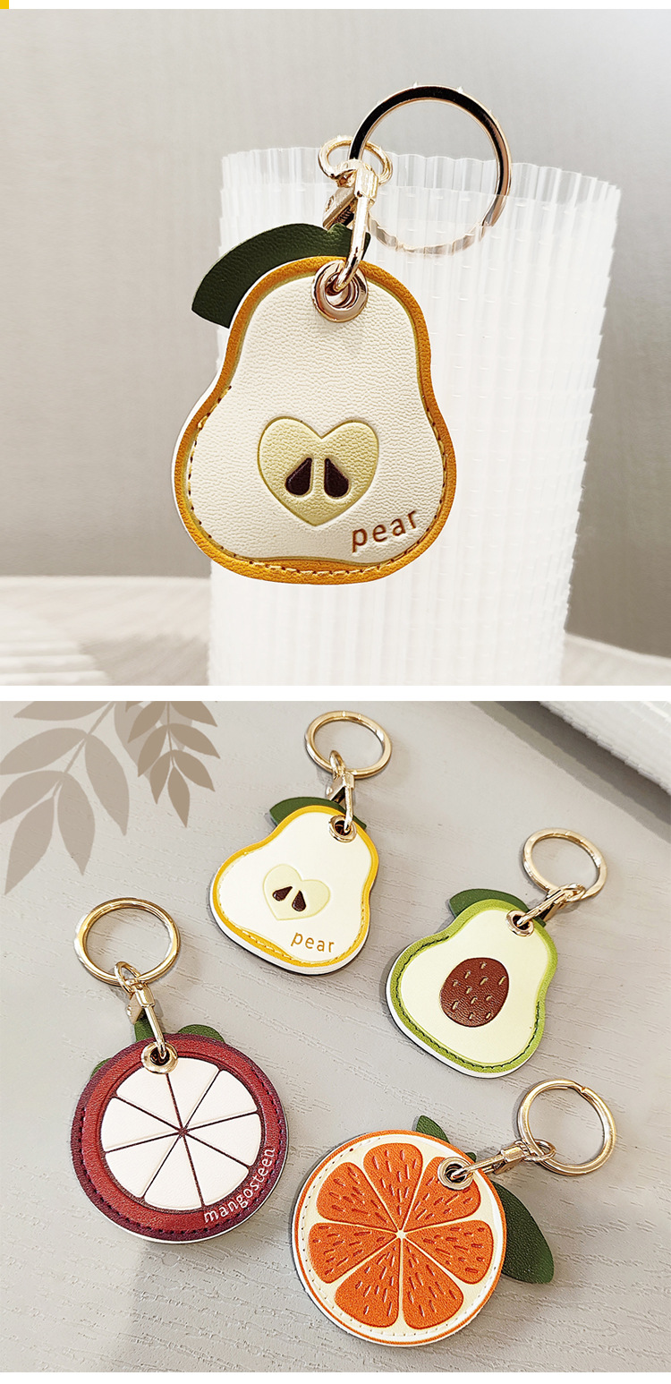 가죽 과일 시리즈 PU 가죽 출입 통제 카드 케이스 에어태그 보호 케이스 창의적인 열쇠고리 귀여운 가방 장식스토어 가기