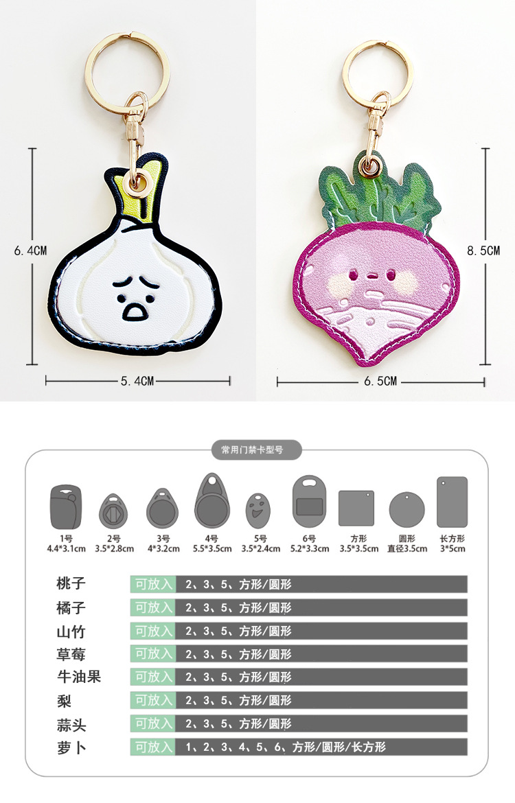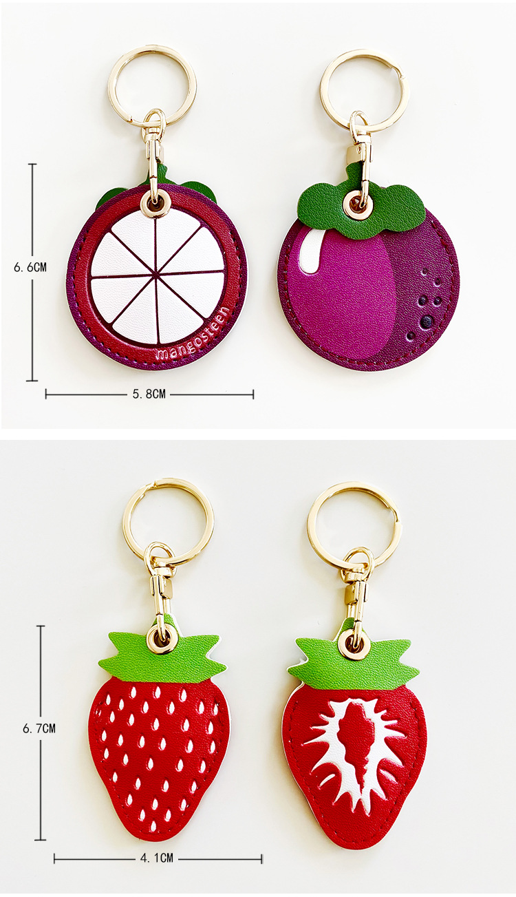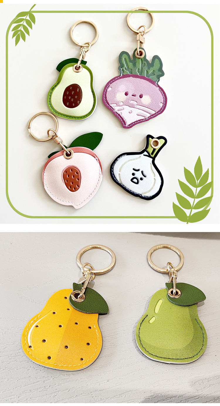 가죽 과일 시리즈 PU 가죽 출입 통제 카드 케이스 에어태그 보호 케이스 창의적인 열쇠고리 귀여운 가방 장식