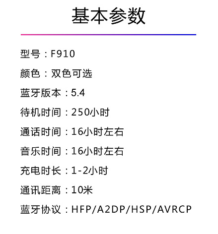 F910 블루투스 헤드셋 F900 귀걸이 사이클링 스포츠 실행 블루투스 5.4 듀얼 마이크 소음 감소 슈퍼 긴 대기