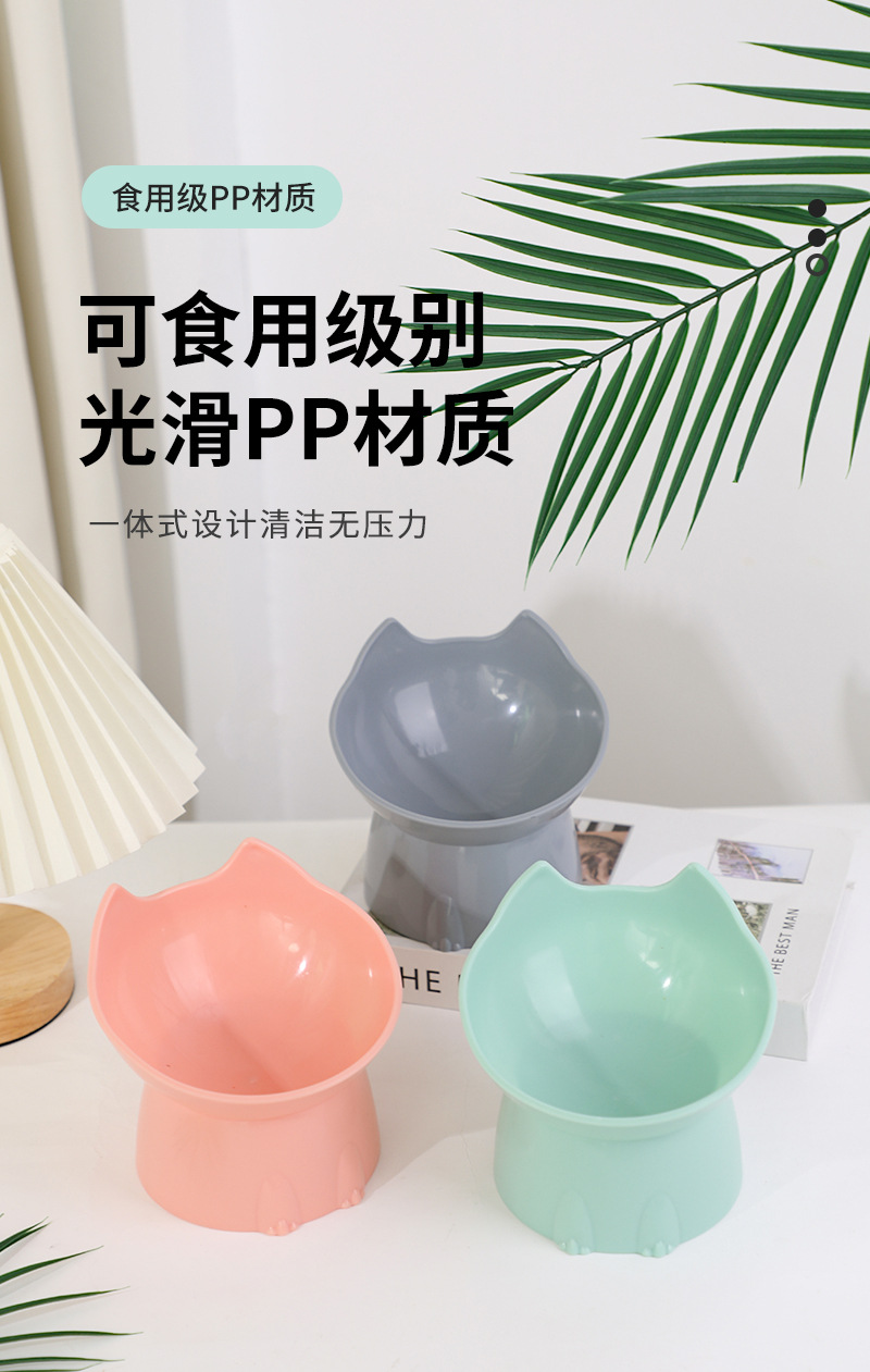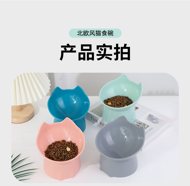 새로운 국경 북유럽 스타일의 애완 동물 그릇 보호 자궁 경부 개 분지 높은 발 고양이 그릇 안티 노크 플라스틱 대각선 고양이 그릇스토어 가기