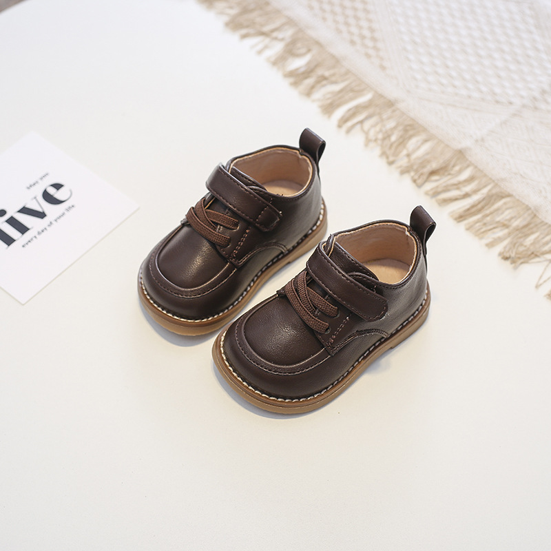 정품 가죽 아기 유아 신발 봄과 가을 싱글 레이어 신발 유아 캐주얼 신발 소년 부드러운 밑창 가죽 신발 여자 한국식 신발 기모