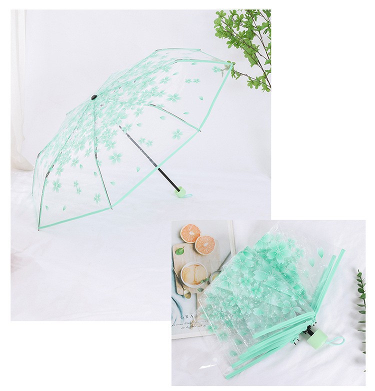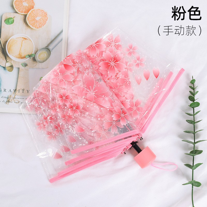 일본 투명 벚꽃 우산 3 배 우산 자동 인터넷 기념 스트레이트 핸들 우산 귀여운 접는 어린이 성인 애니메이션 여성