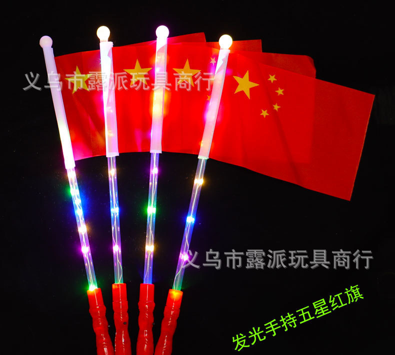 내셔널 데이 핸드 헬드 발광 플래그 5 성급 붉은 깃발 폴 자동차 공급 작은 붉은 깃발 사무실 장식품스토어 가기