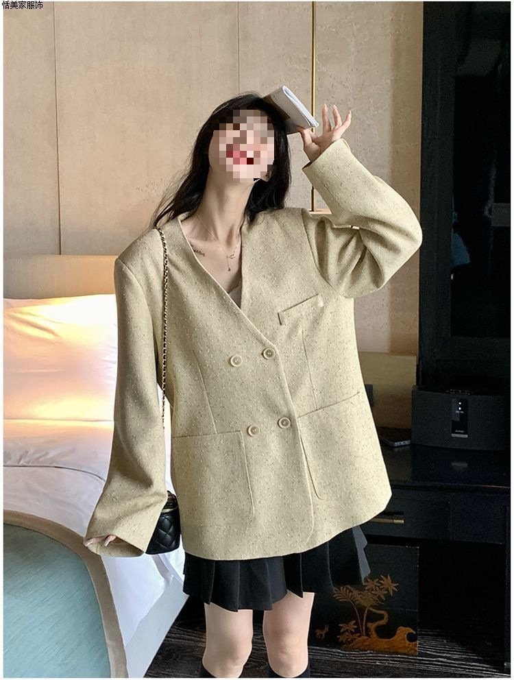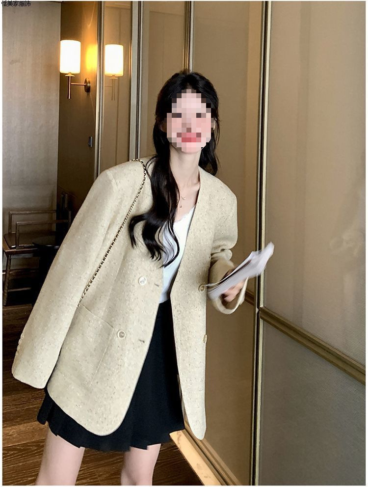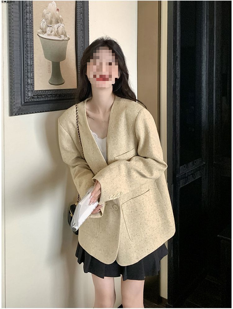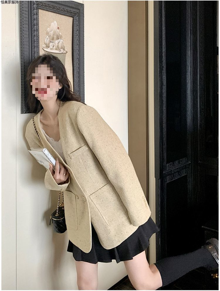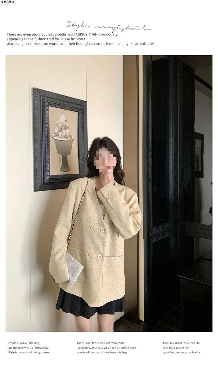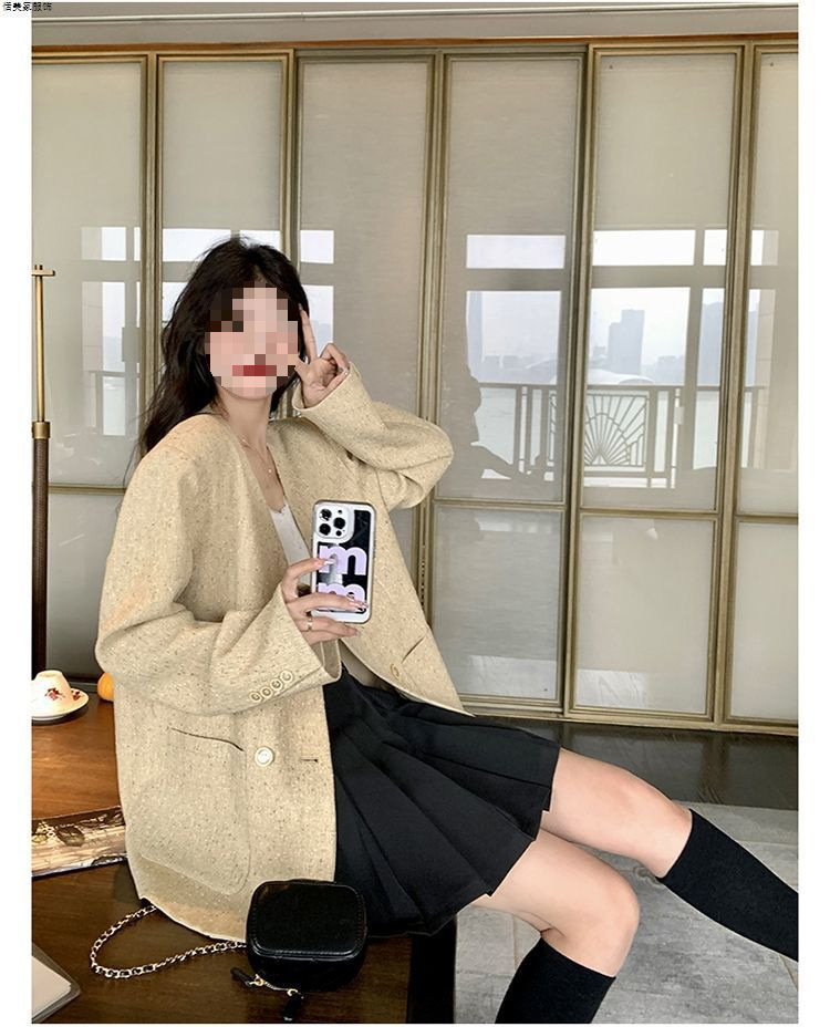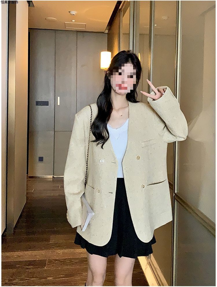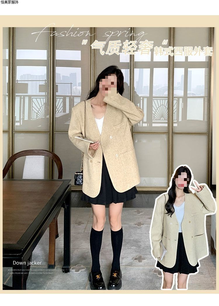 쌀 살구색 샤오샹 스타일 세트 재킷 여자 2024 봄 가을 새 한국 하이 엔드 센스 루즈 캐주얼 V 넥 세트스토어 가기