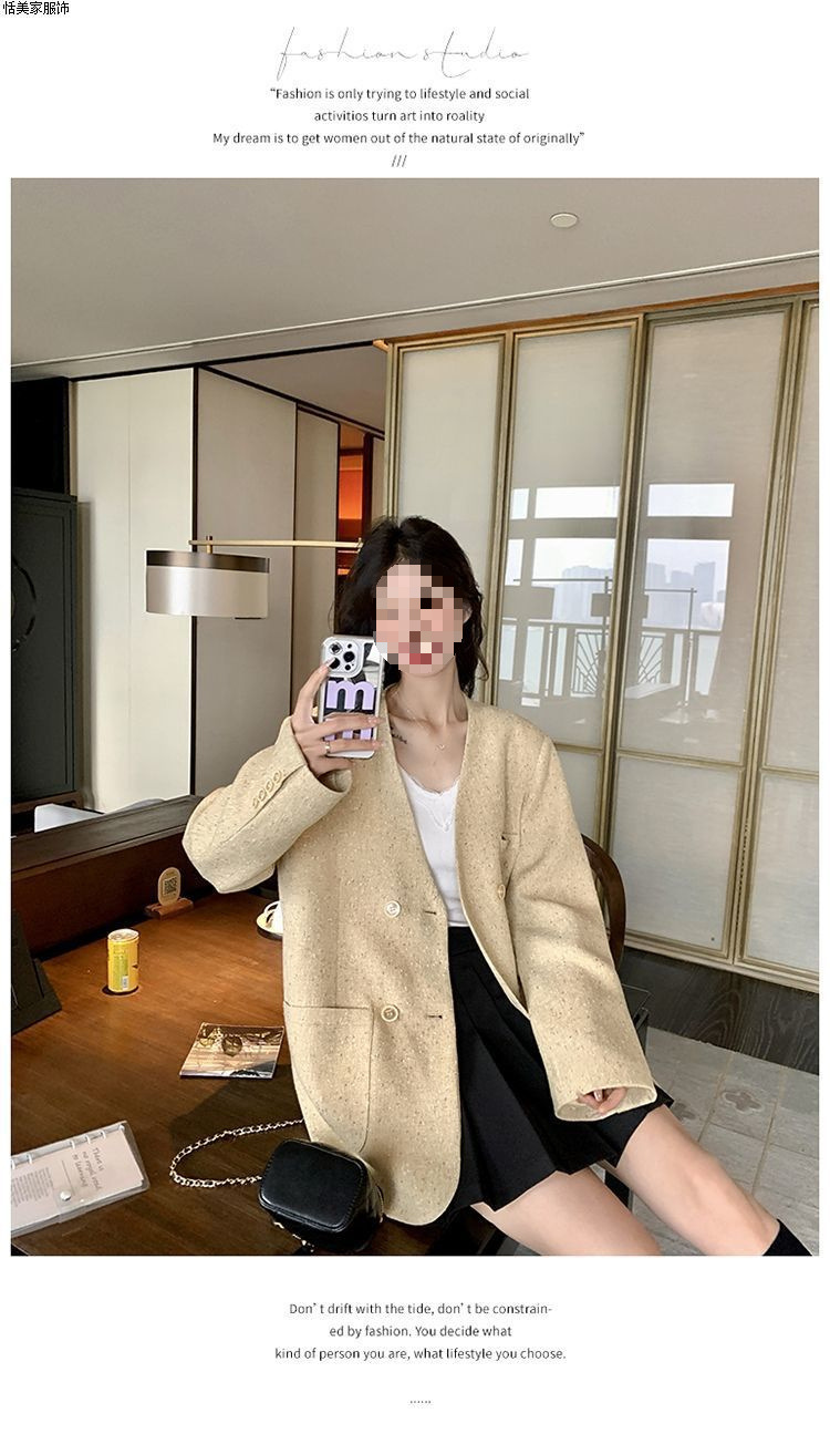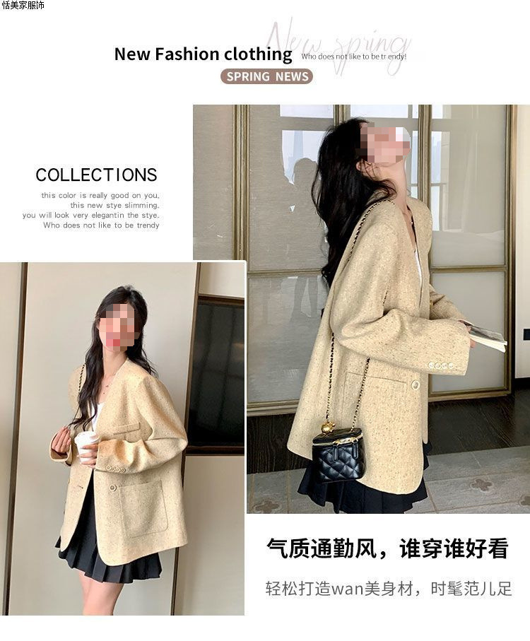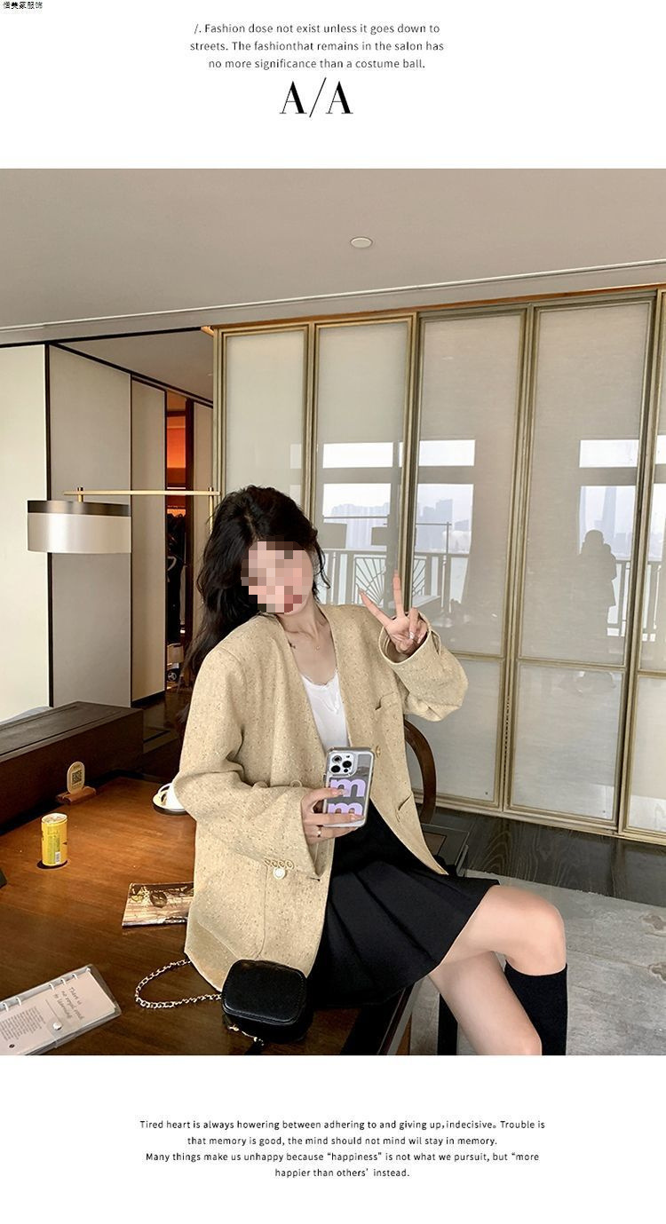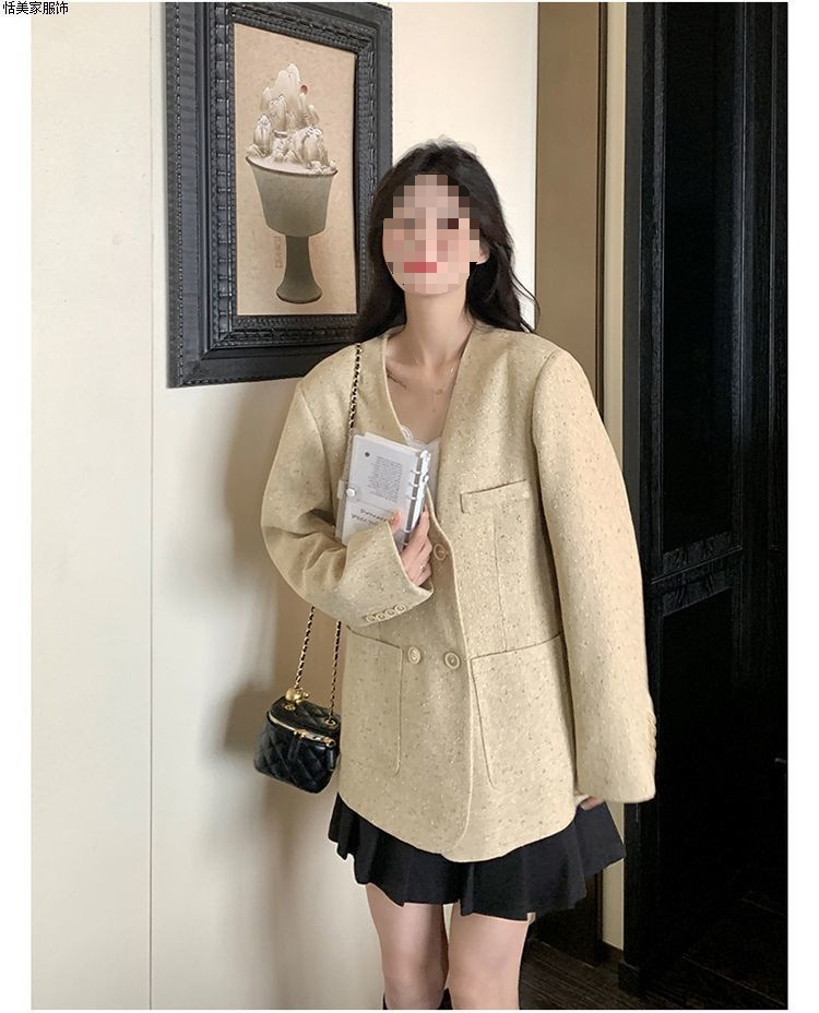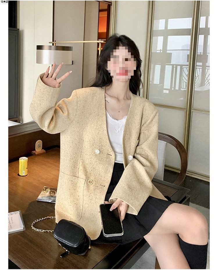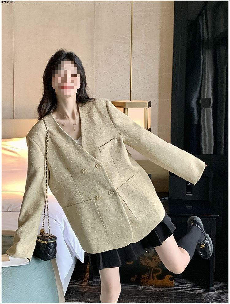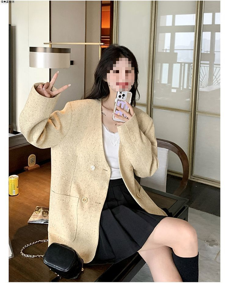 쌀 살구색 샤오샹 스타일 세트 재킷 여자 2024 봄 가을 새 한국 하이 엔드 센스 루즈 캐주얼 V 넥 세트스토어 가기
