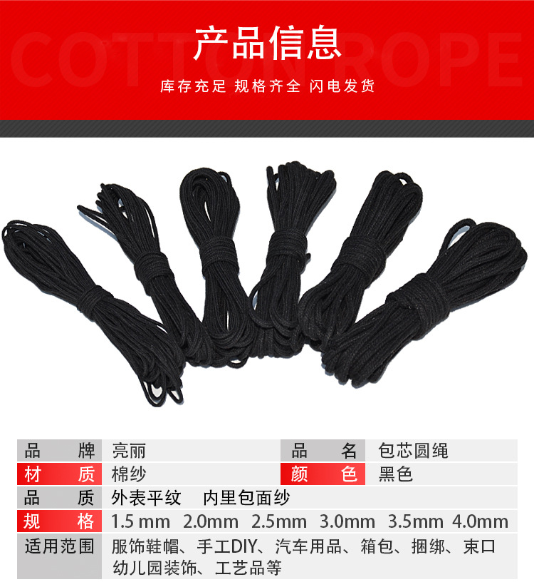 코어 포장 코튼 로프 제조업체는이 흰색 검은 색 표백 테두리 로프 번들 짠 태피스트리 라운드 파이핑 두꺼운 로프 도매스토어 가기