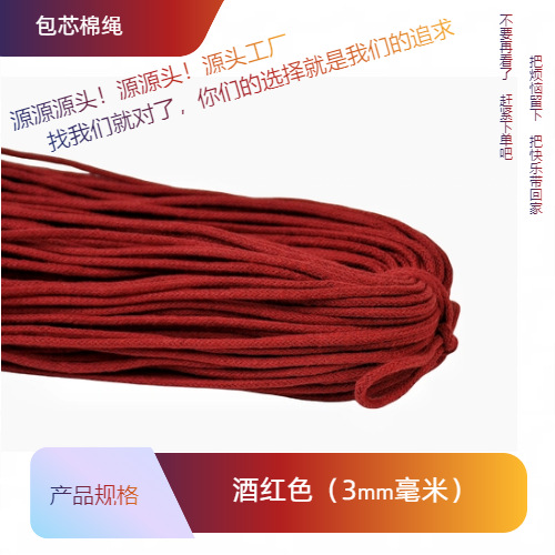 3mm 코어 회전 코튼 로프 컬러 꼰 로프 코어 회전 로프 면사 손으로 짠 DIY 의류 웨빙 액세서리