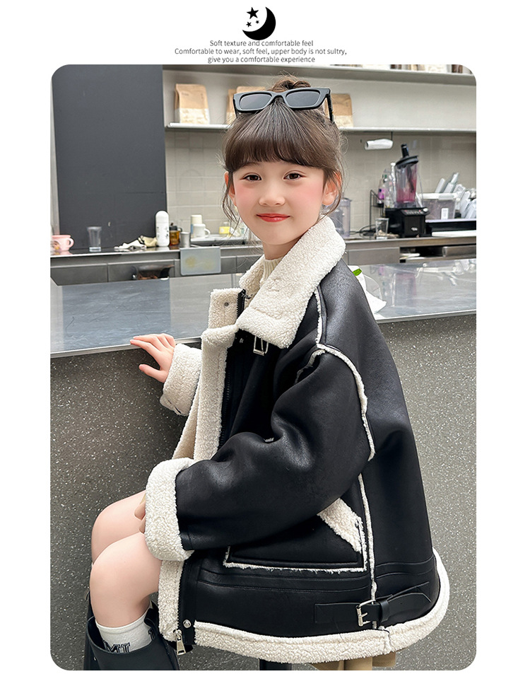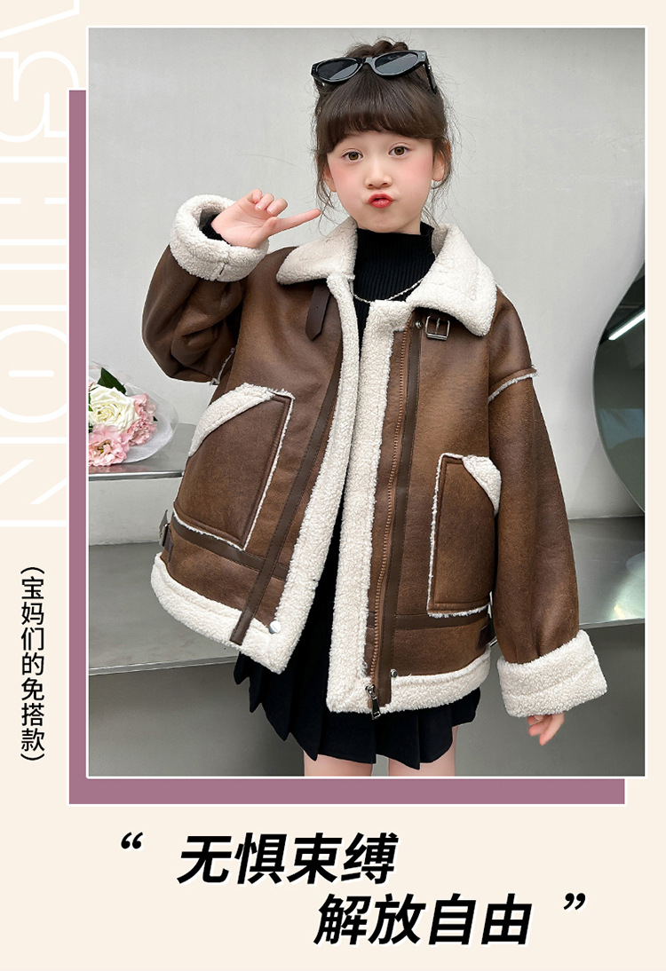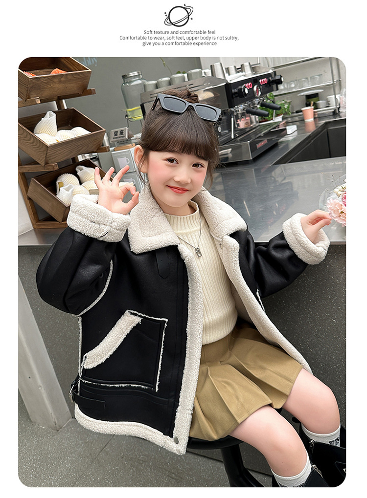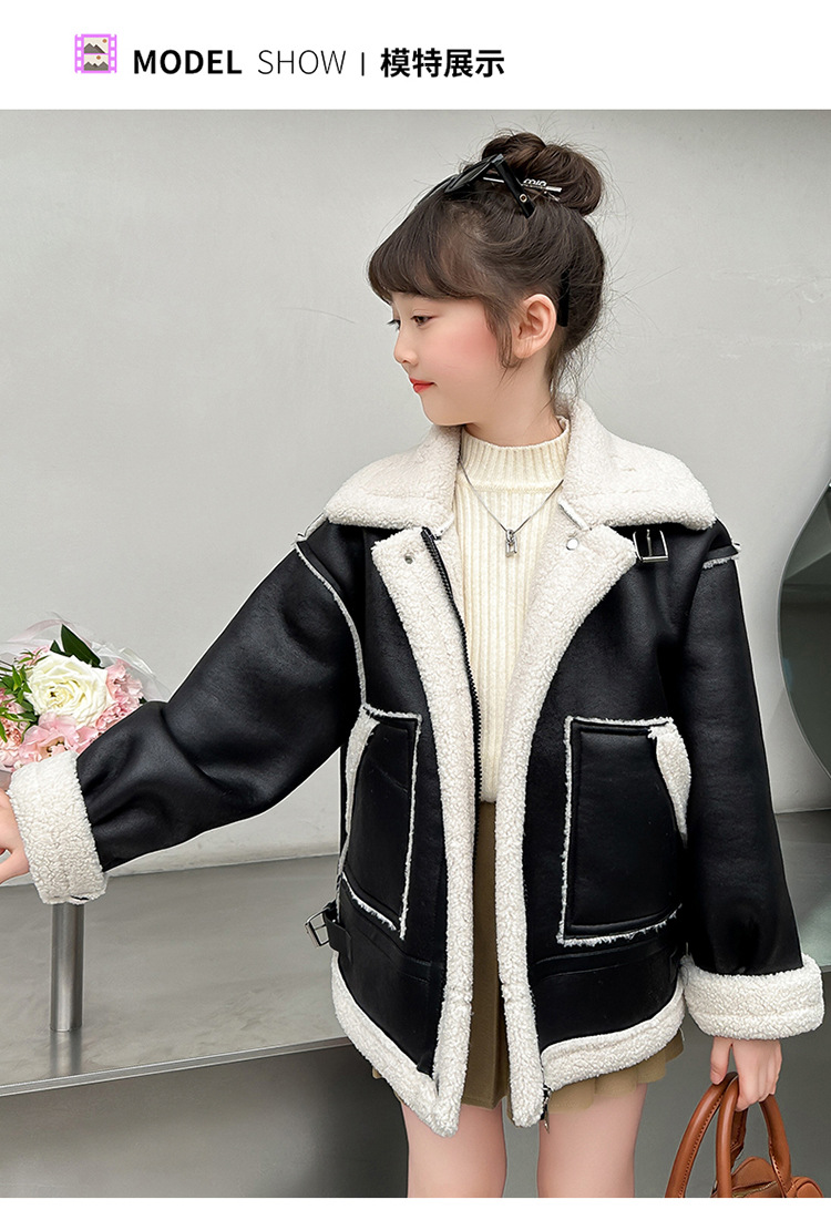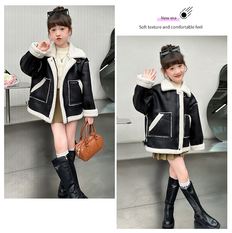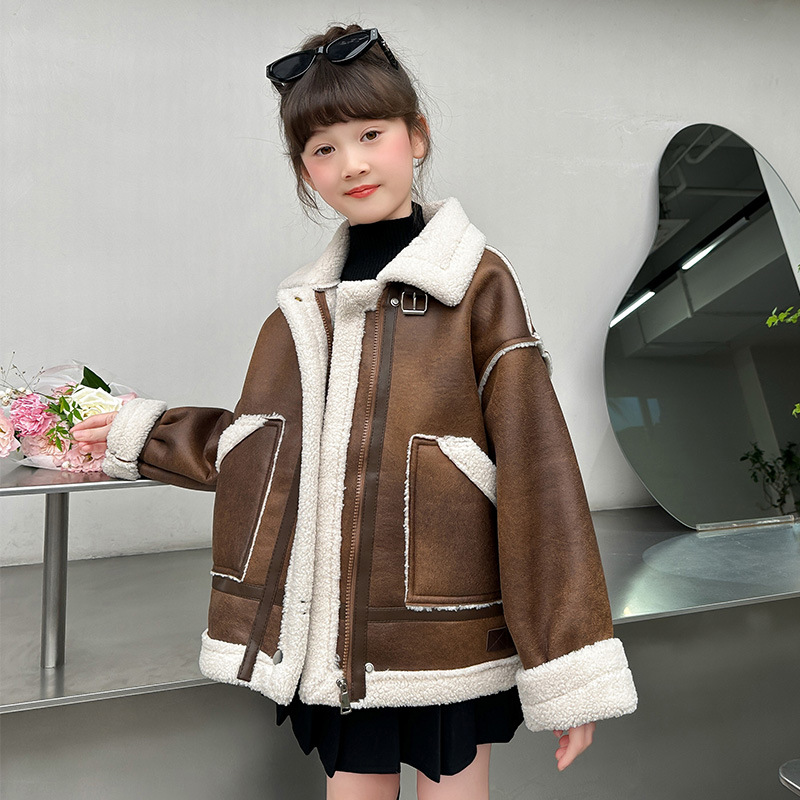 소녀 코트 가을과 겨울 2024 새로운 어린이 모피 원피스 두꺼운 겨울 착용 큰 어린이 양고기 양털 재킷 탑