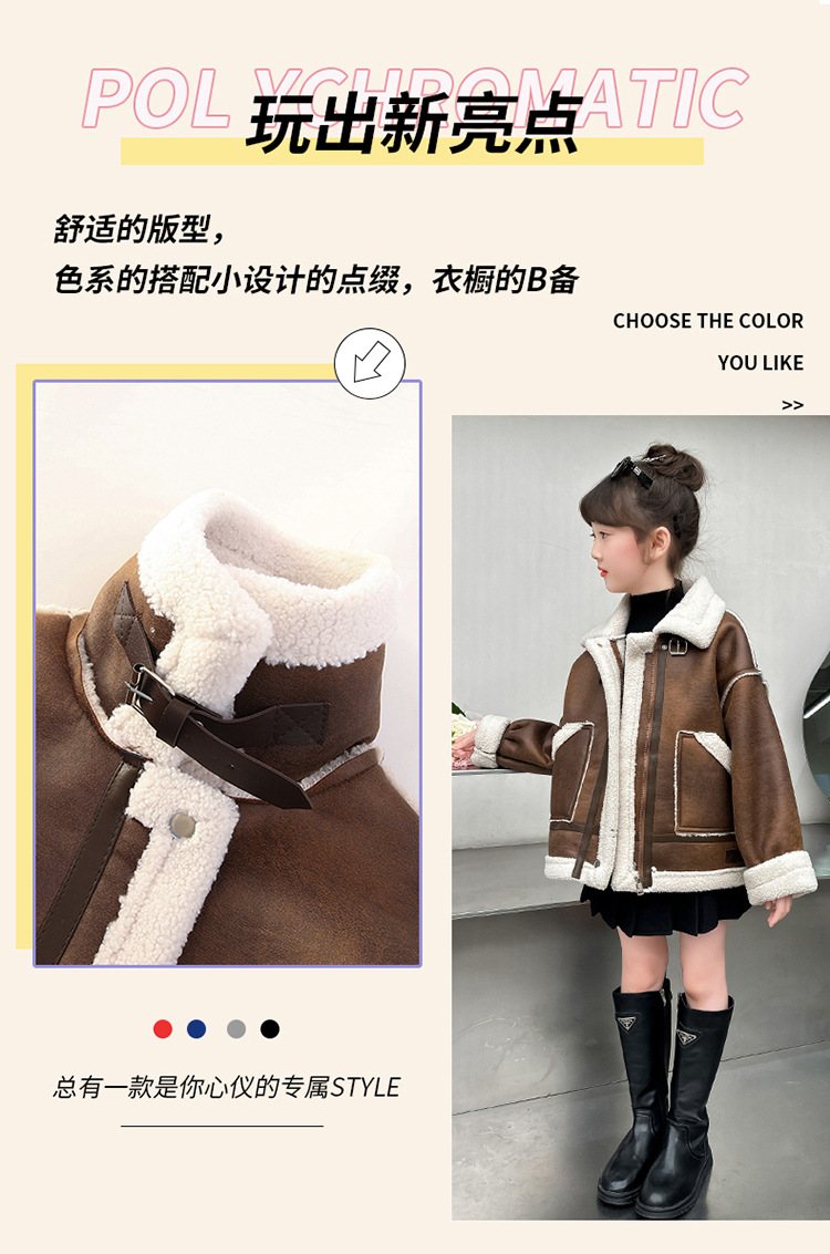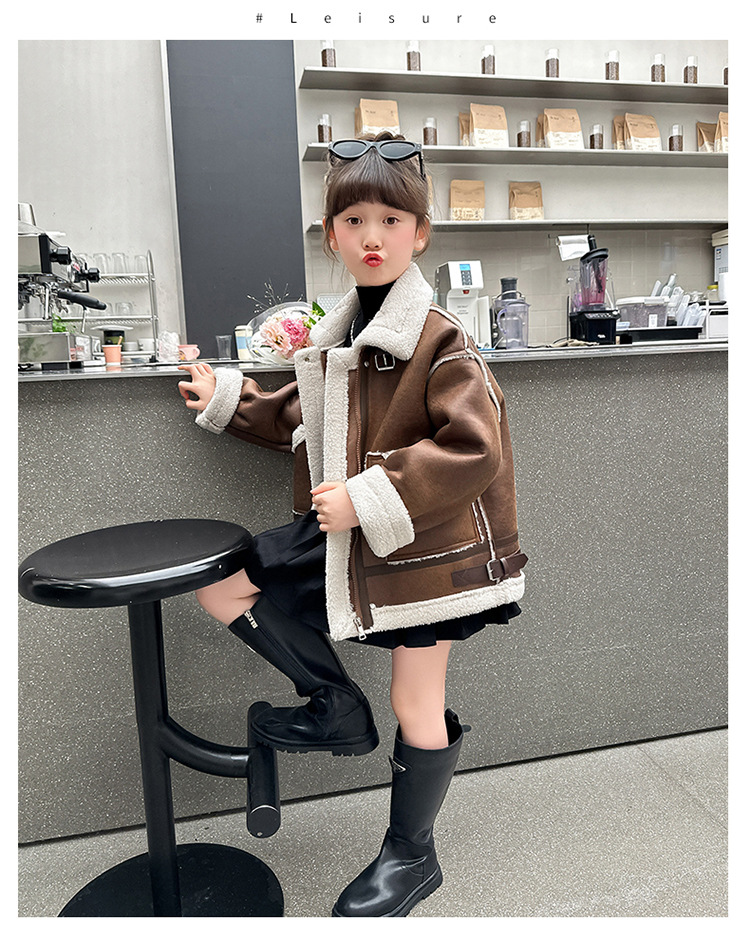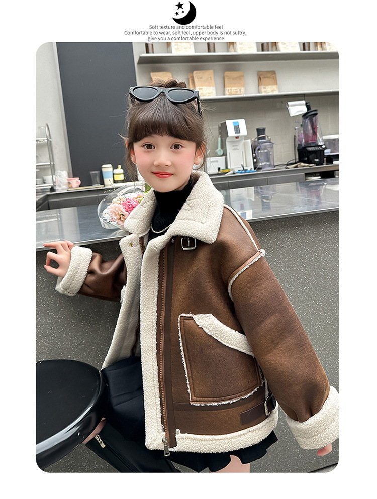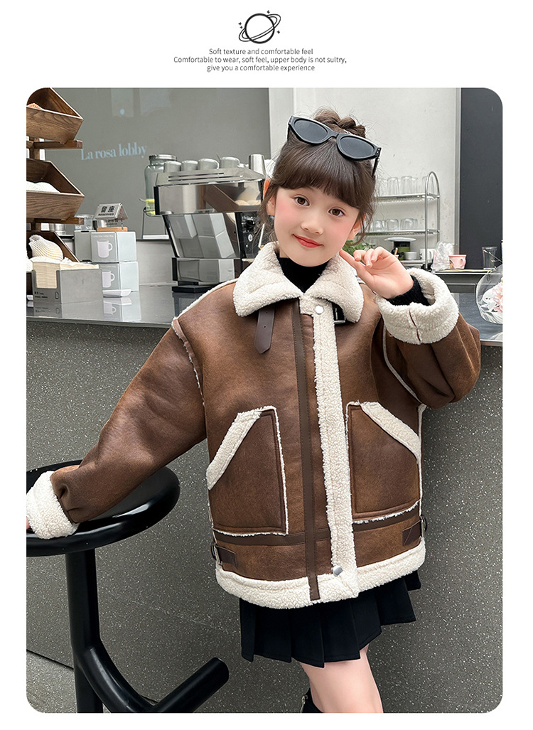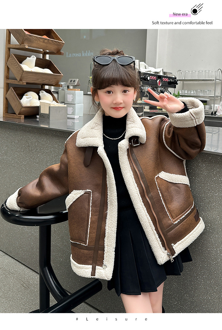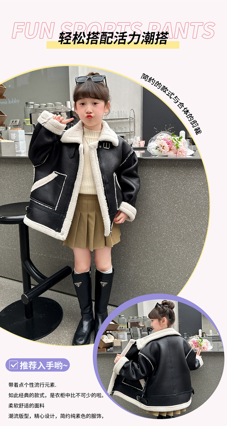 소녀 코트 가을과 겨울 2024 새로운 어린이 모피 원피스 두꺼운 겨울 착용 큰 어린이 양고기 양털 재킷 탑