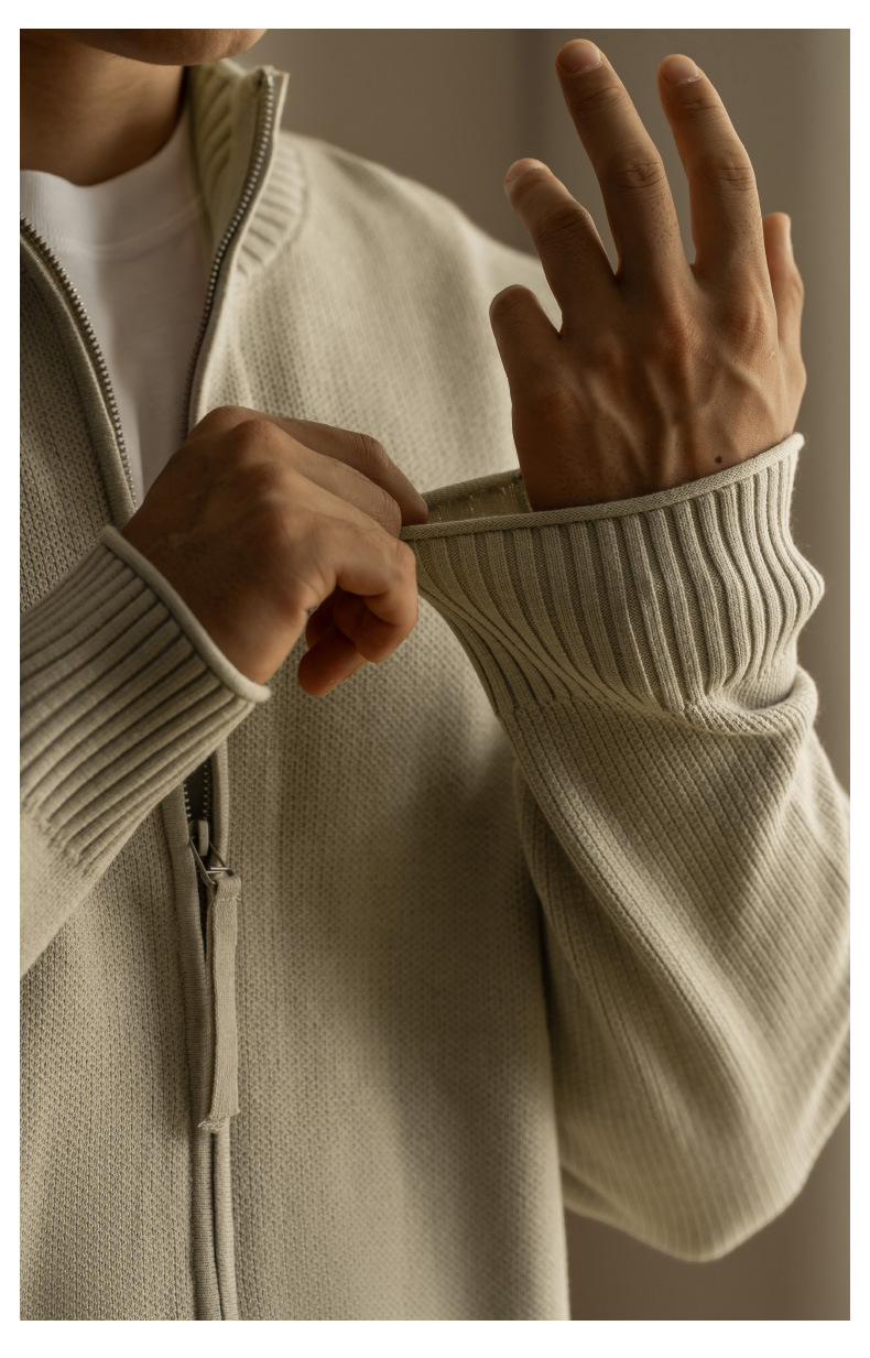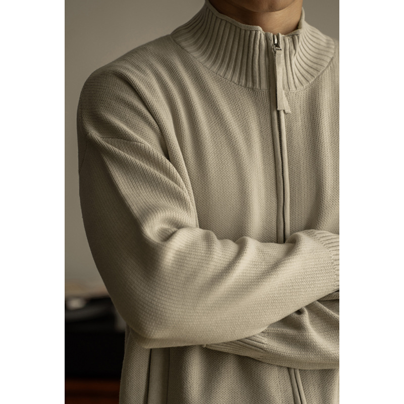 [파이오니어 시리즈] 아메리칸 스타일 스탠드 칼라 니트 지퍼 재킷 2025 봄 재킷 스웨터 캐주얼 가디건 두꺼운 남성용스토어 가기