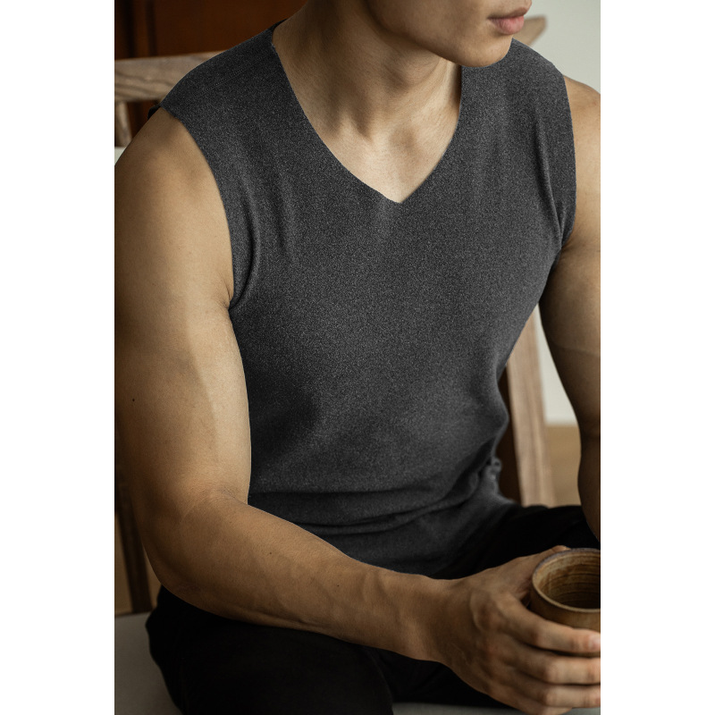 무압력 무흔적 발열 치킨하트 브이넥 보온 벨벳 남성용 조끼 2025 봄 이너웨어 민소매 베이스 셔츠