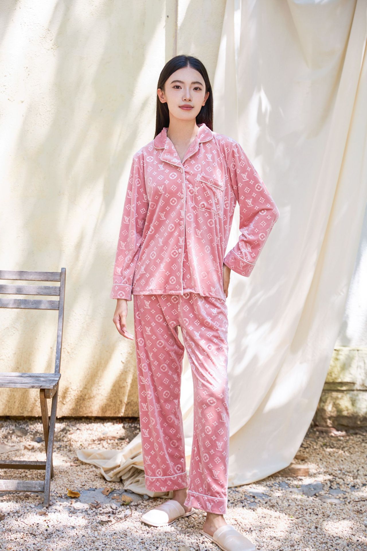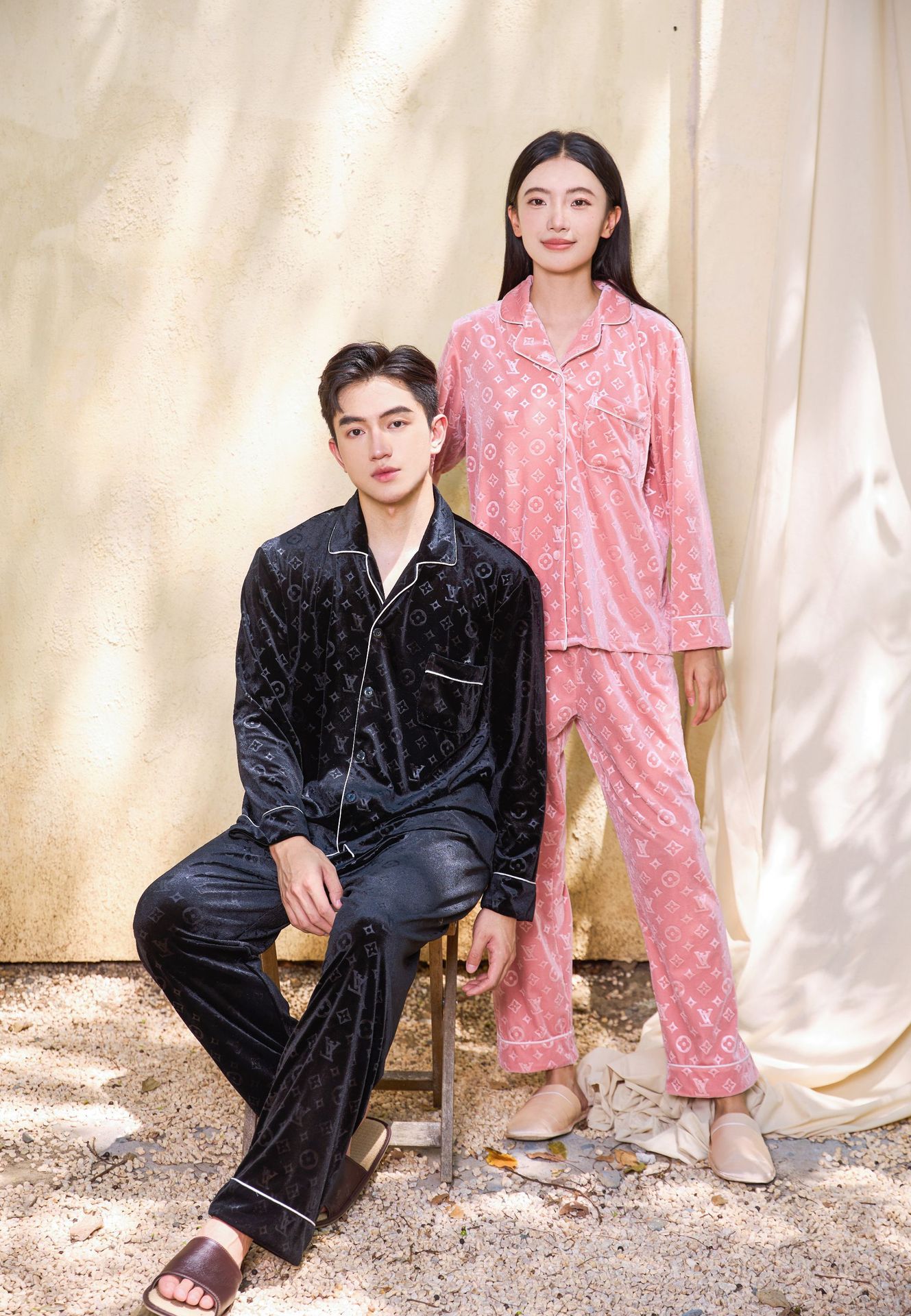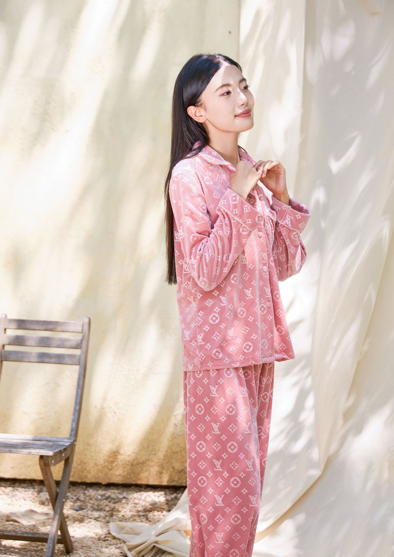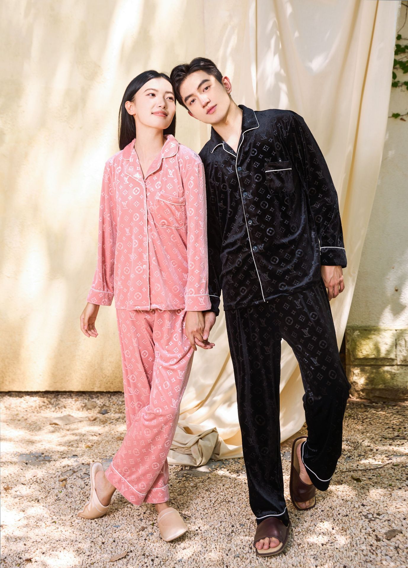 높은 모조 벨벳 파자마 여성 남성 카디건 엠보싱 벨벳 고급 긴 소매 가을과 겨울 커플 홈 의류 세트