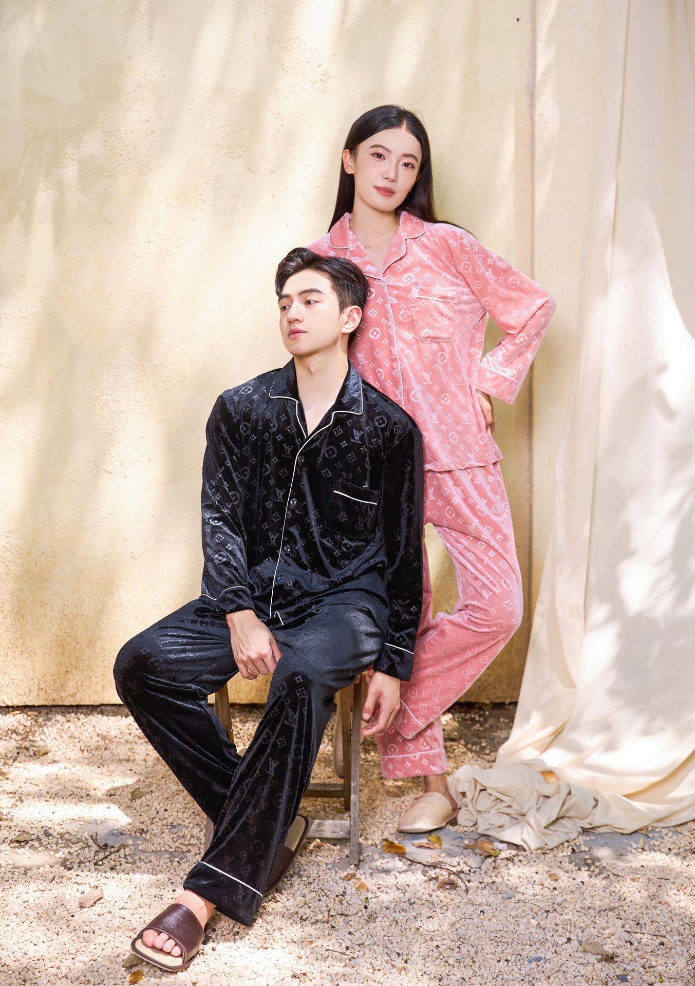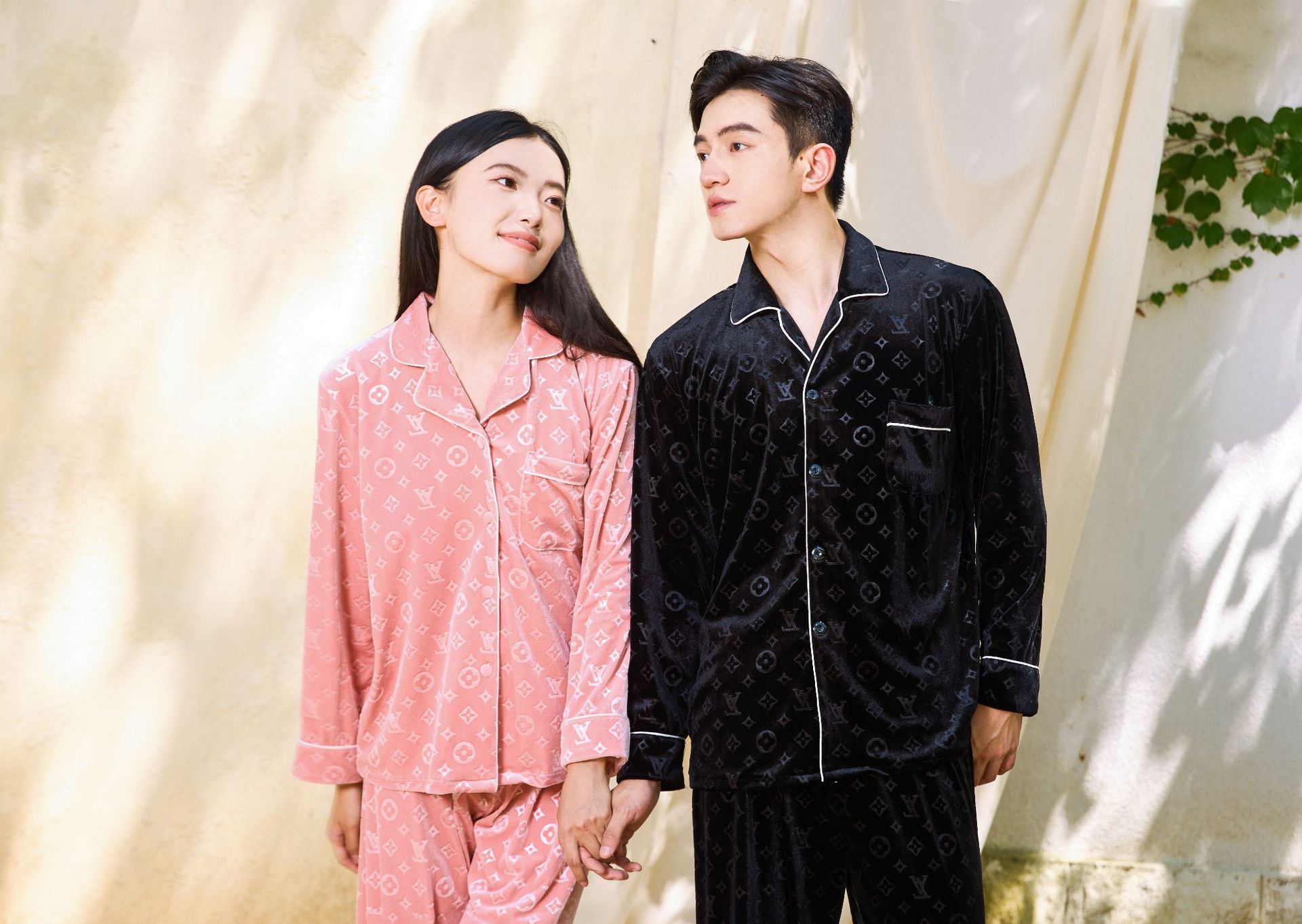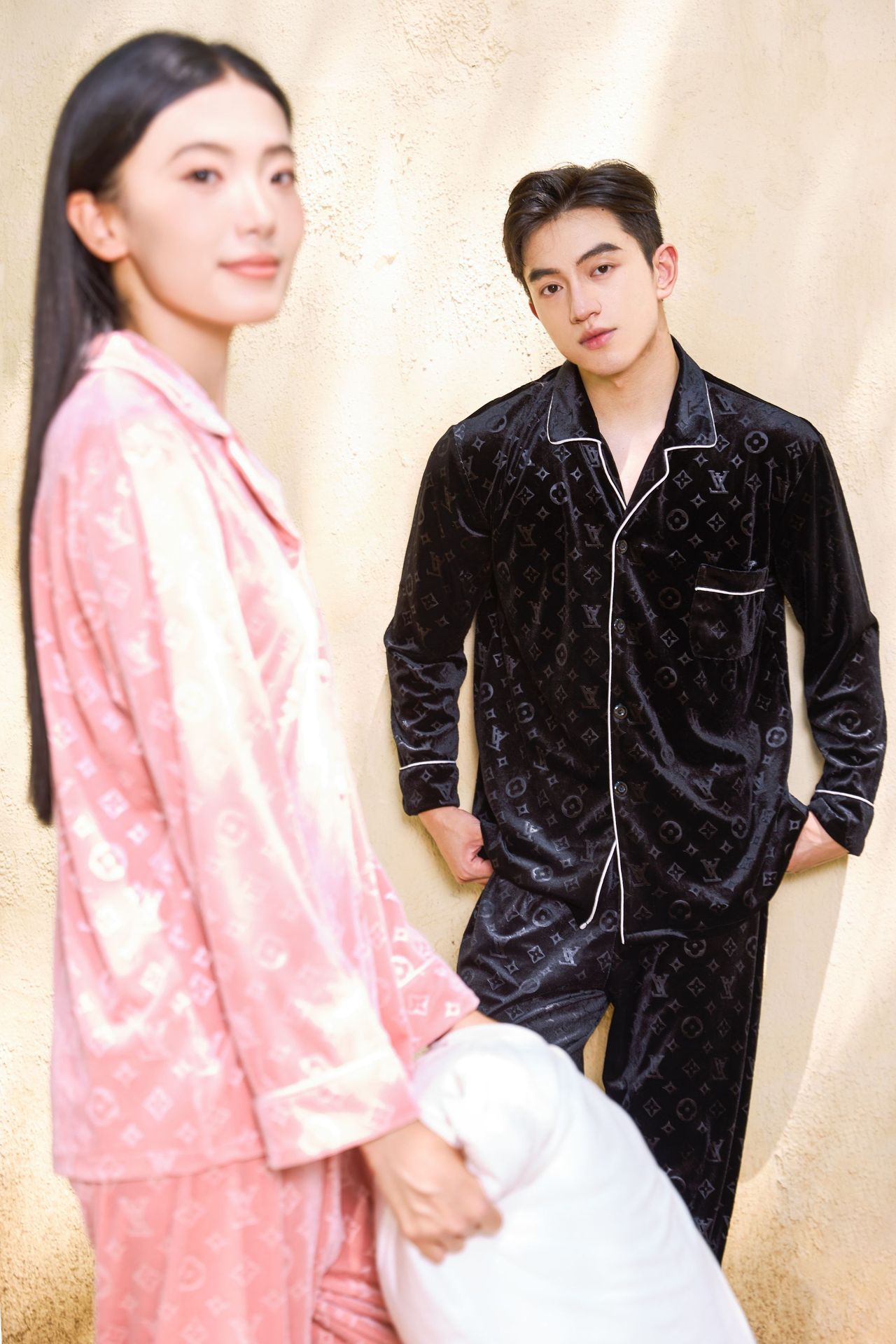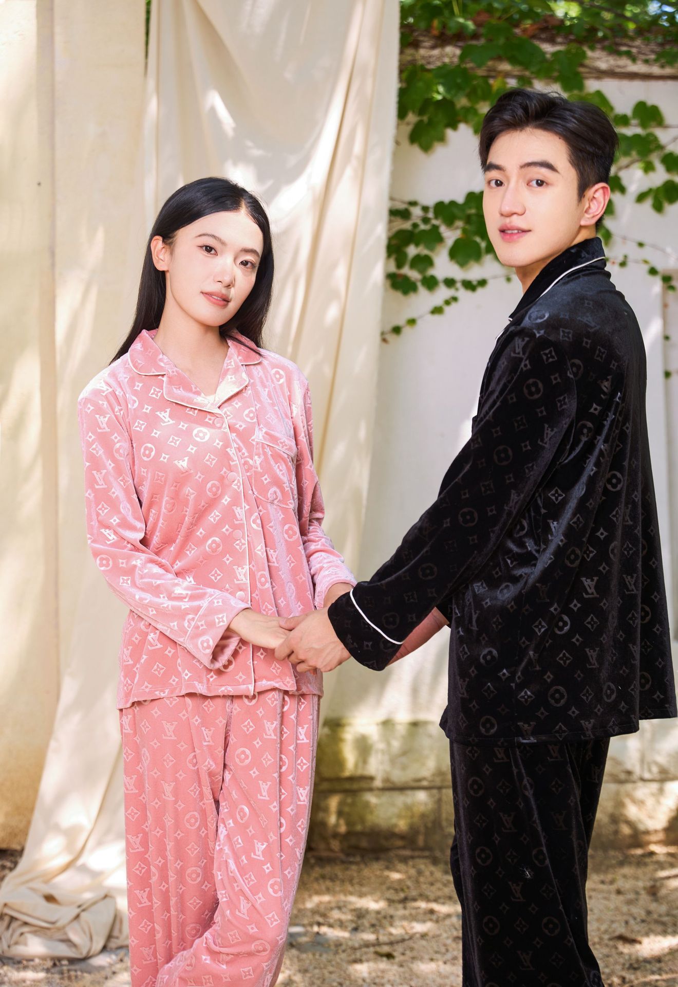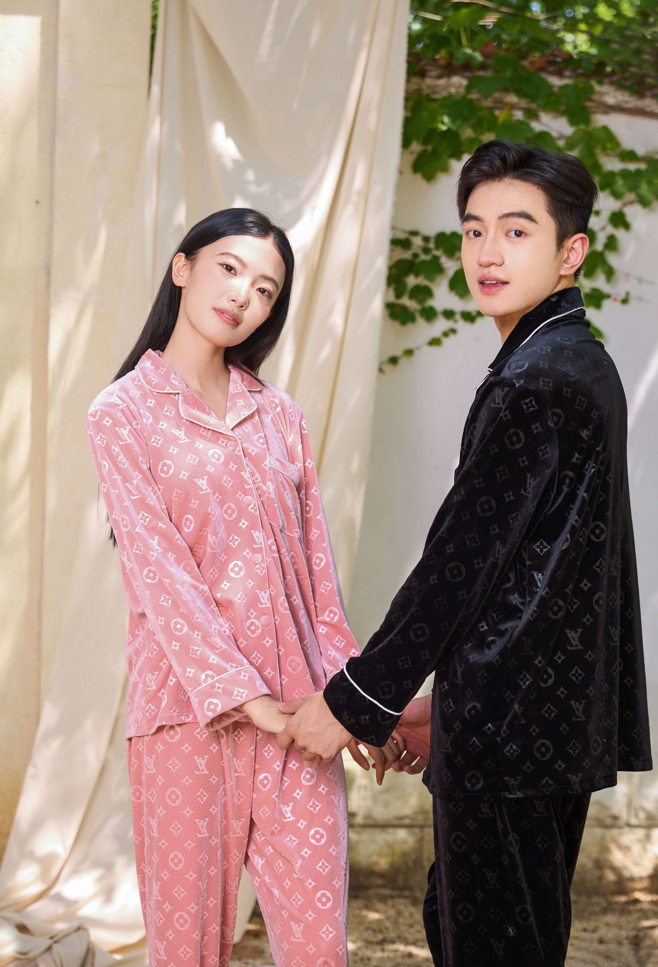 높은 모조 벨벳 파자마 여성 남성 카디건 엠보싱 벨벳 고급 긴 소매 가을과 겨울 커플 홈 의류 세트
