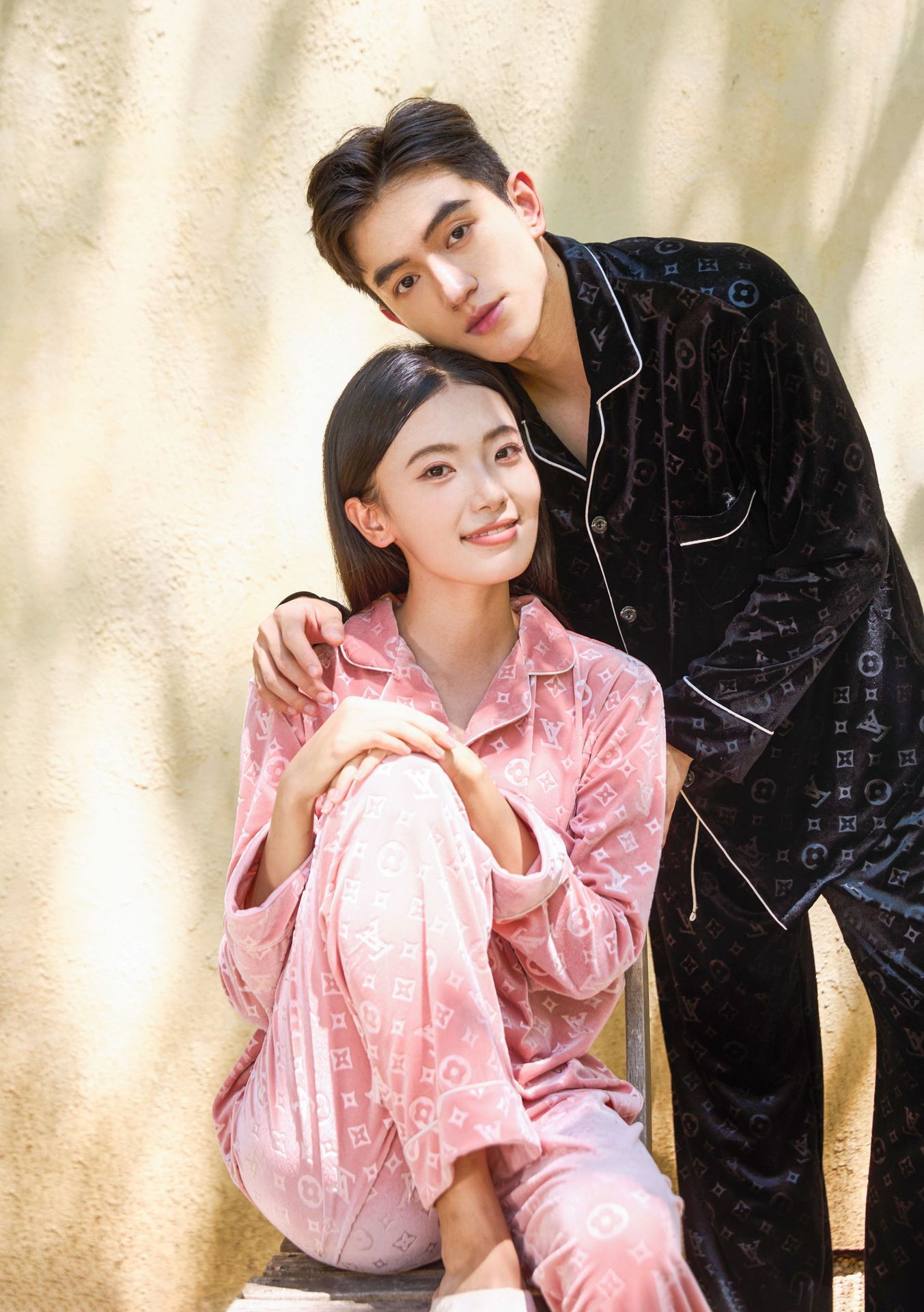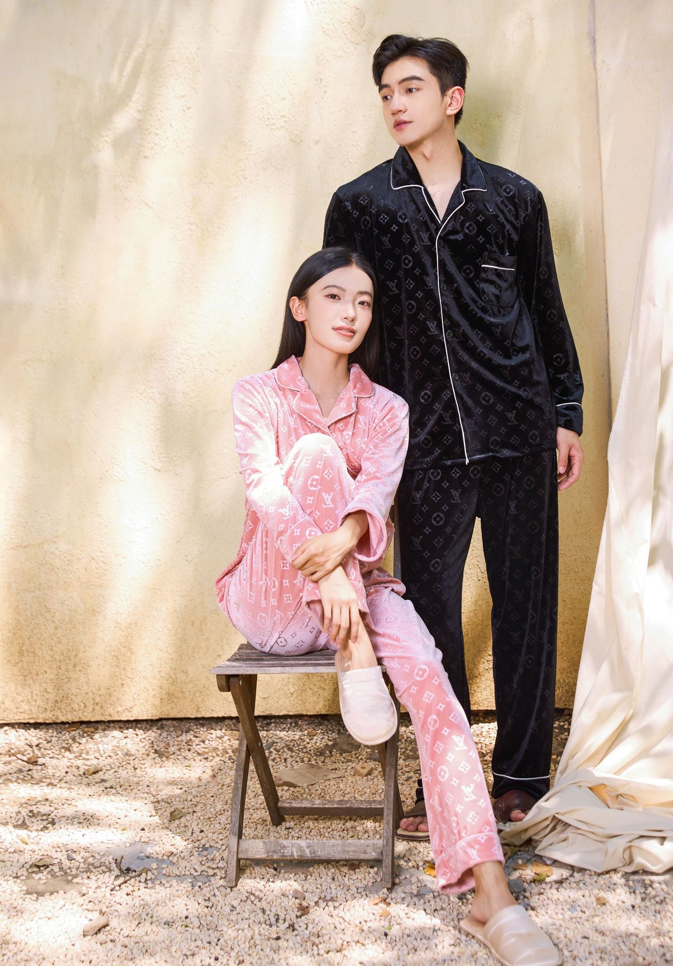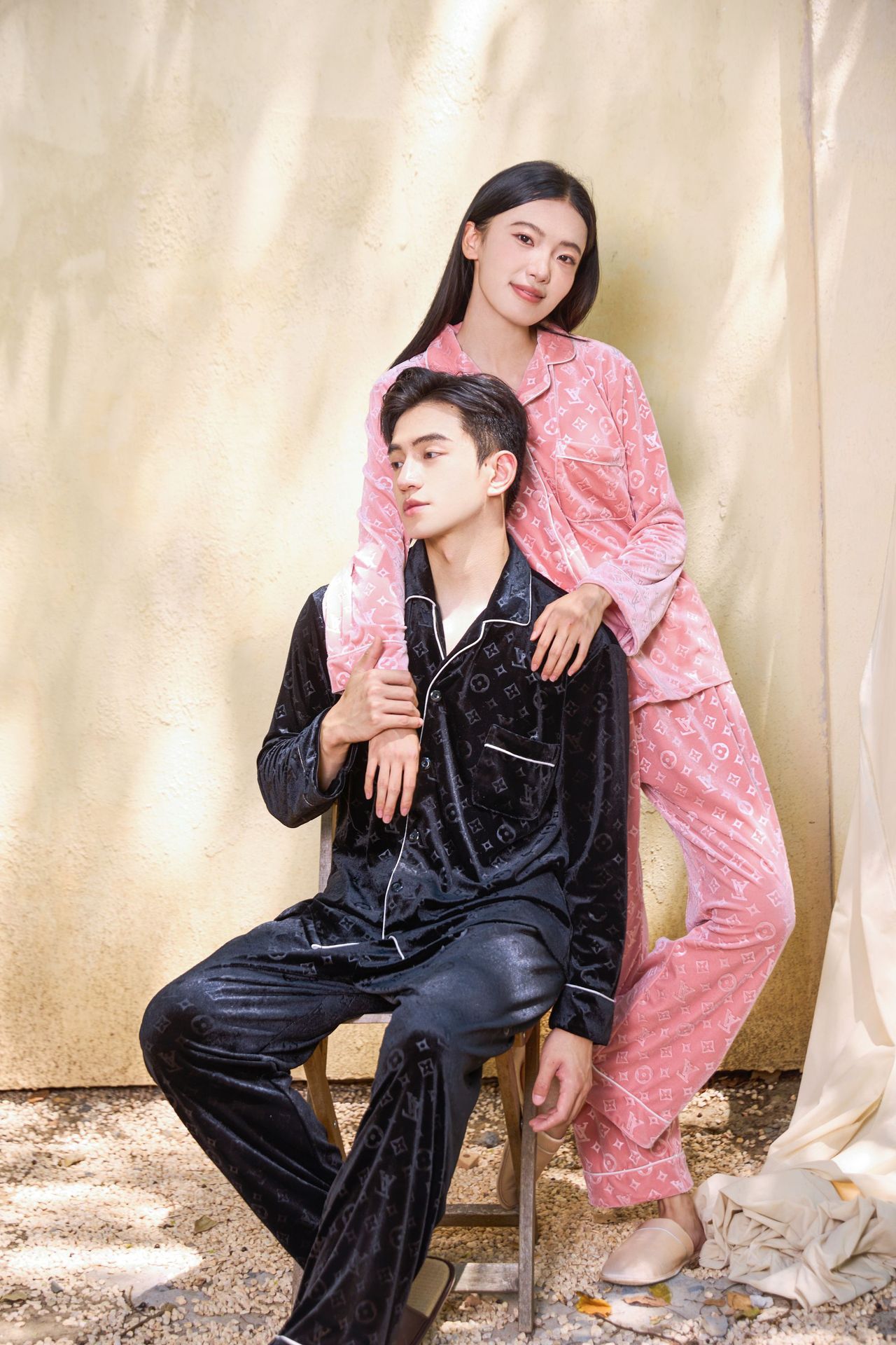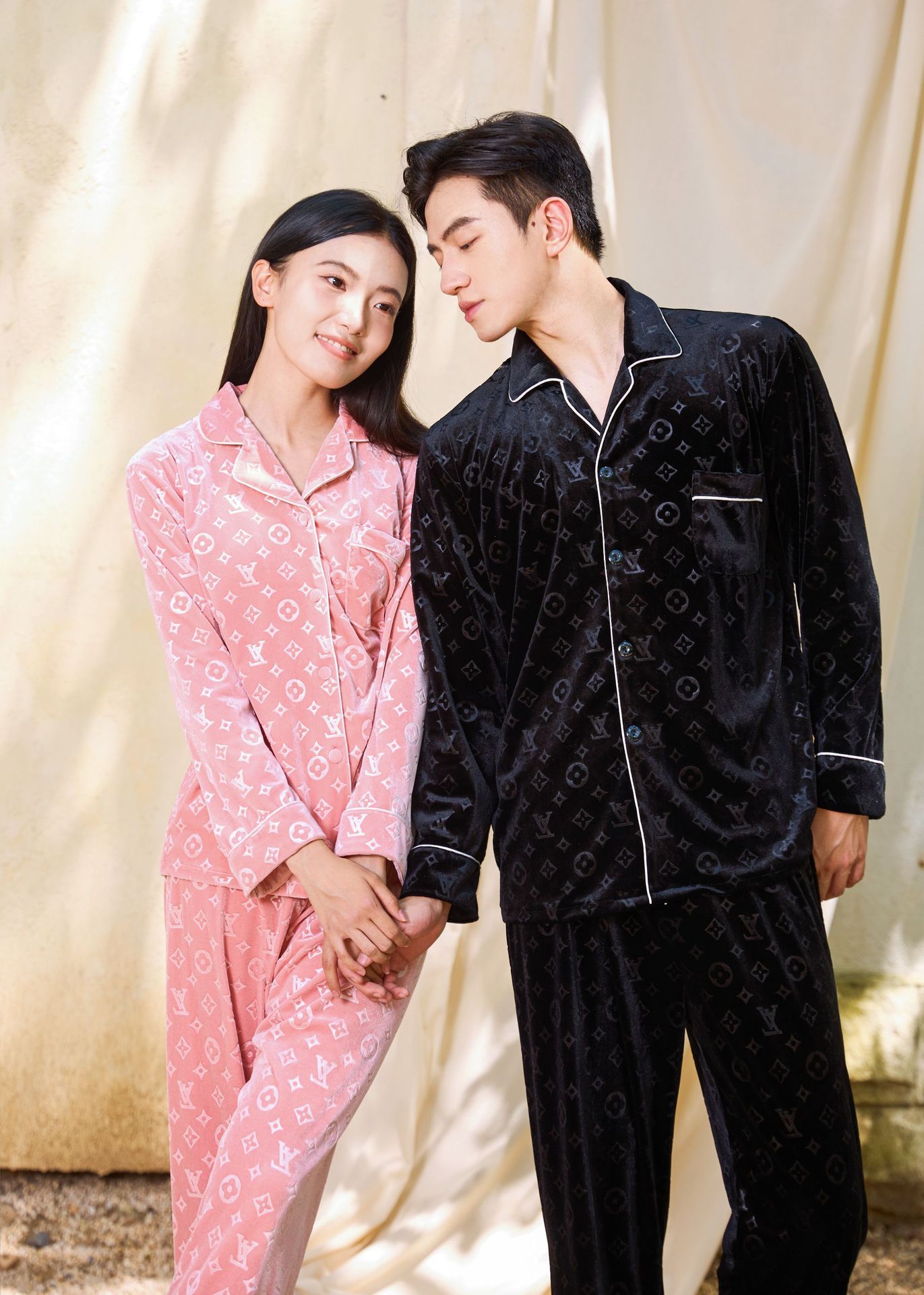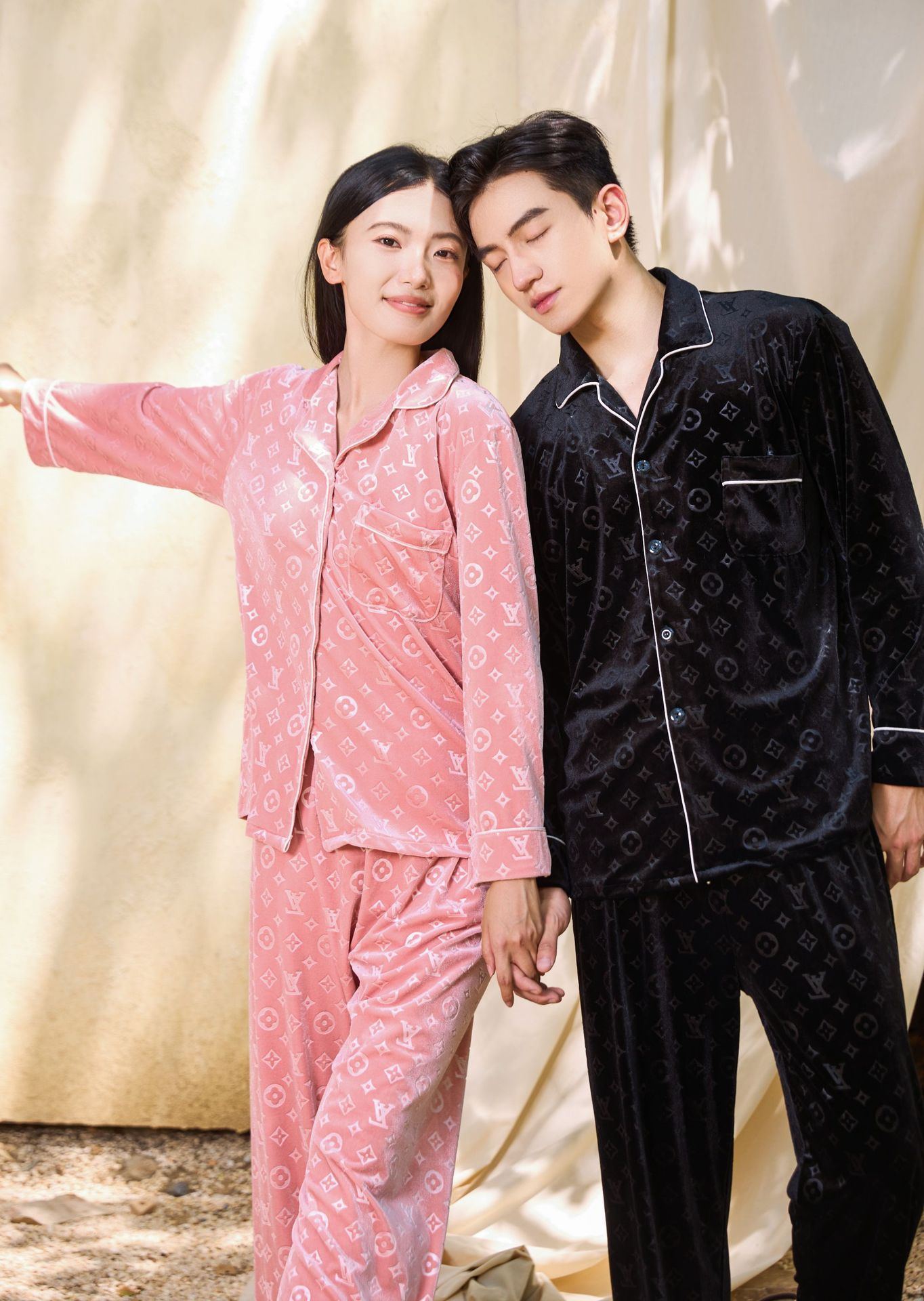 높은 모조 벨벳 파자마 여성 남성 카디건 엠보싱 벨벳 고급 긴 소매 가을과 겨울 커플 홈 의류 세트