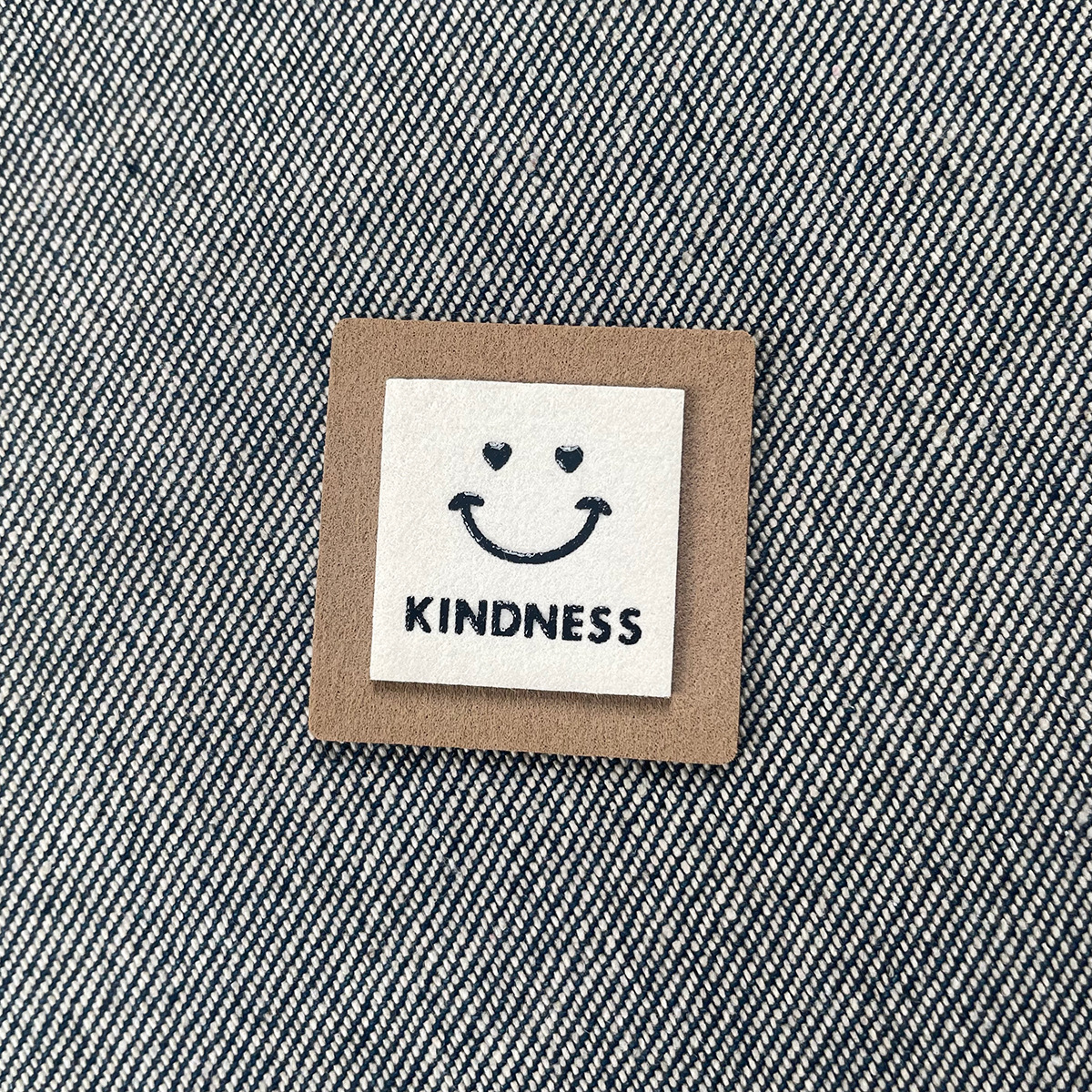 새로운 스마일리 패턴 스퀘어 재봉 모자 신발 의류 액세서리 수하물 장식 라벨 아동복 남성 패션 브랜드스토어 가기
