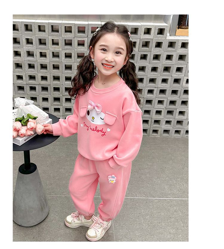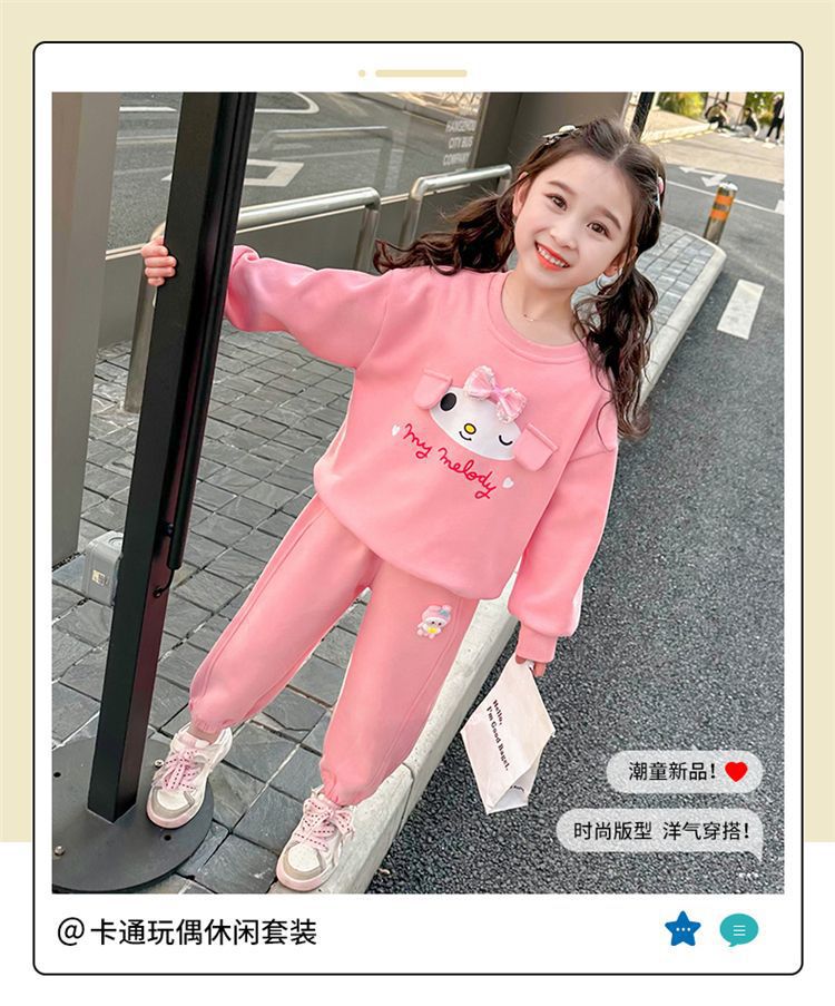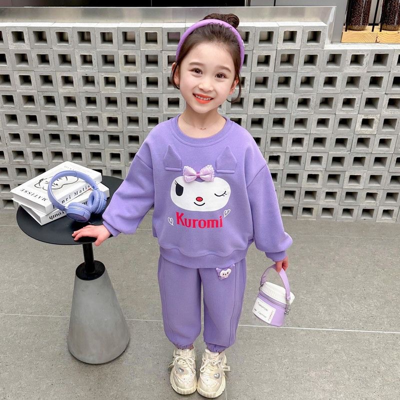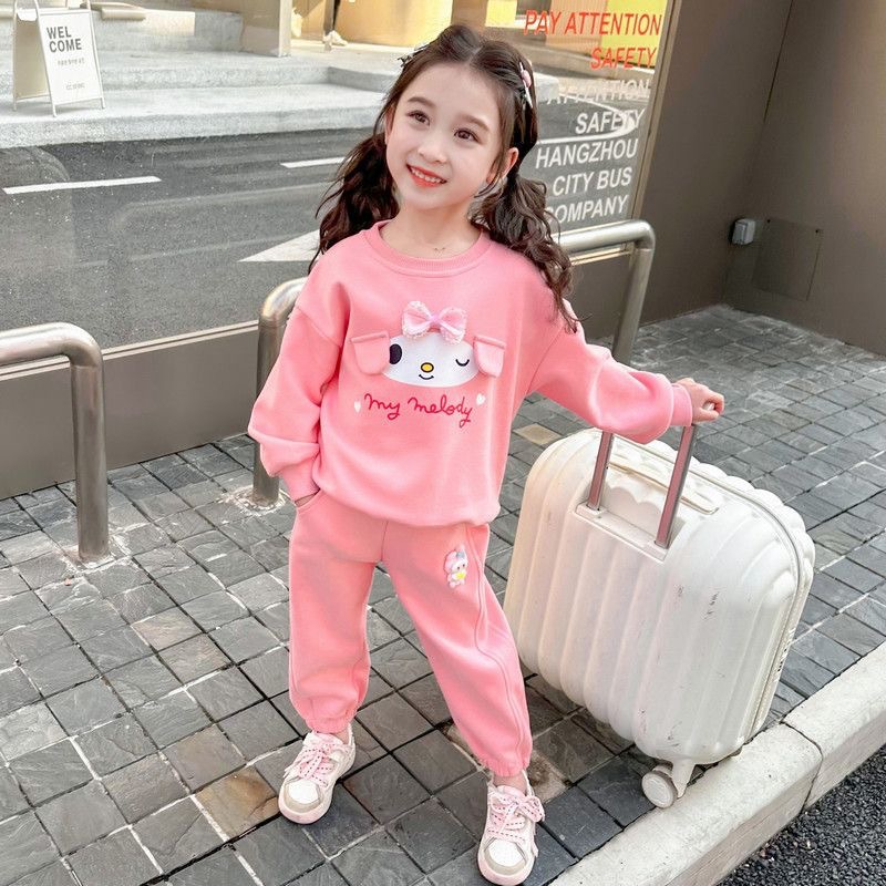 여자 세트 2024 새로운 세련 된 아기 봄 운동복 바지 여자 아이들의 봄과 가을 스포츠 투피스 세트