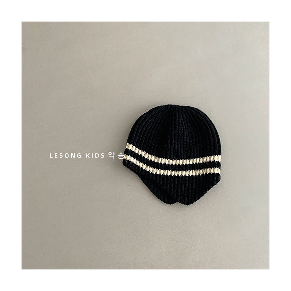 Ins 한국 줄무늬 어린이 양모 서양식 올매치 가을과 겨울 아기의 니트 귀 보호 모자 따뜻한 모자 콜드 햇