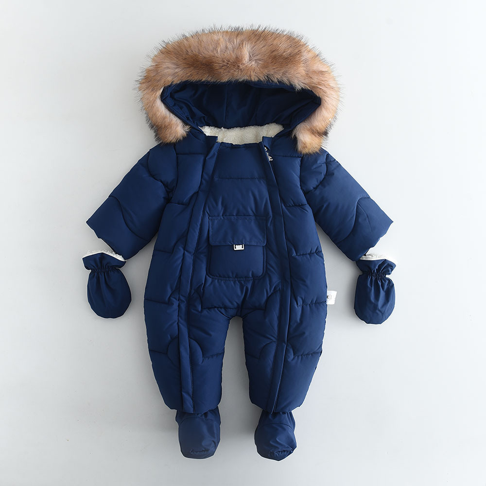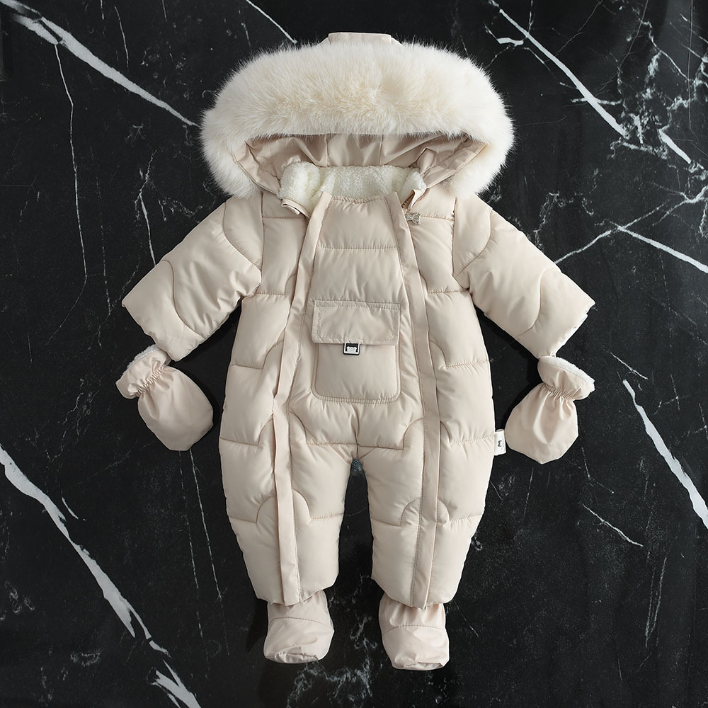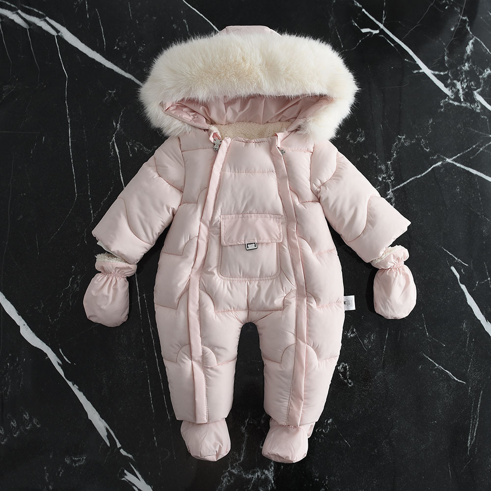 2024 겨울 새로운 유럽과 미국 스타일의 아기 모피 칼라 후드 대형 포켓 Romper 점프 슈트스토어 가기