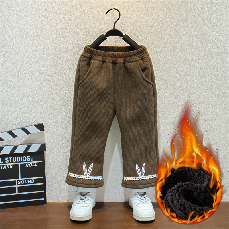 여자 기모 바지 겨울 새 두꺼운 소녀 코듀로이 바지 스트레이트 플레어 바지 여성용 보물 외부 바지