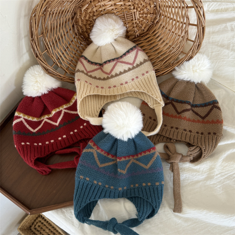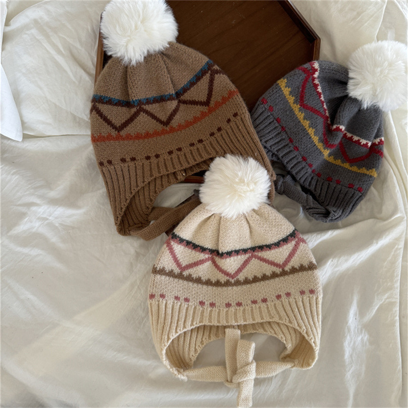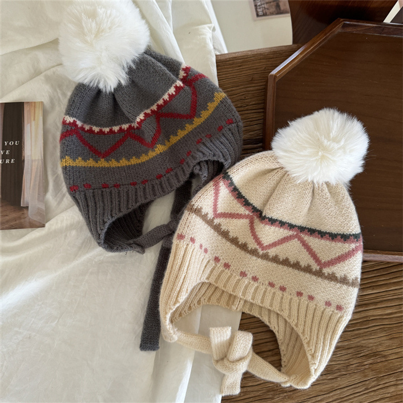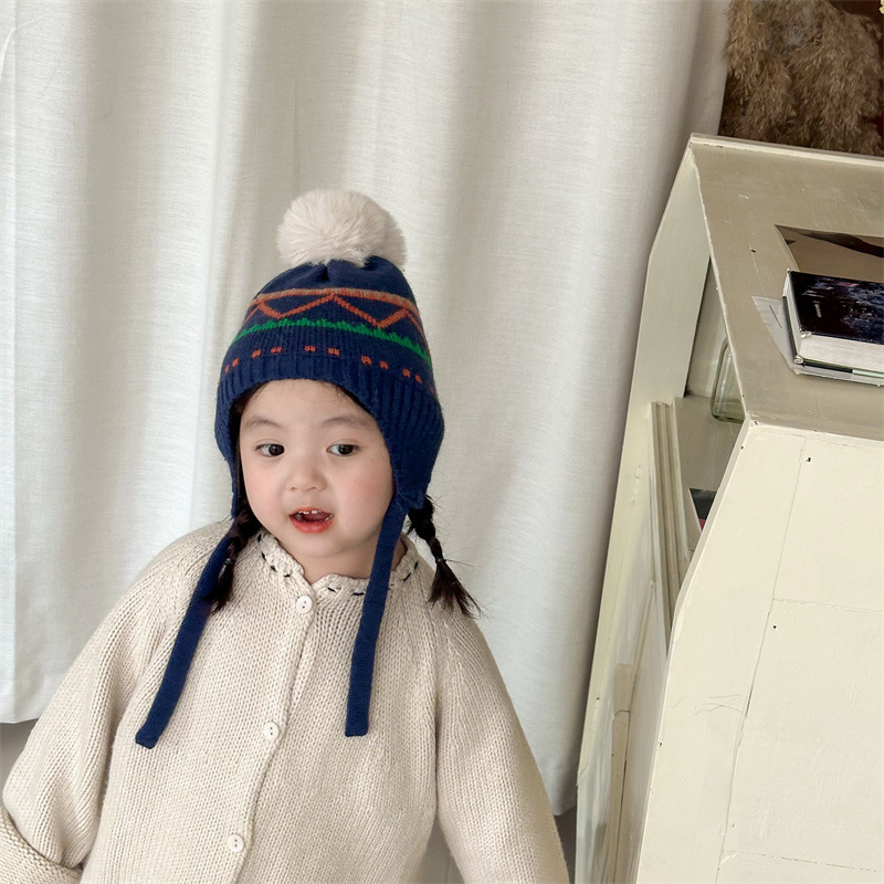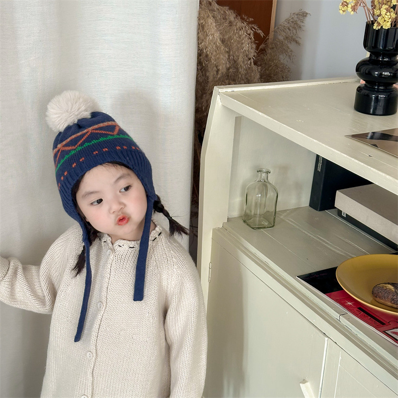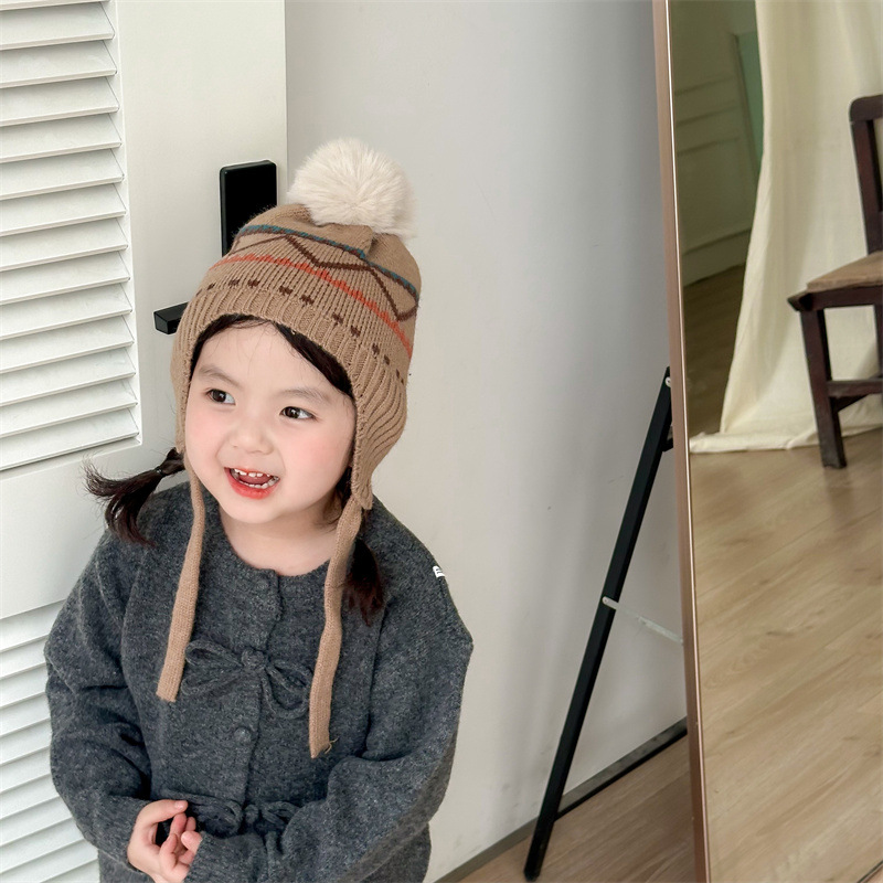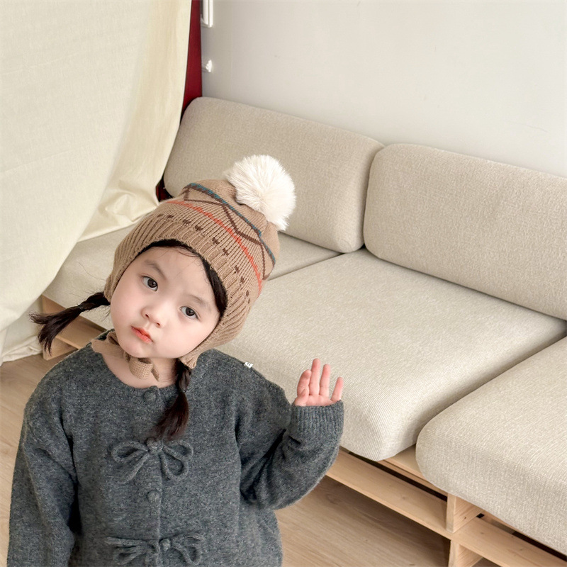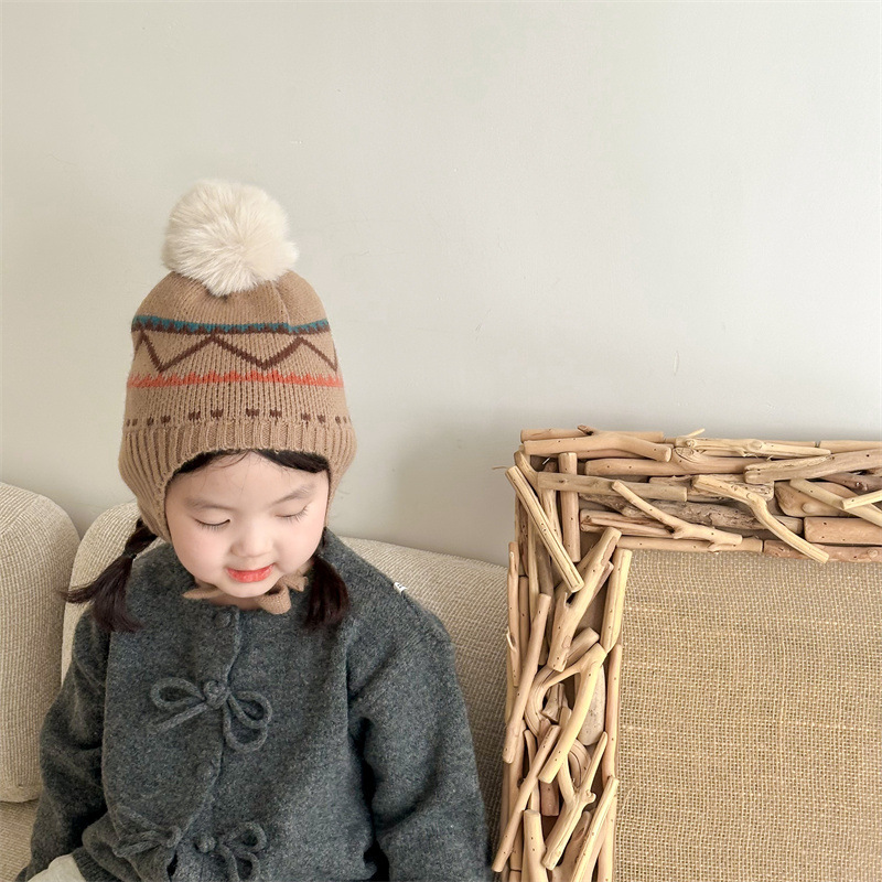 한국식 인터넷 연예인 새 자카드 귀 보호 모자 가을과 겨울 아기 패션 모피 공 니트 풀오버 모자 아이들이 따뜻하게 두껍게