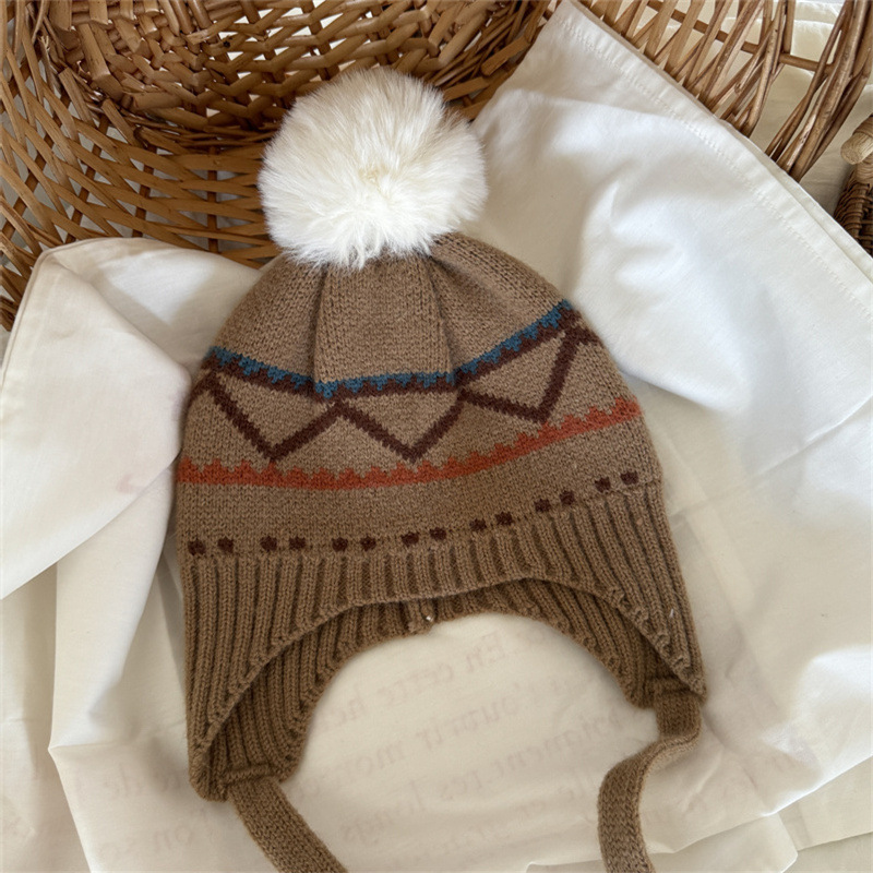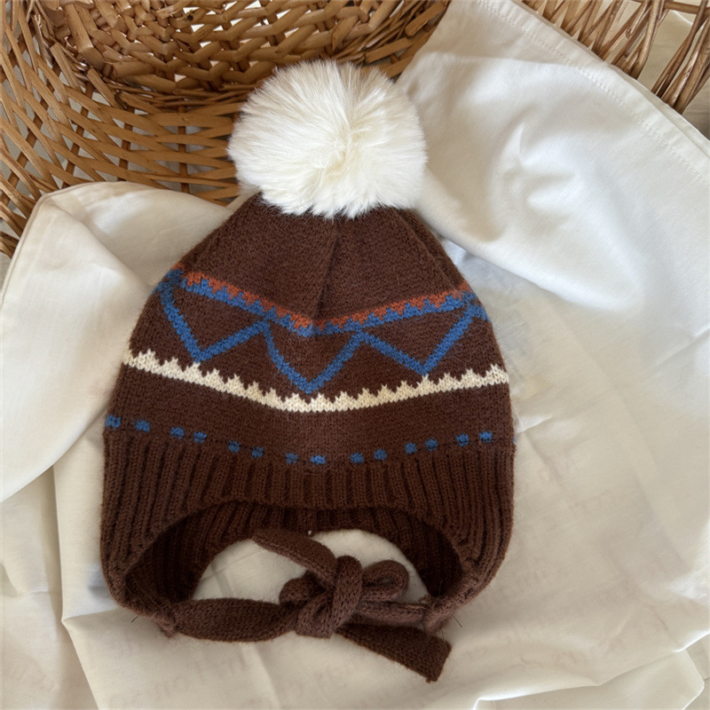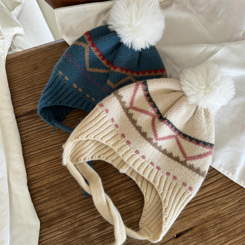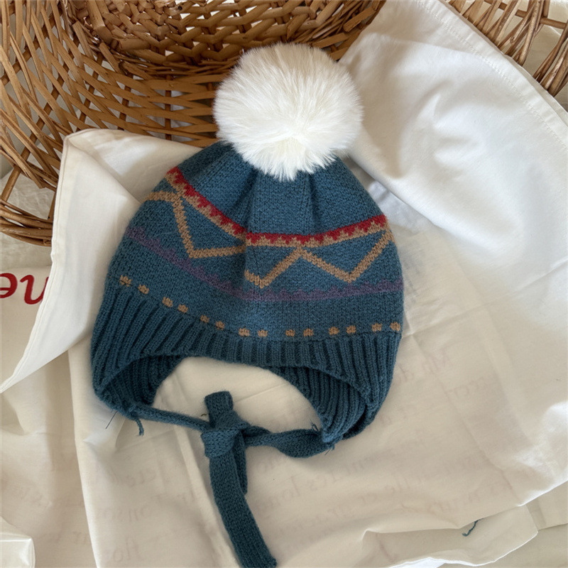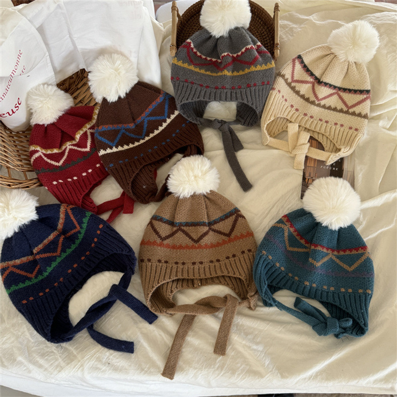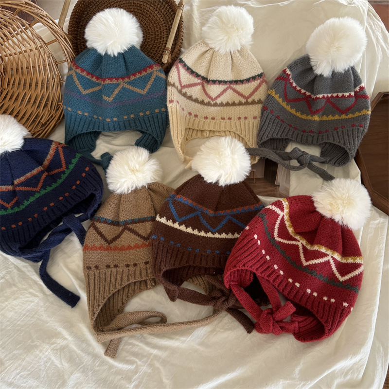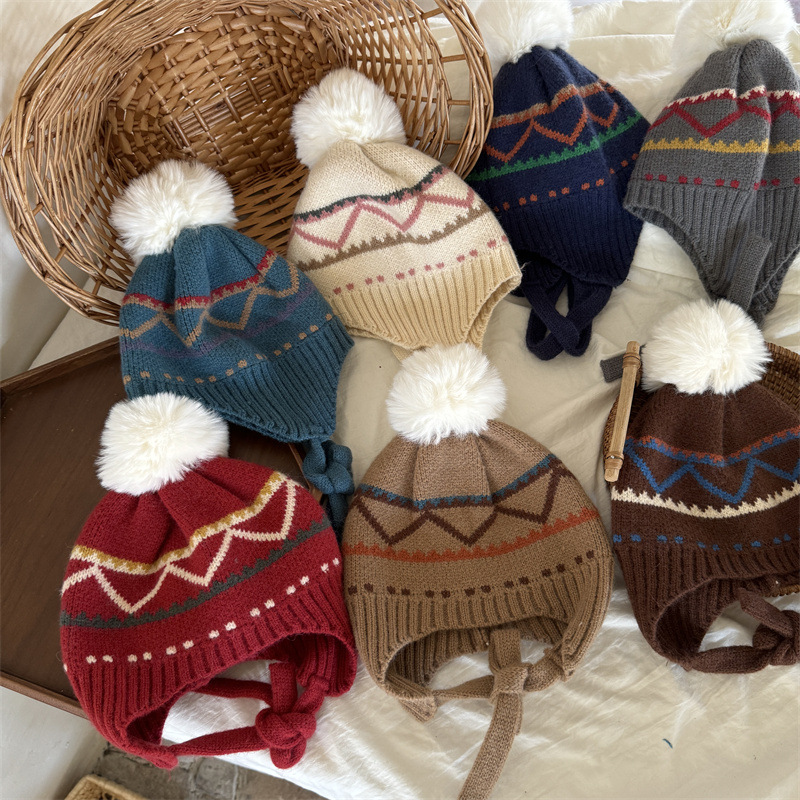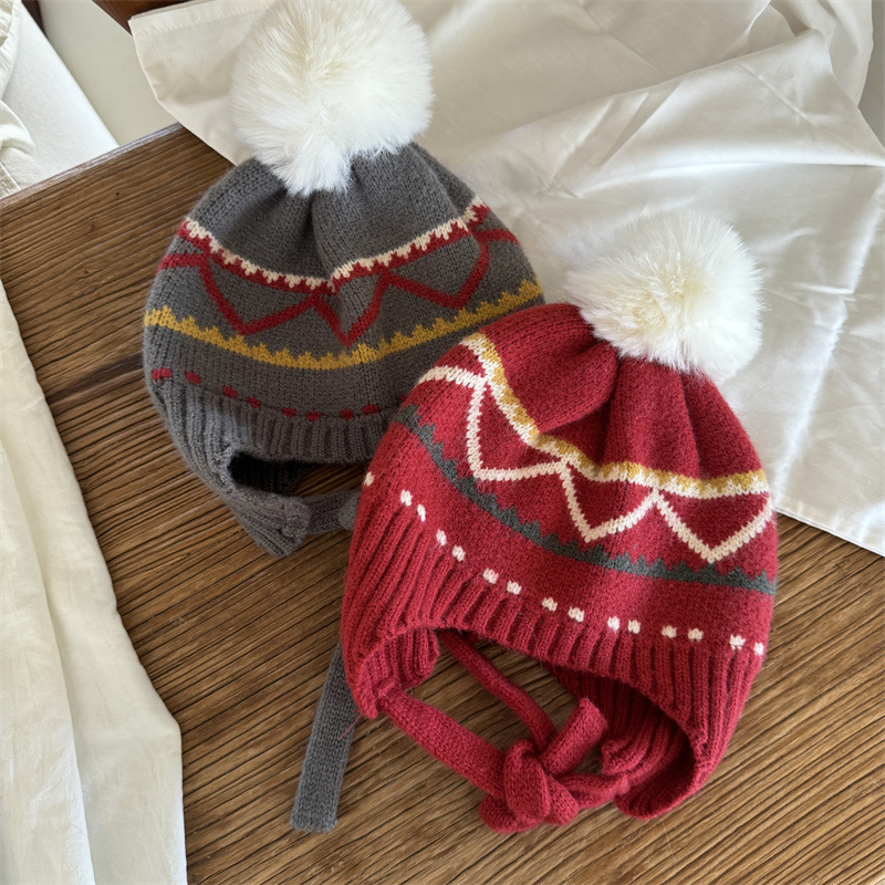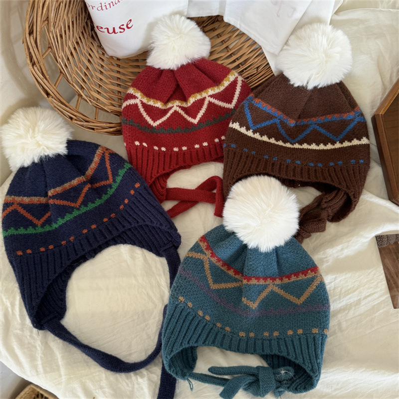 한국식 인터넷 연예인 새 자카드 귀 보호 모자 가을과 겨울 아기 패션 모피 공 니트 풀오버 모자 아이들이 따뜻하게 두껍게