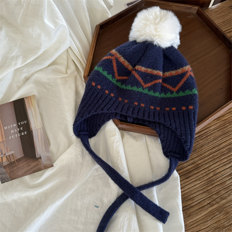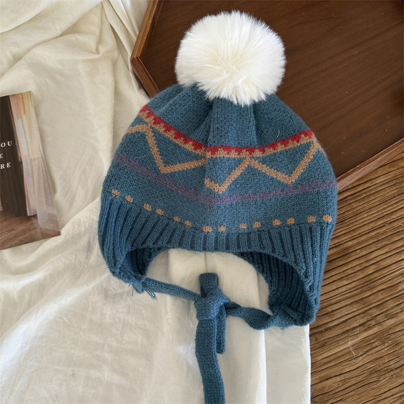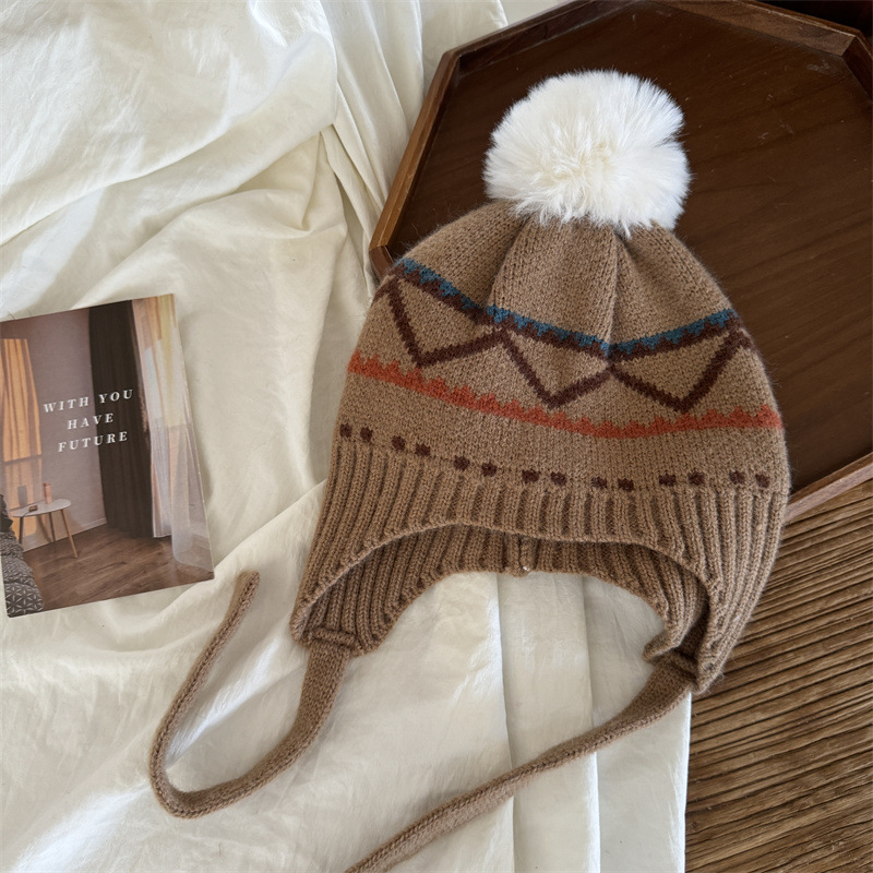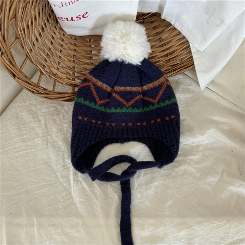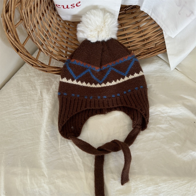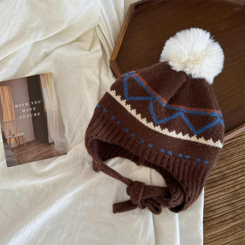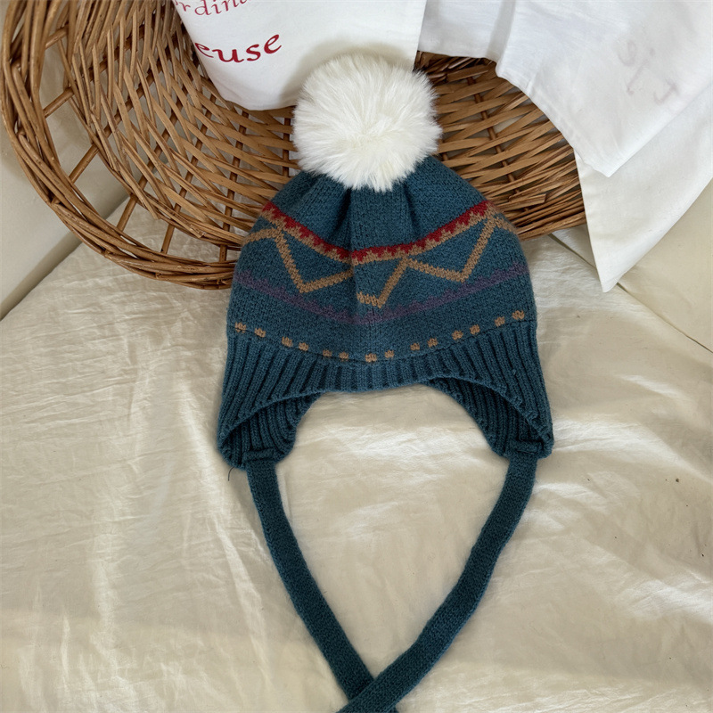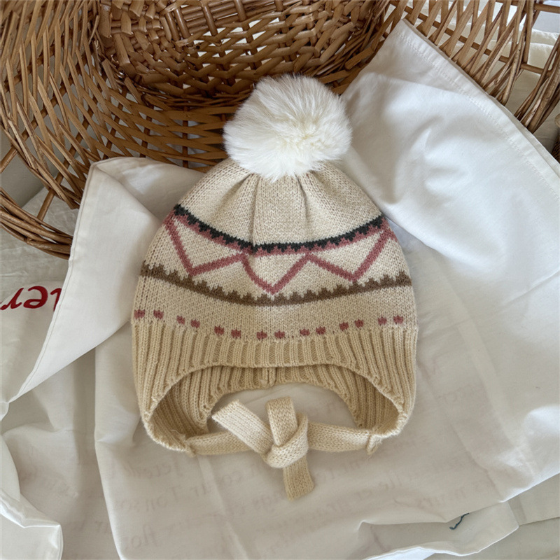 한국식 인터넷 연예인 새 자카드 귀 보호 모자 가을과 겨울 아기 패션 모피 공 니트 풀오버 모자 아이들이 따뜻하게 두껍게