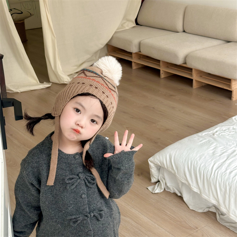한국식 인터넷 연예인 새 자카드 귀 보호 모자 가을과 겨울 아기 패션 모피 공 니트 풀오버 모자 아이들이 따뜻하게 두껍게스토어 가기