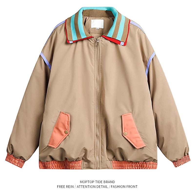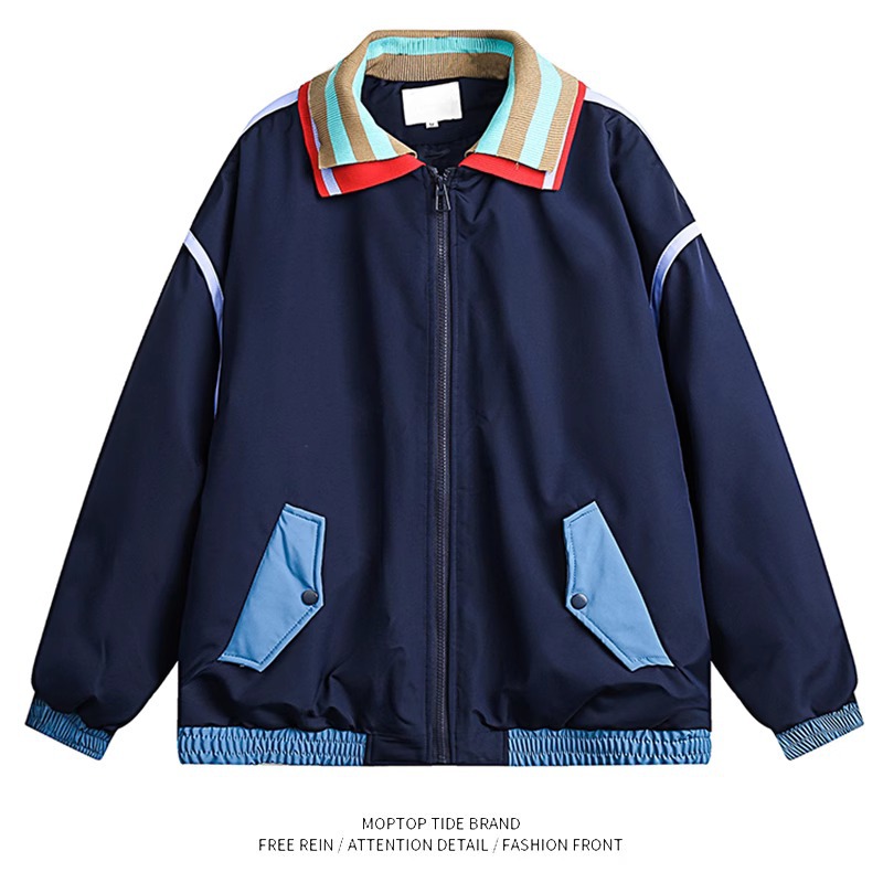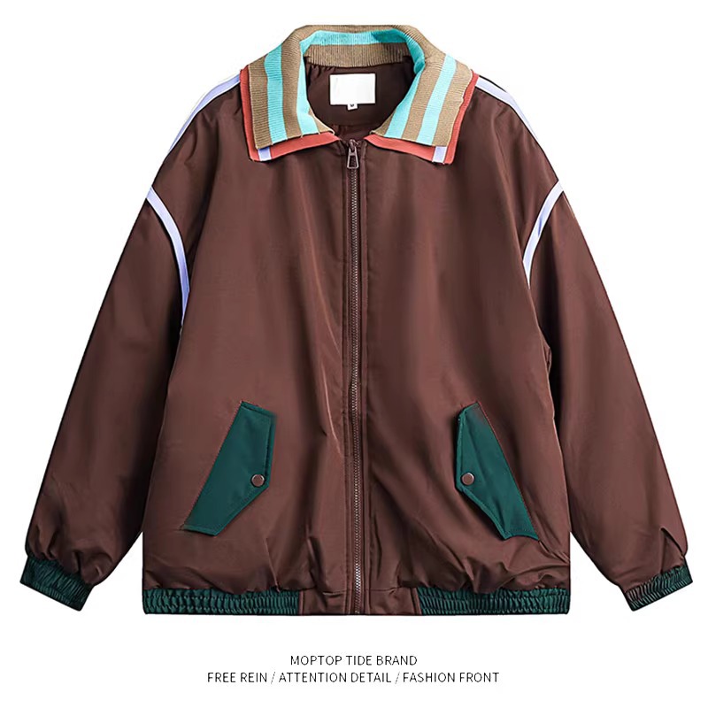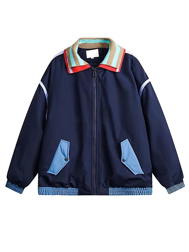 좋은 품질 봄과 가을 새로운 도착 미국 스타일 복고풍 컬러 블록 폭격기 재킷 여자 더블 칼라 야구 세트 준비 스타일 코트 트렌디스토어 가기