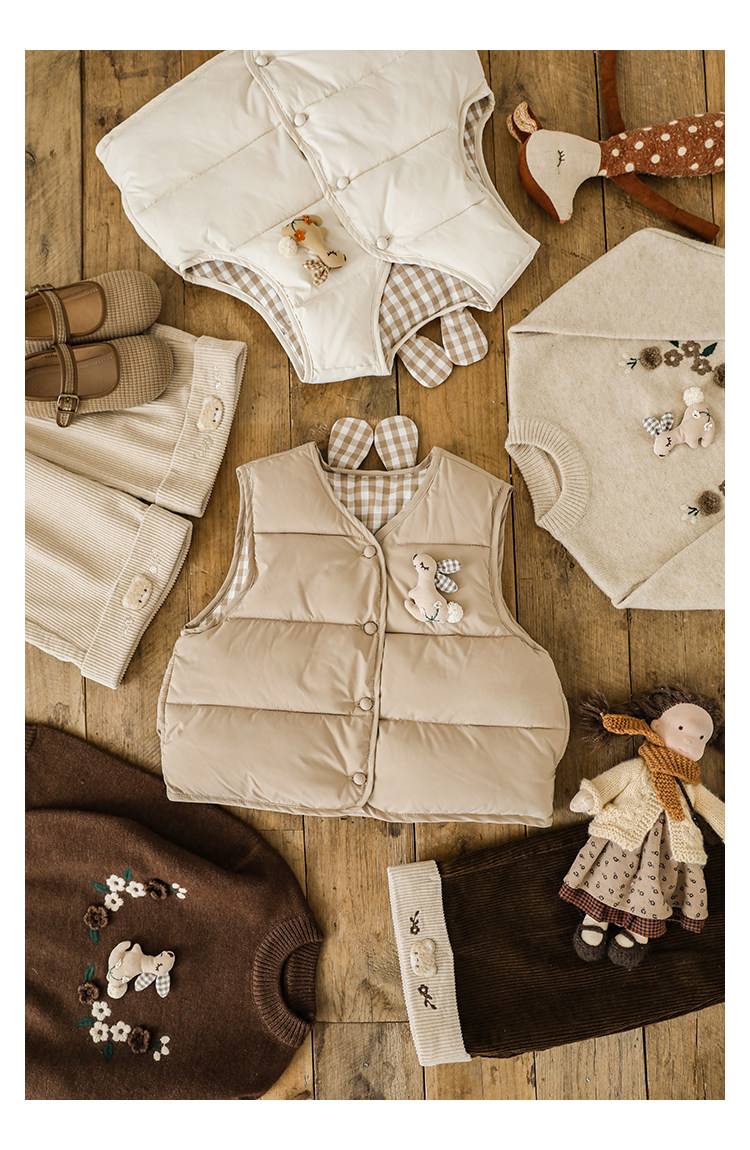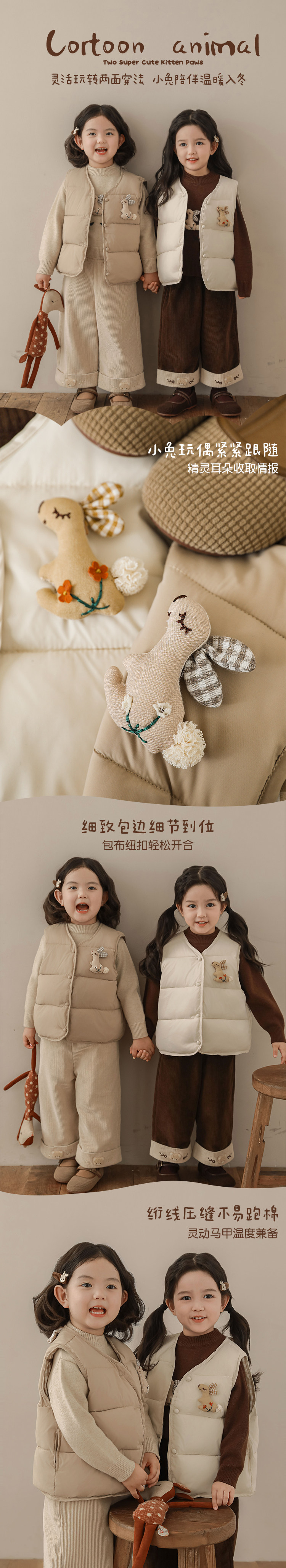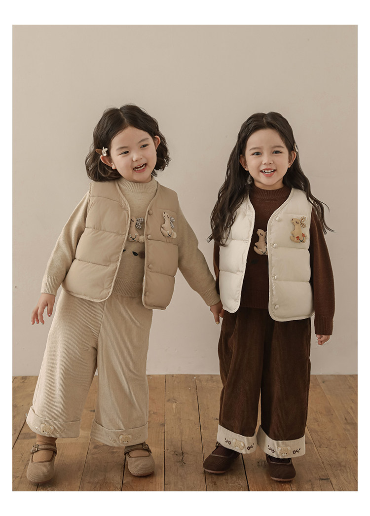 여자의 작은 토끼 인형 면화 조끼 2024 겨울 귀여운 귀여운 통기성 따뜻한 조끼 조수스토어 가기