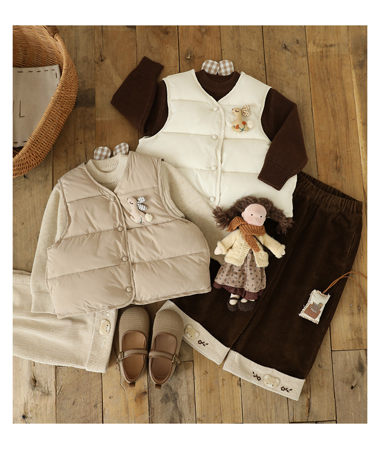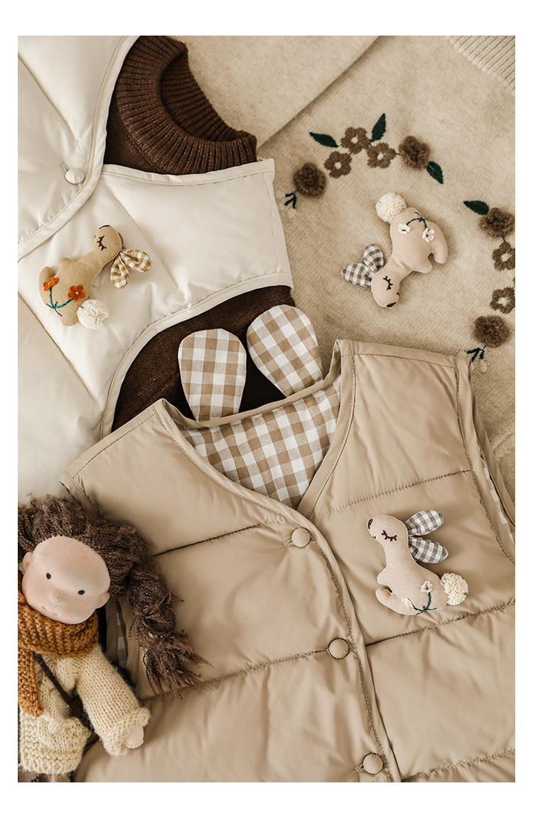 여자의 작은 토끼 인형 면화 조끼 2024 겨울 귀여운 귀여운 통기성 따뜻한 조끼 조수