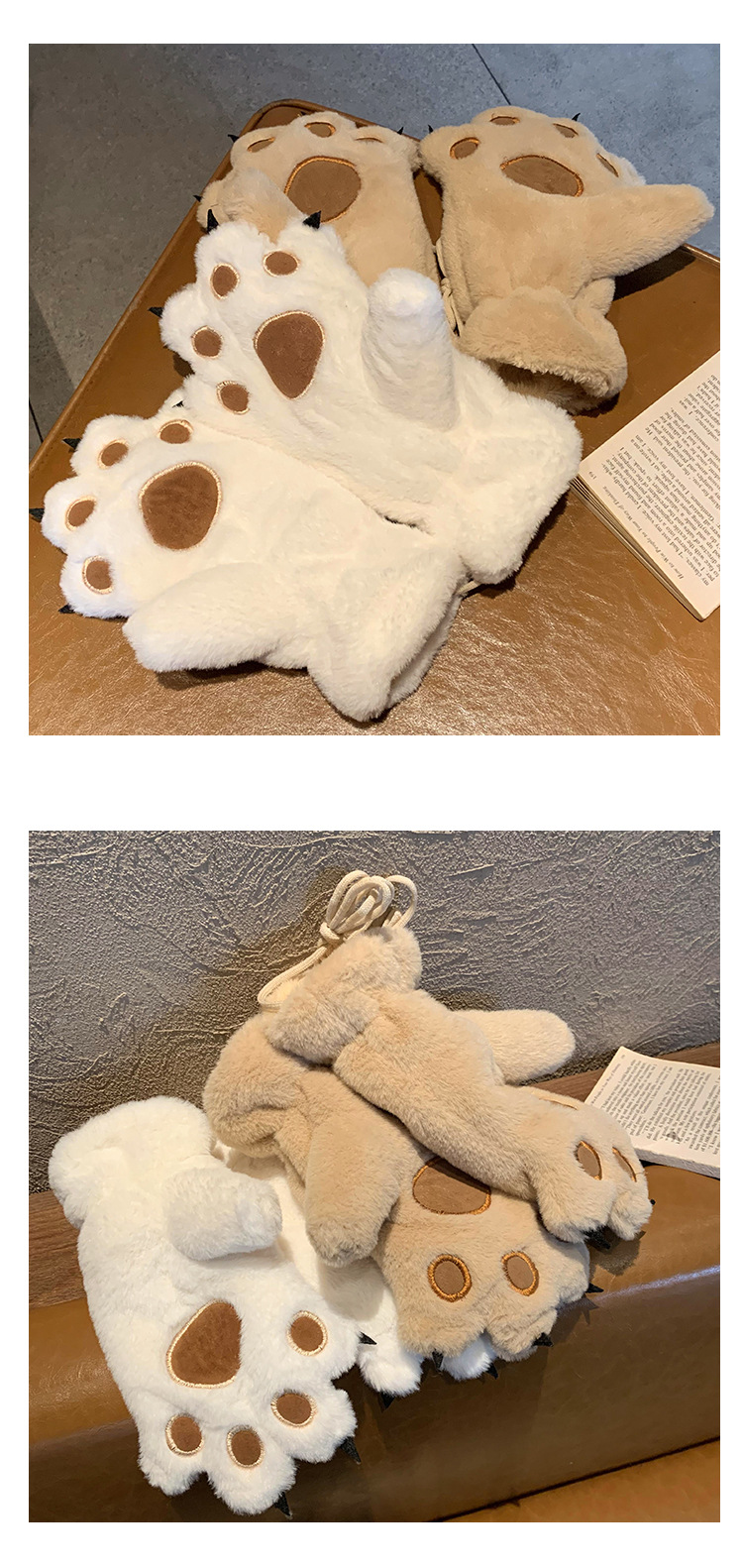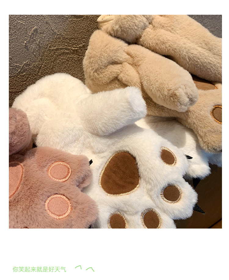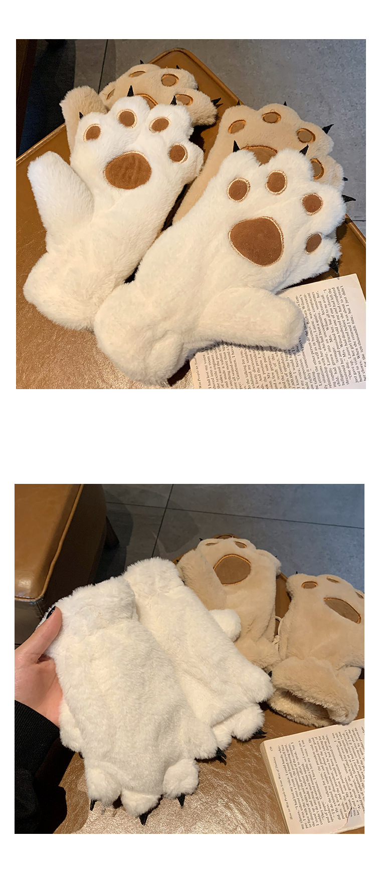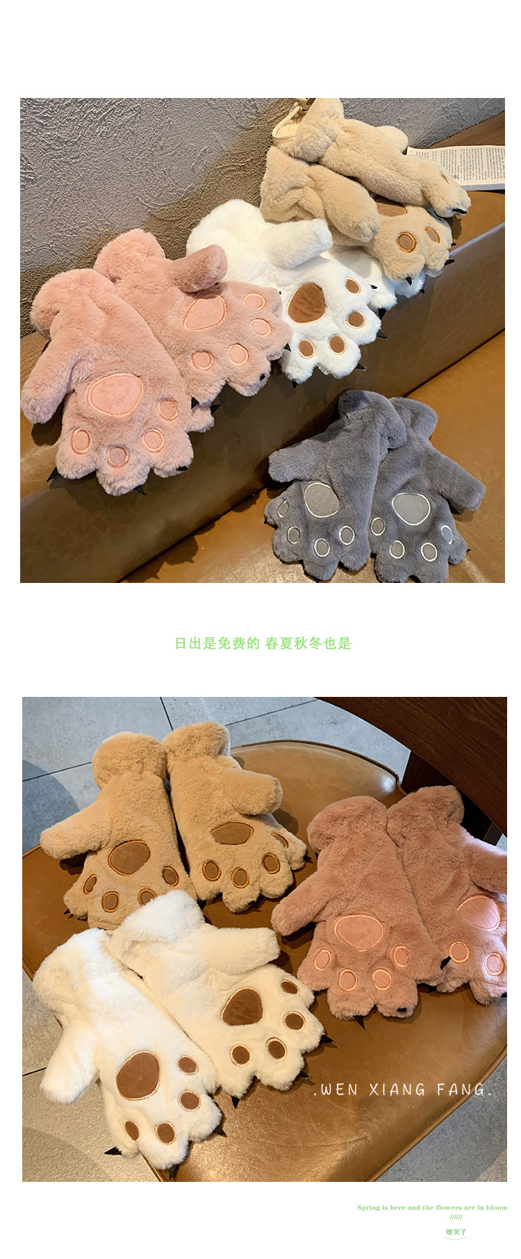 만화 귀여운 곰 발 고양이 발톱 봉제 장갑 여성 목 소녀 학생 기모 두꺼운 감기 방지 겨울 사이클링 조수스토어 가기