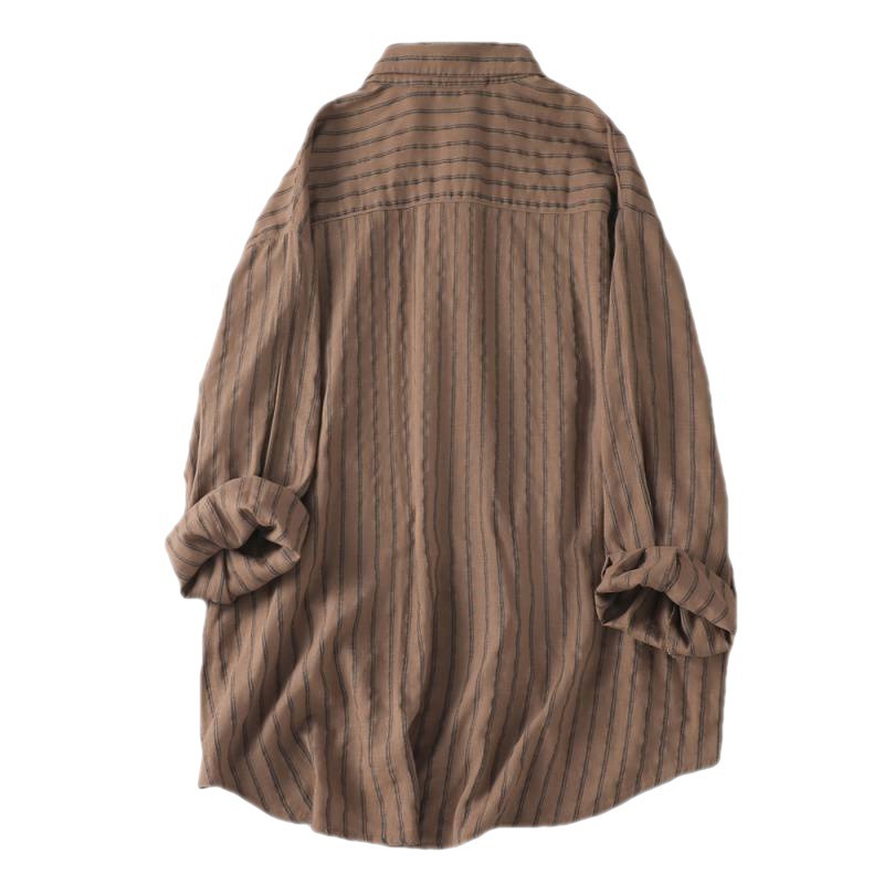 2025년 가을 스타일 루즈핏 통근 캐주얼 문예 레트로 일본풍 린넨 슬림핏 스트라이프 린넨 셔츠 여성용스토어 가기