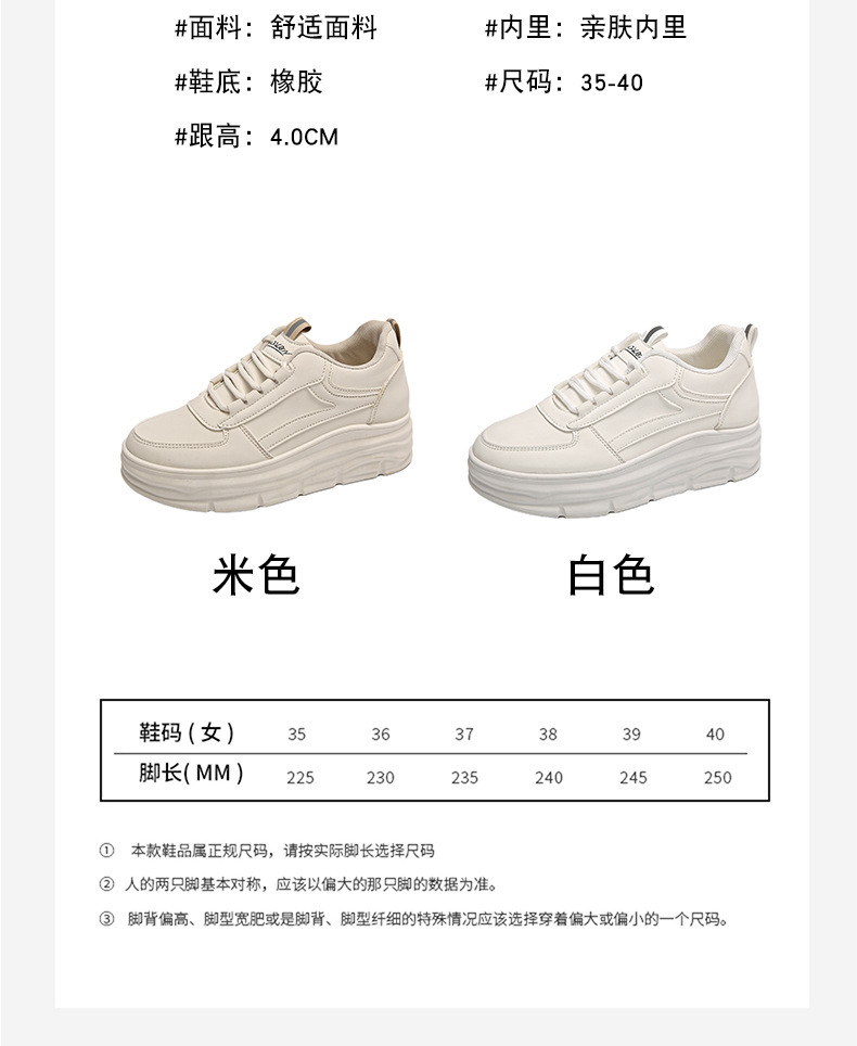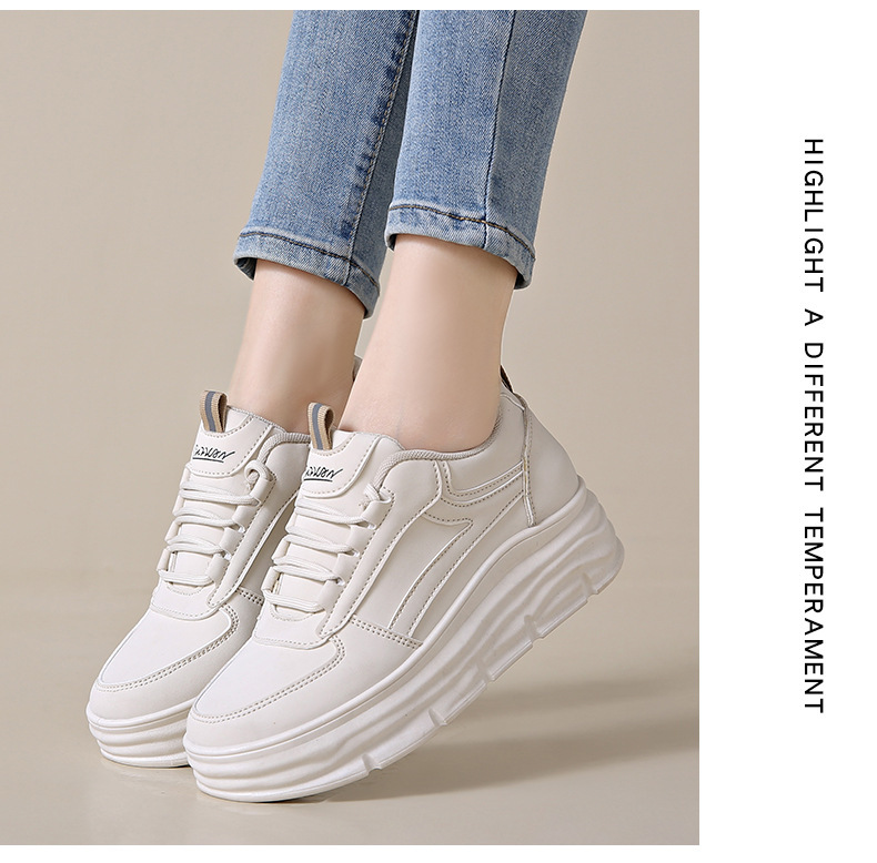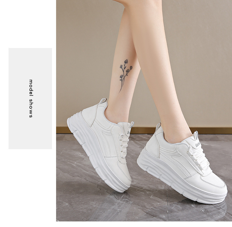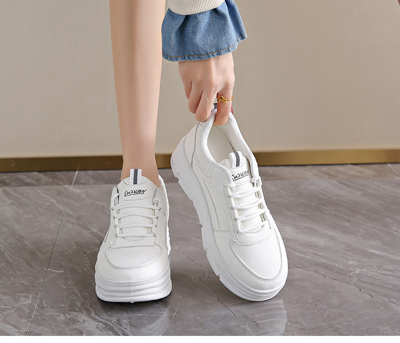 W3612 새로운 가죽 여성 신발 2024 가을 흰색 신발 두꺼운 단독 높이 증가 패션 캐주얼 신발 올 매치 여성 신발