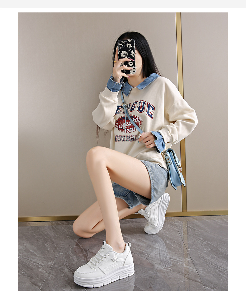 W3612 새로운 가죽 여성 신발 2024 가을 흰색 신발 두꺼운 단독 높이 증가 패션 캐주얼 신발 올 매치 여성 신발스토어 가기