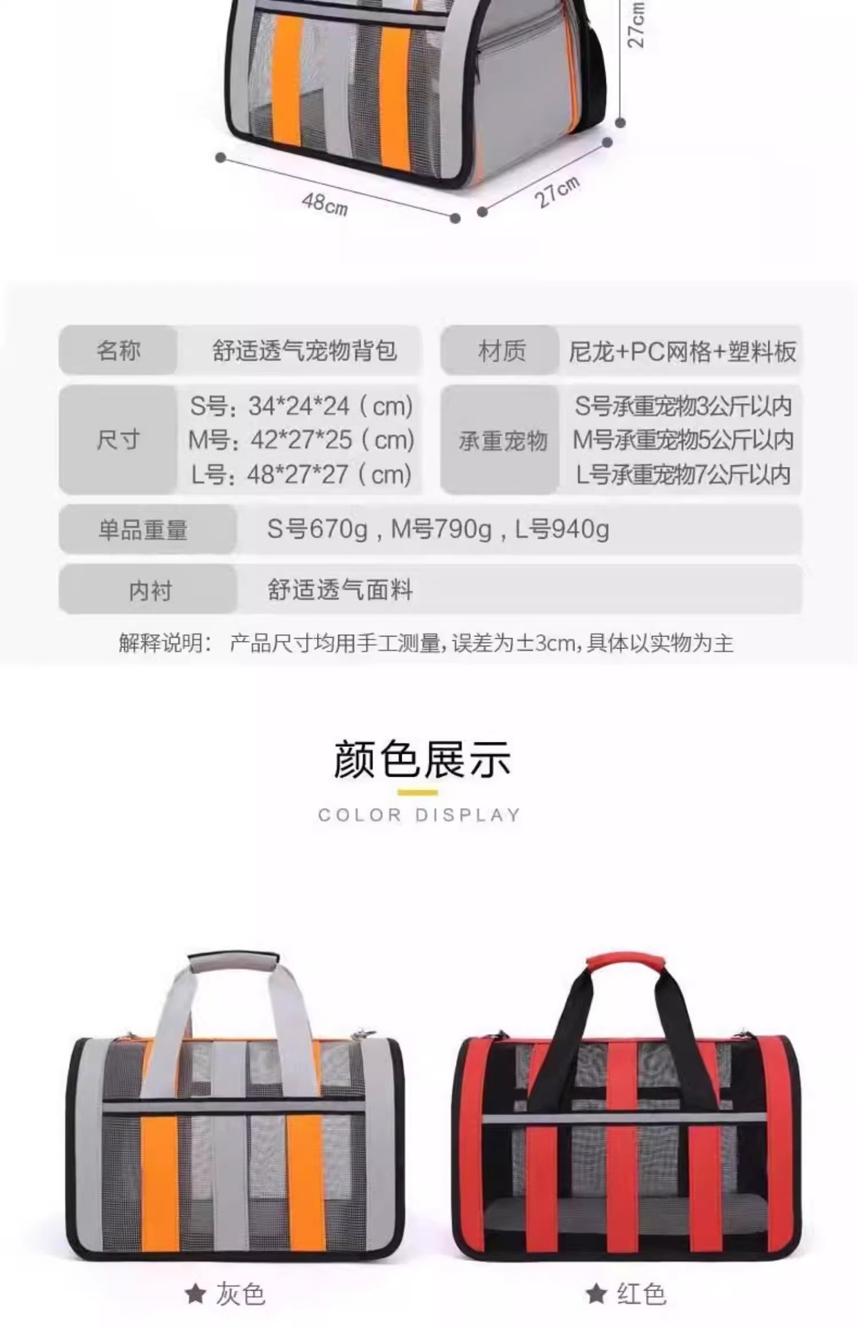 • 새로운 통기성 애완동물 핸드백 [레드]
