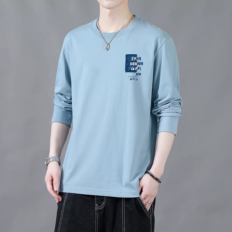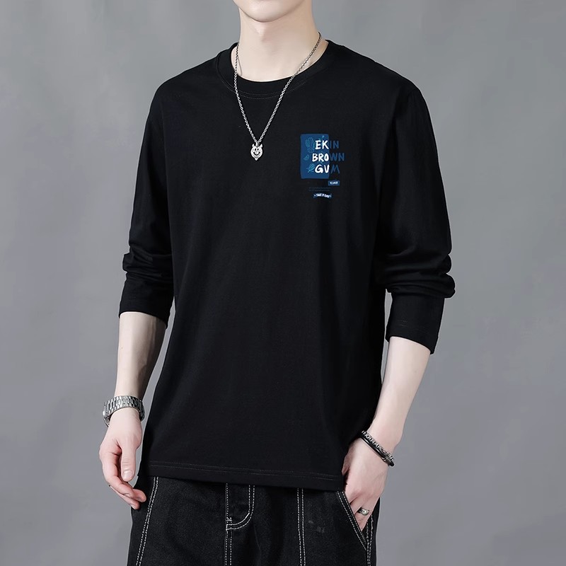 가을 새로운 긴팔 티셔츠 남성용 프린트 라운드 넥 슬림 핏 베이스 셔츠 학생 청소년 티셔츠 남성 패션스토어 가기