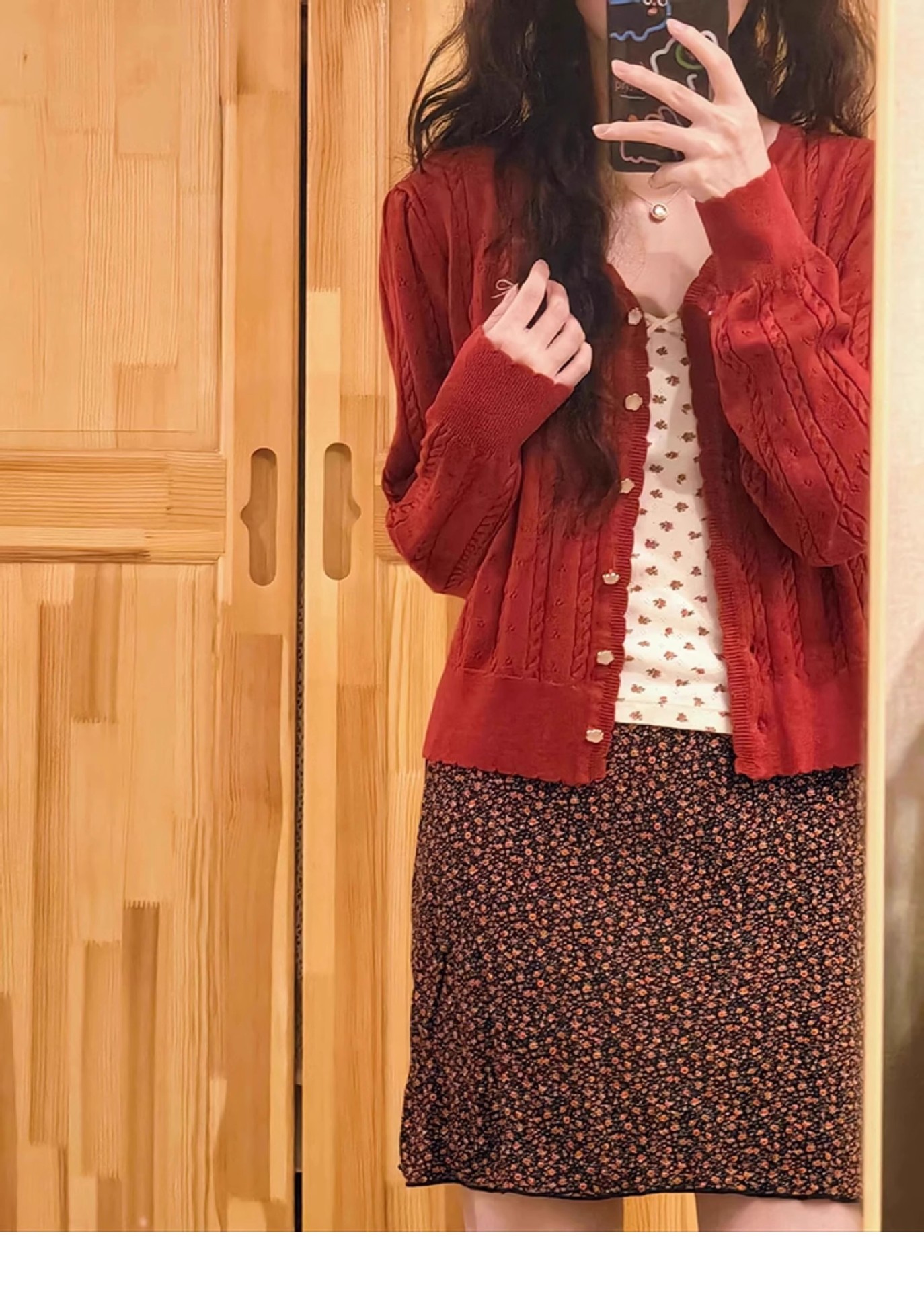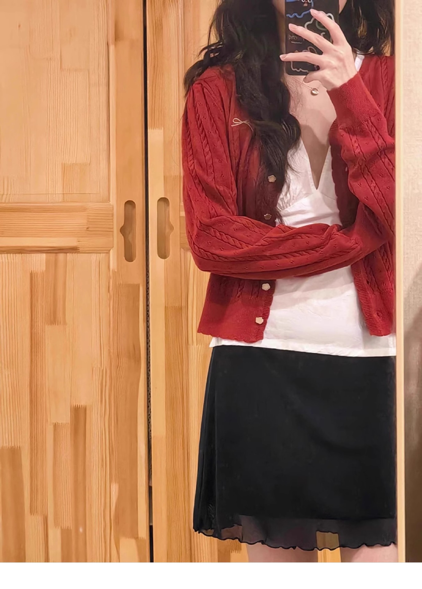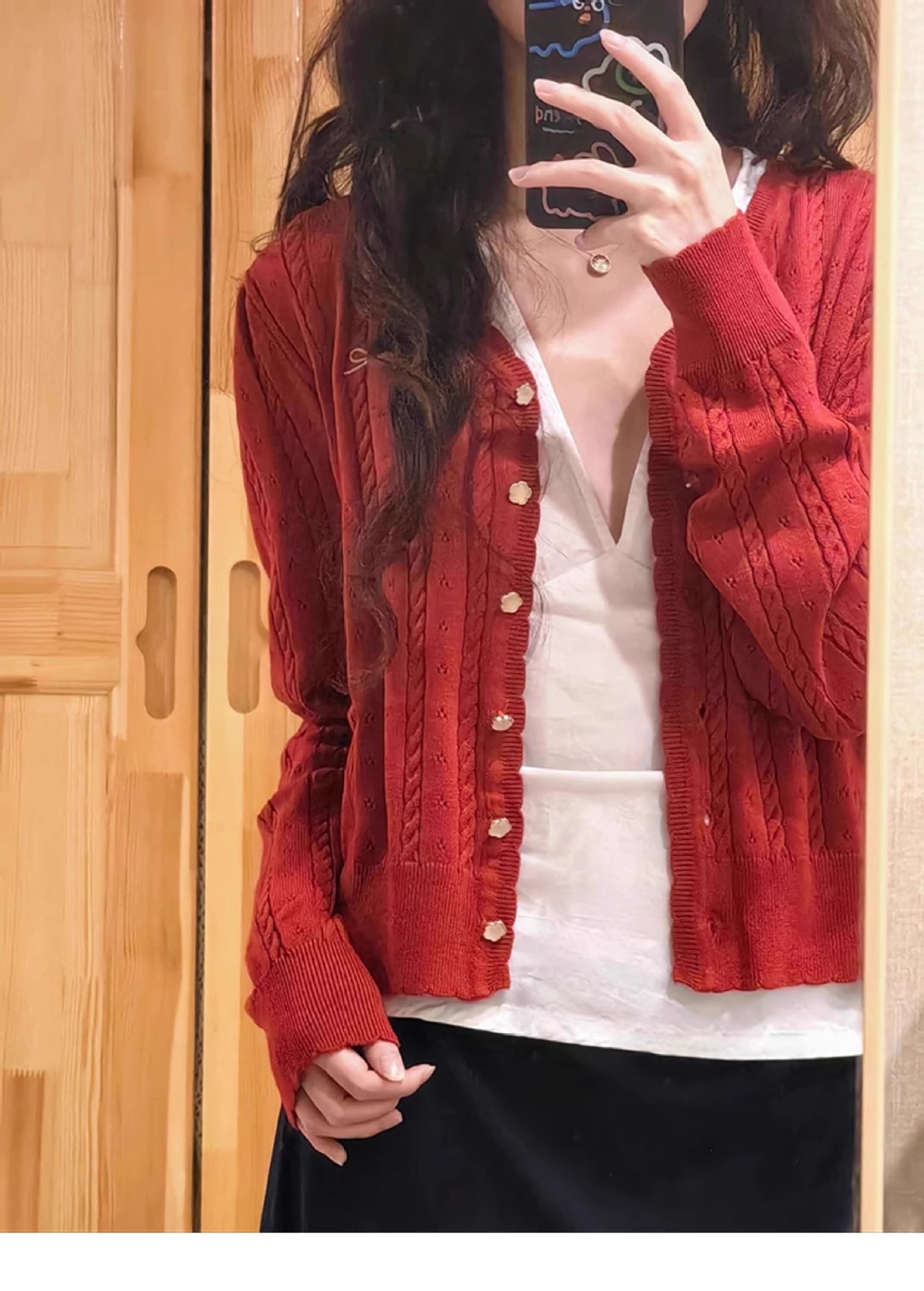 안코라 레드 자수 활 니트 카디건 여성 초가을 한국 트위스트 스웨터 쇼트 코트 샤넬 스타일 탑스토어 가기