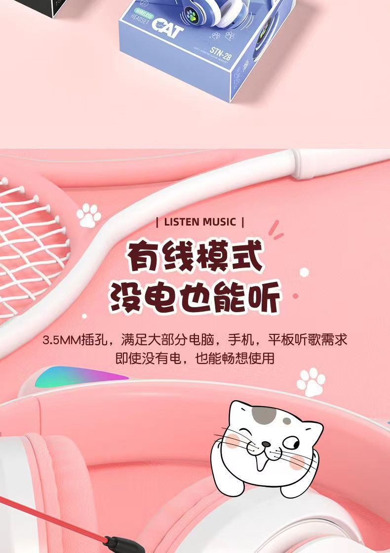 국경 간 STN-28 만화 빛나는 고양이 귀 헤드셋 블루투스 헤드셋 라디오 경쟁 게임 헤드셋 소녀 새로운스토어 가기