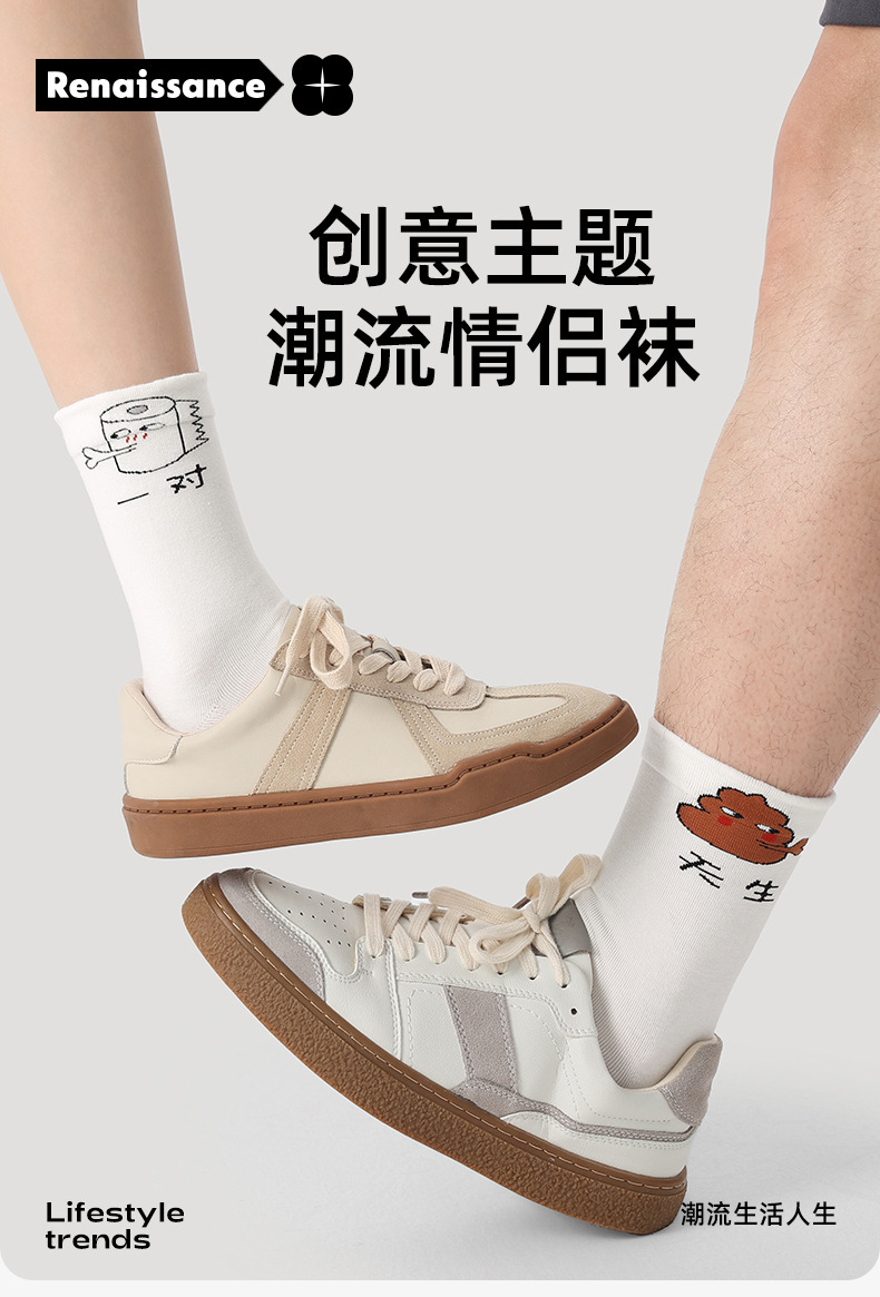 르네상스 창조적 인 양말 여성 여름 만화 재미있는 튜브 양말 남성 봄과 가을 커플 스포츠 면 양말