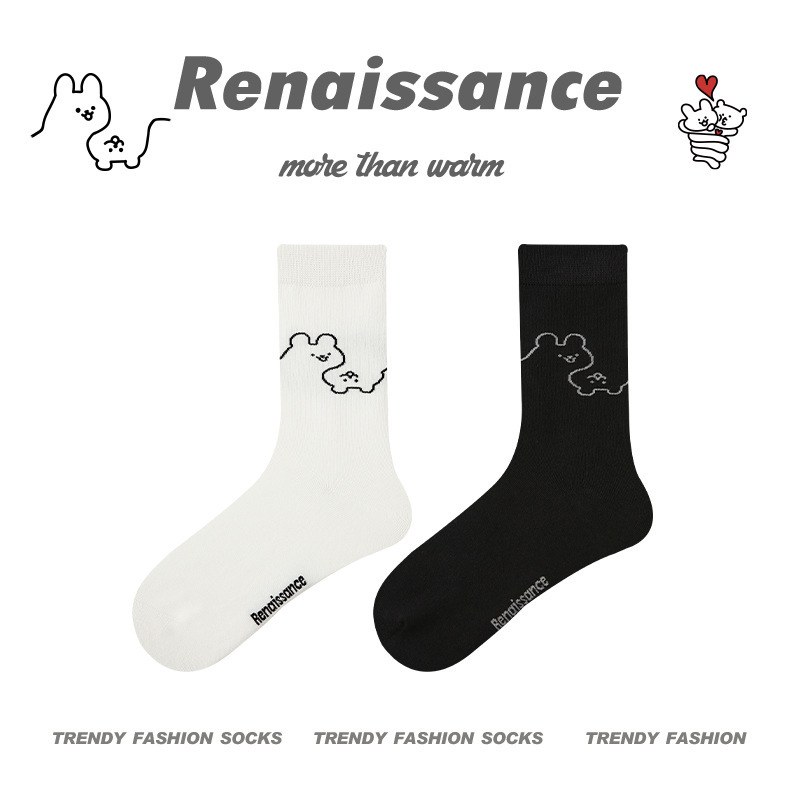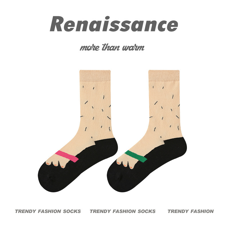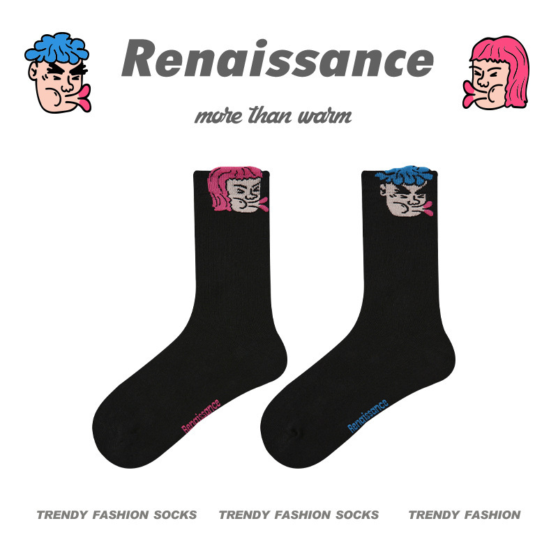 르네상스 창조적 인 양말 여성 여름 만화 재미있는 튜브 양말 남성 봄과 가을 커플 스포츠 면 양말스토어 가기