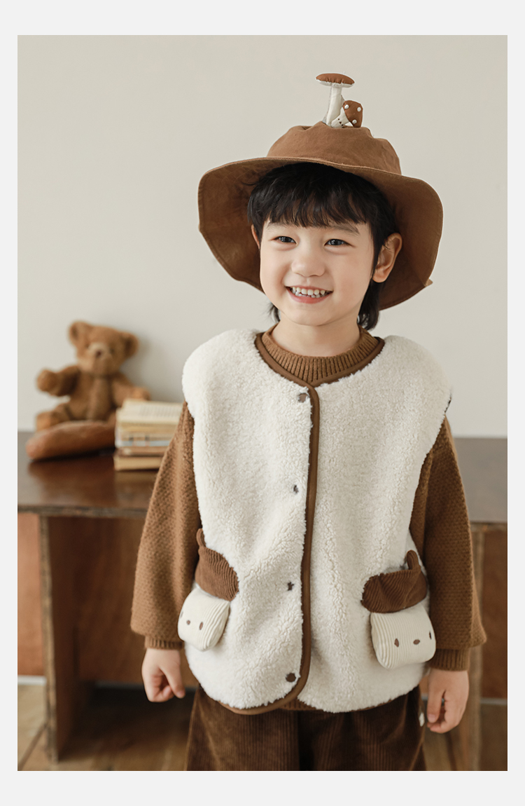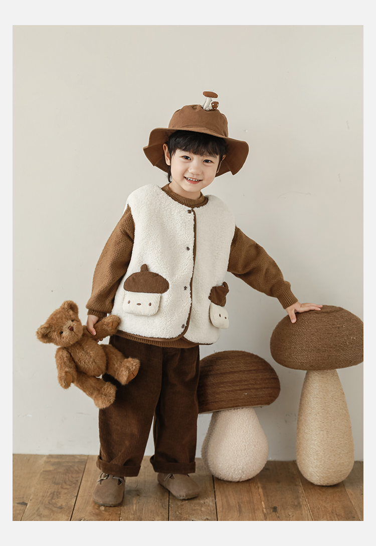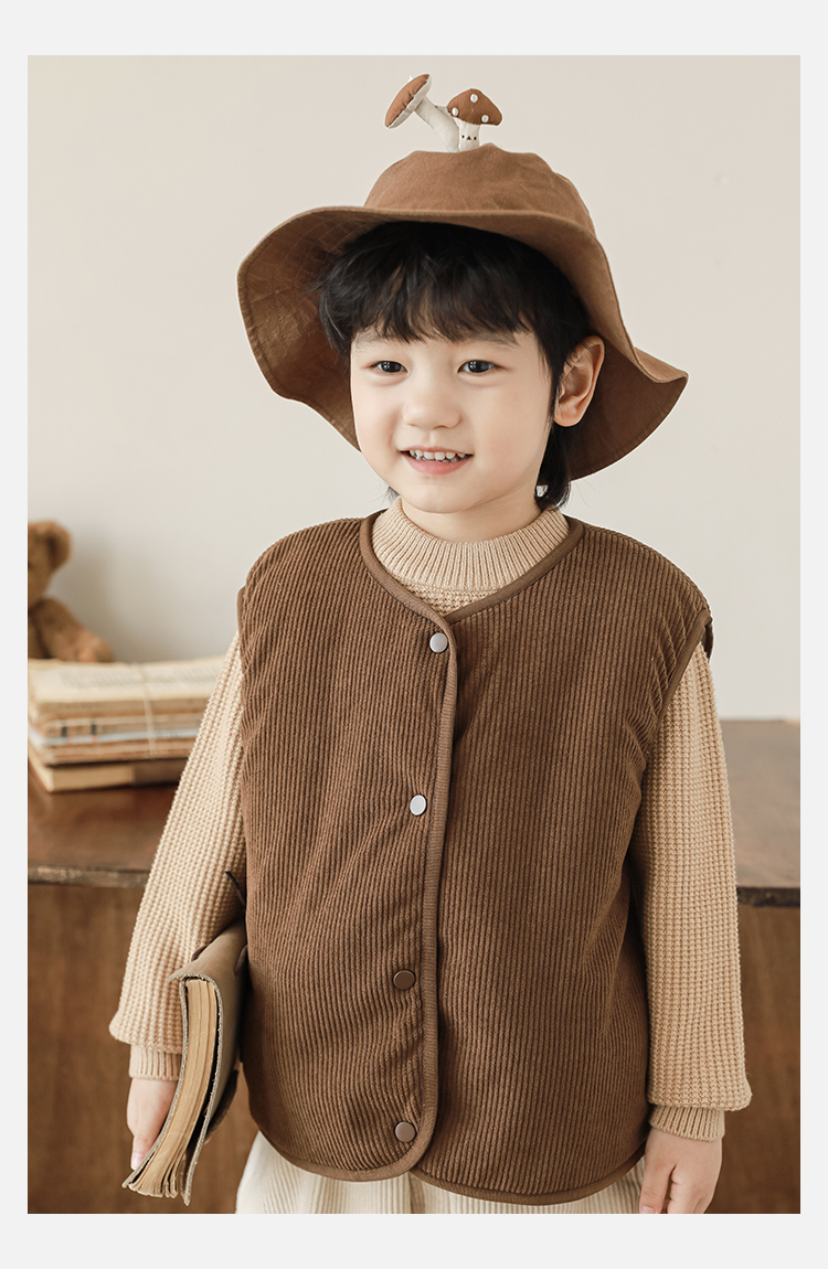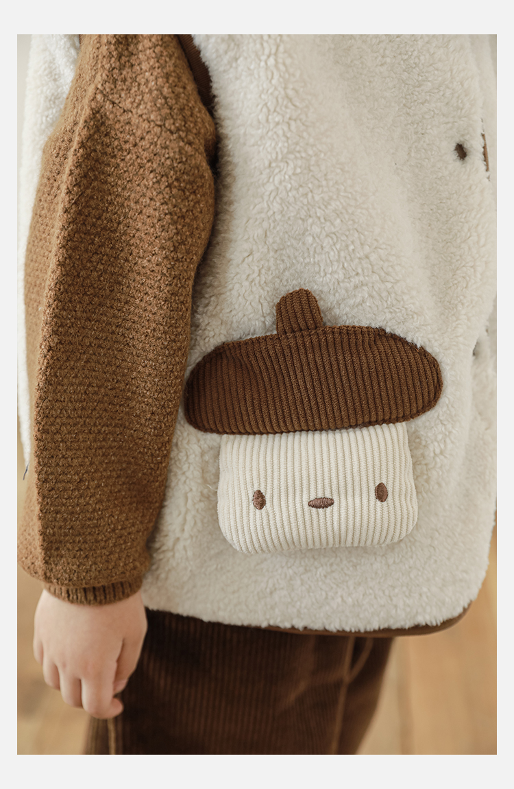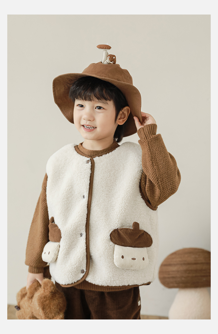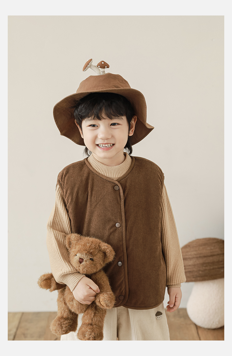 Wulibu Yinan 2025 새로운 스타일의 버섯 양면 조끼 겨울 스타일 아동 패션 트렌디 따뜻한 조끼 두꺼운