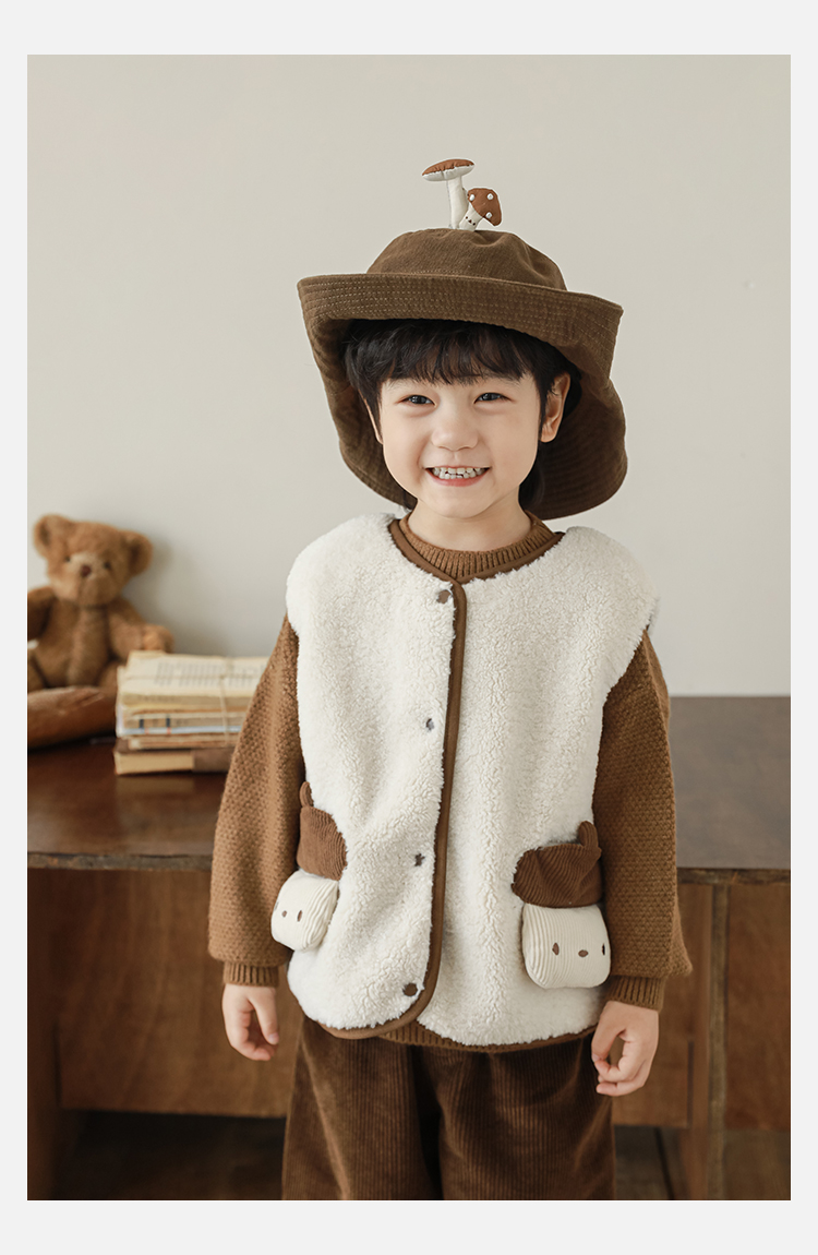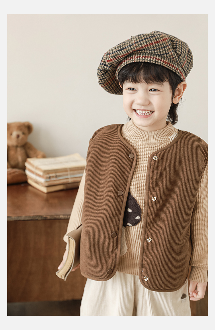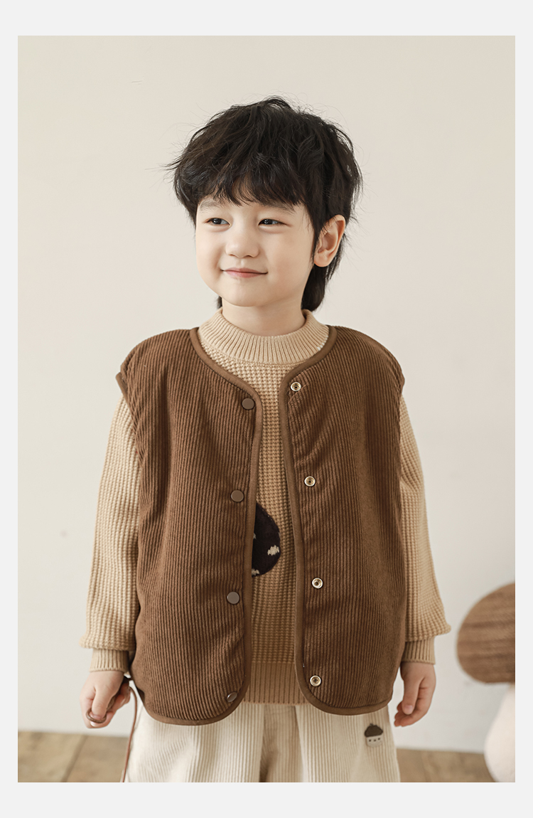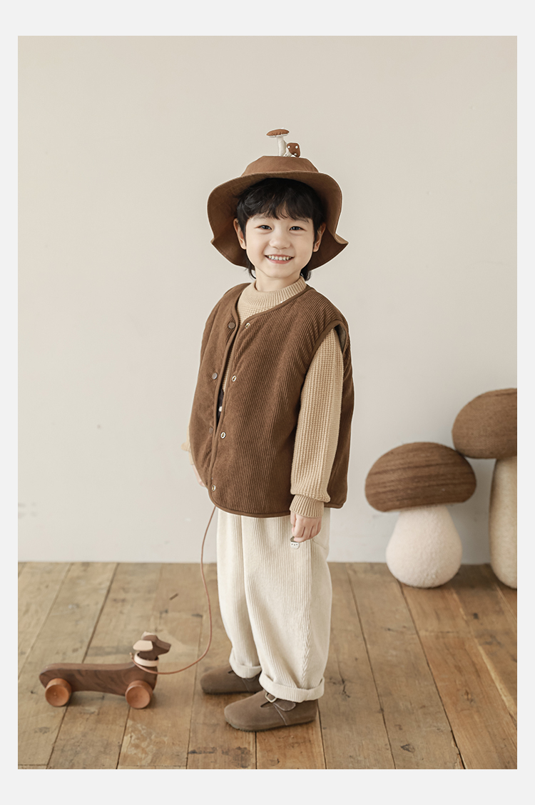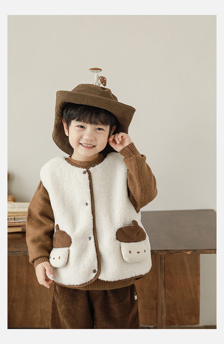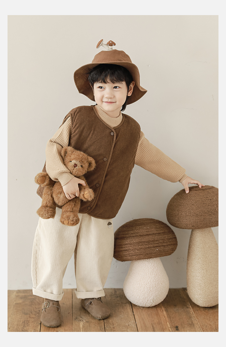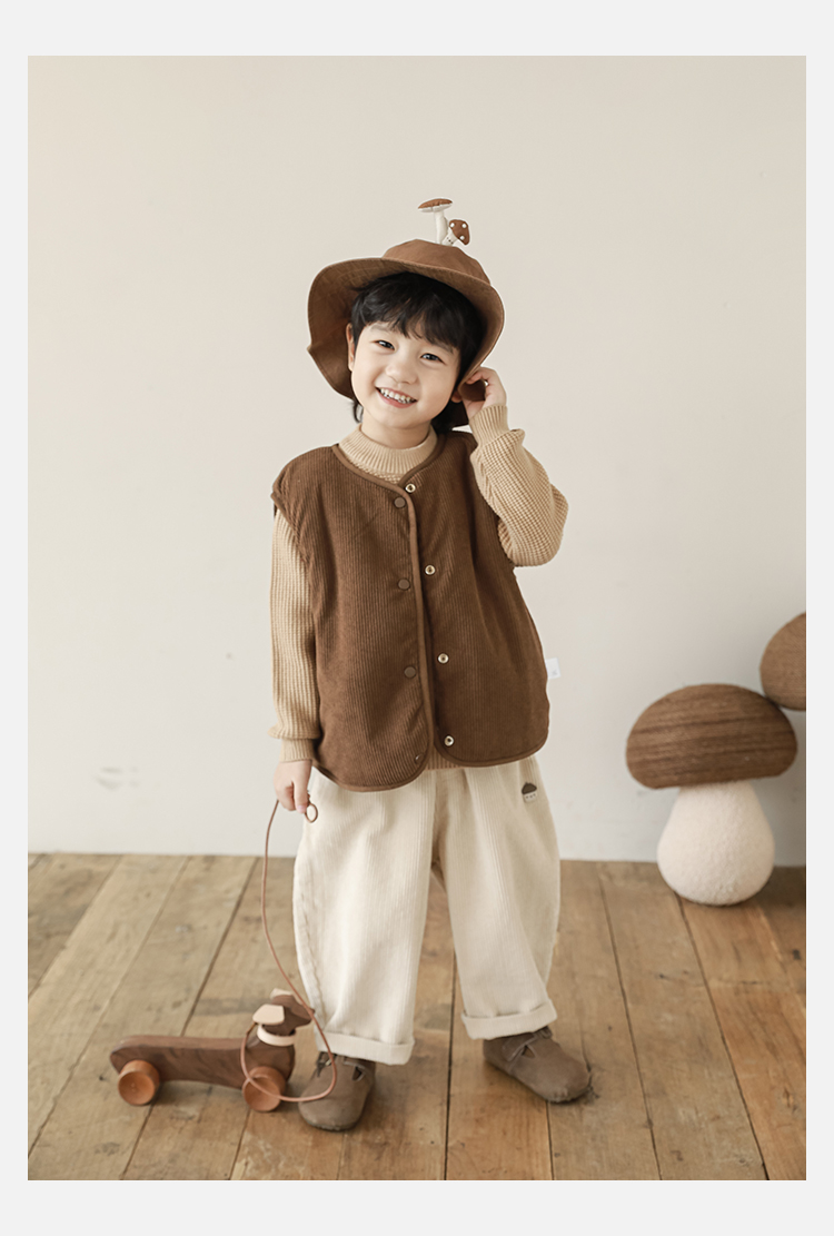 Wulibu Yinan 2025 새로운 스타일의 버섯 양면 조끼 겨울 스타일 아동 패션 트렌디 따뜻한 조끼 두꺼운
