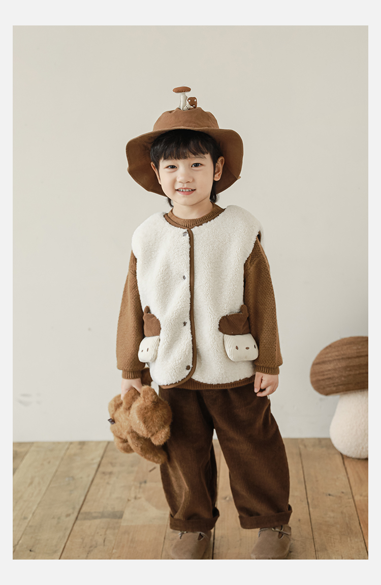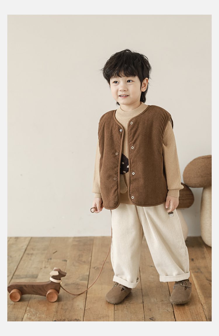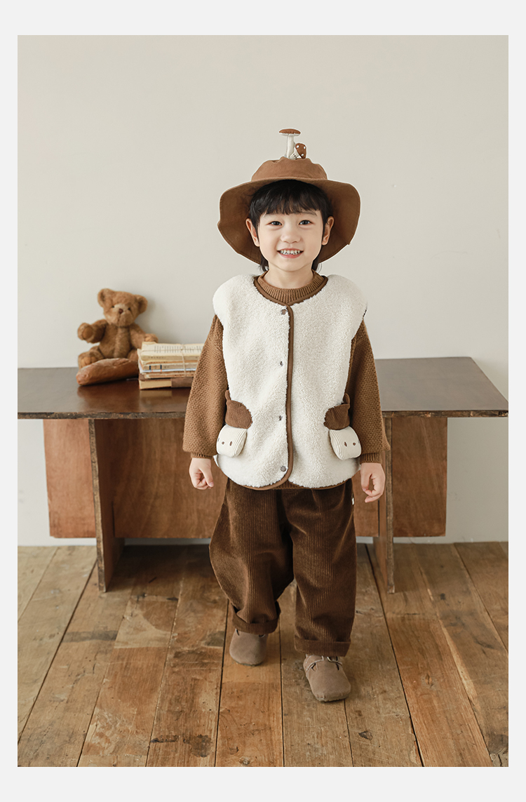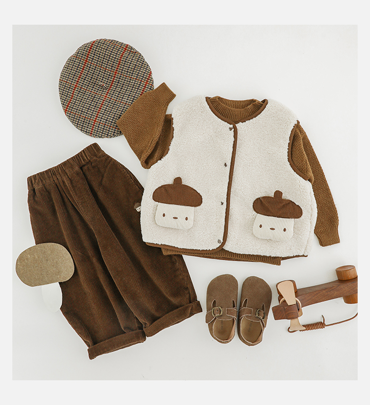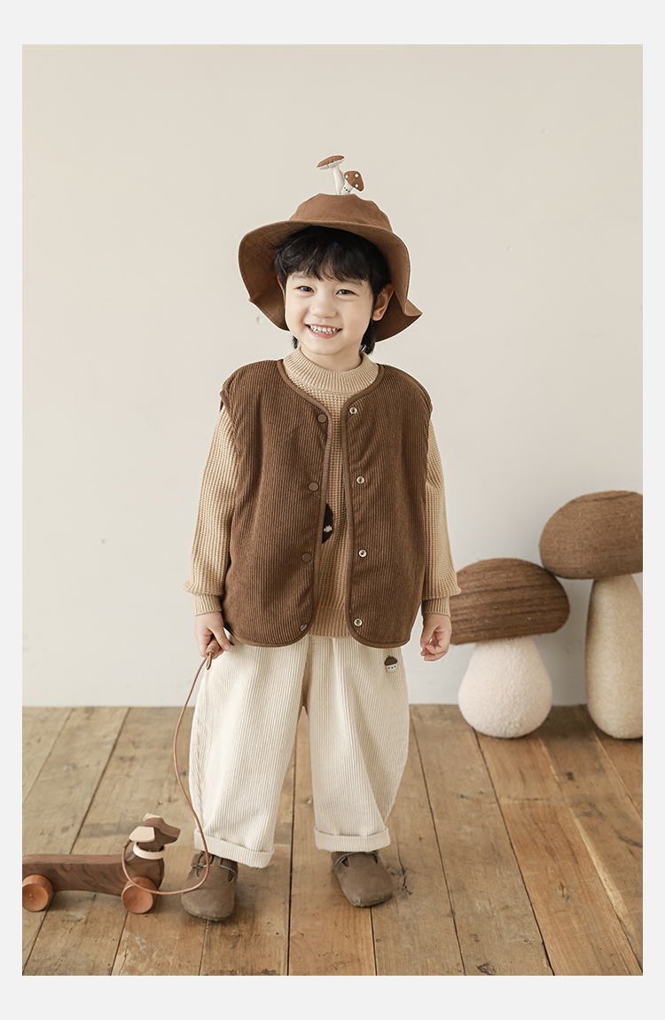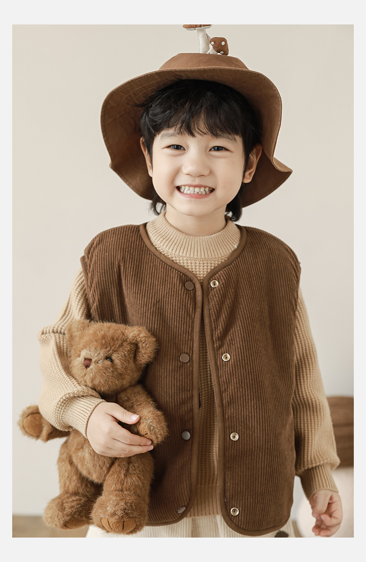 Wulibu Yinan 2025 새로운 스타일의 버섯 양면 조끼 겨울 스타일 아동 패션 트렌디 따뜻한 조끼 두꺼운