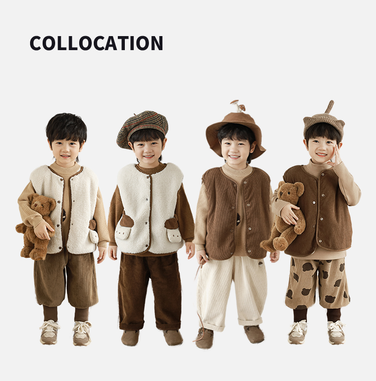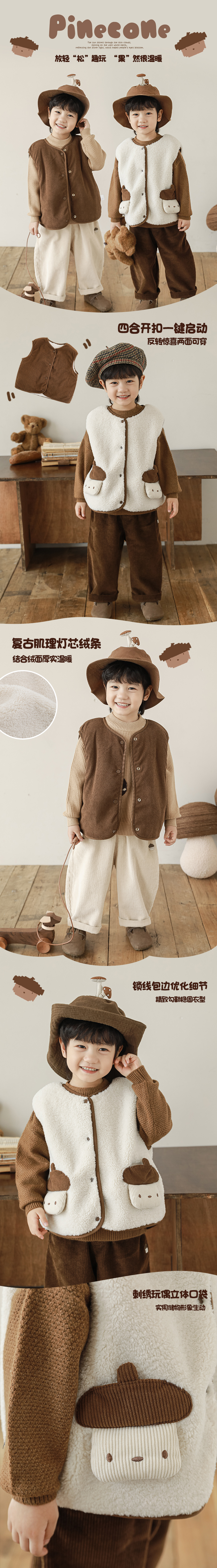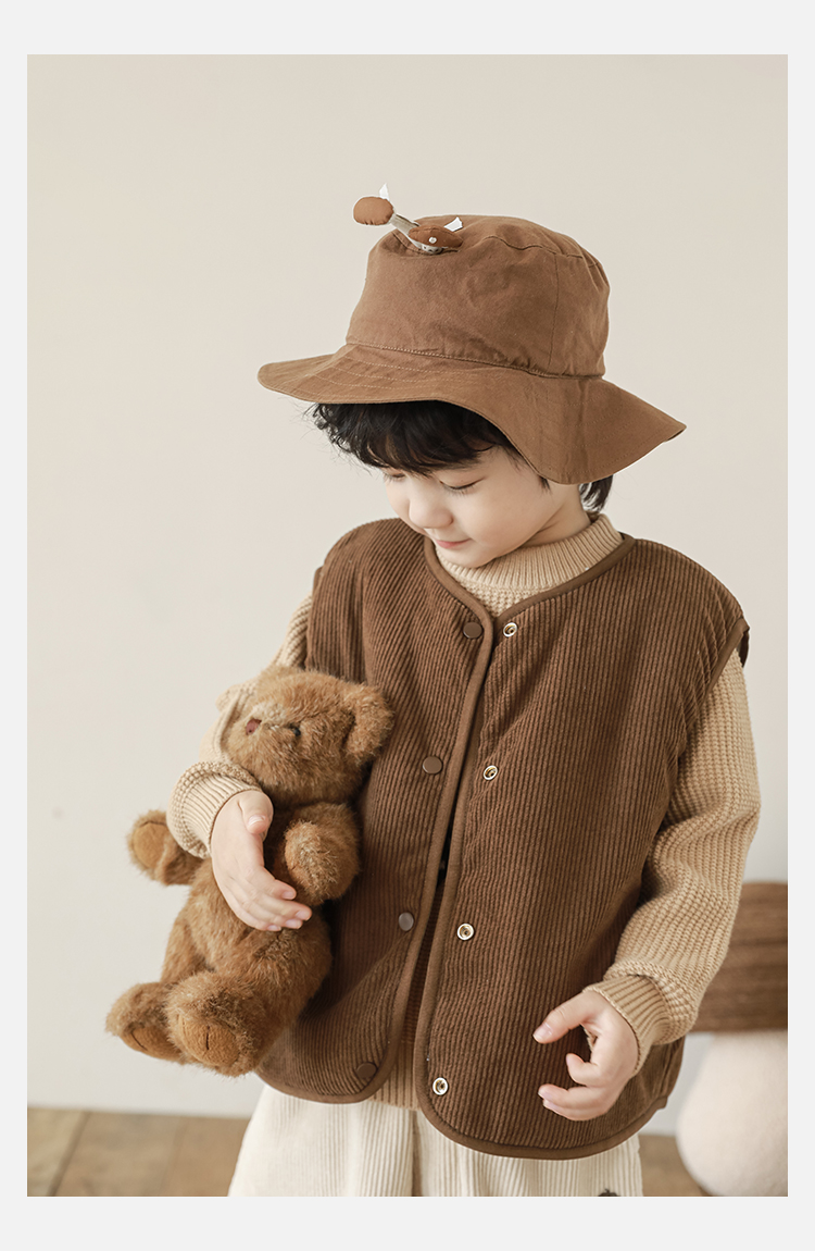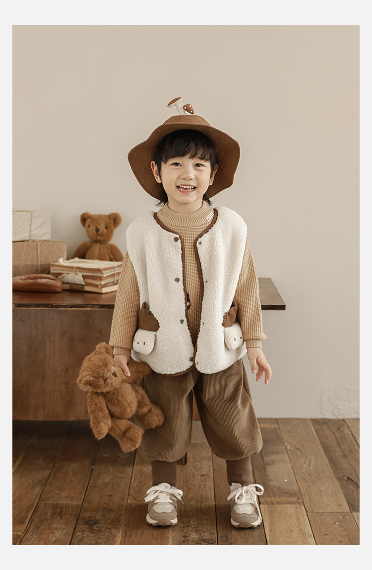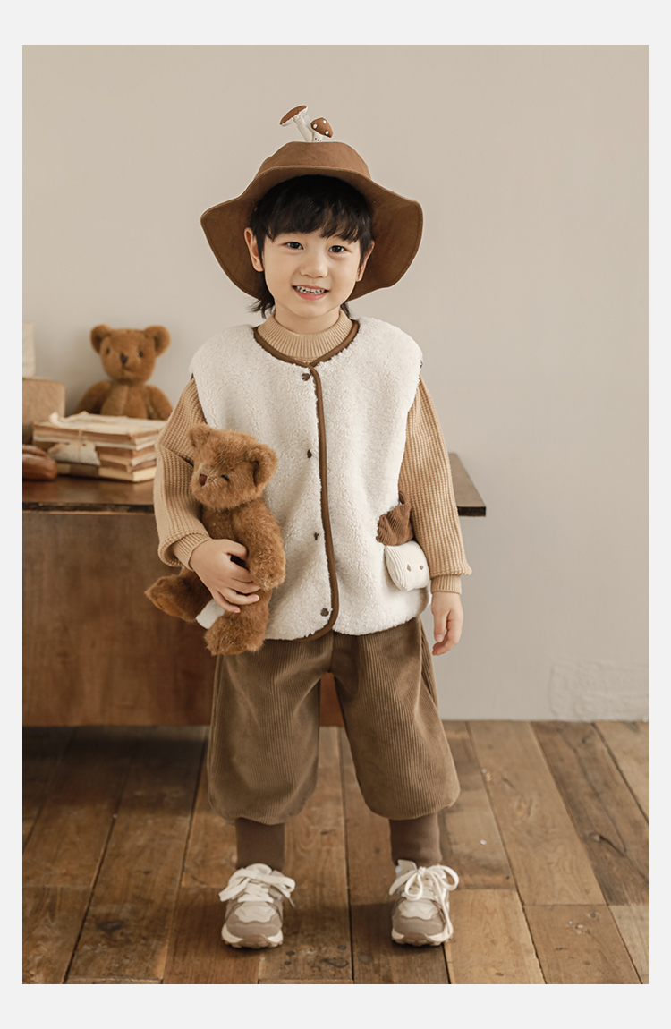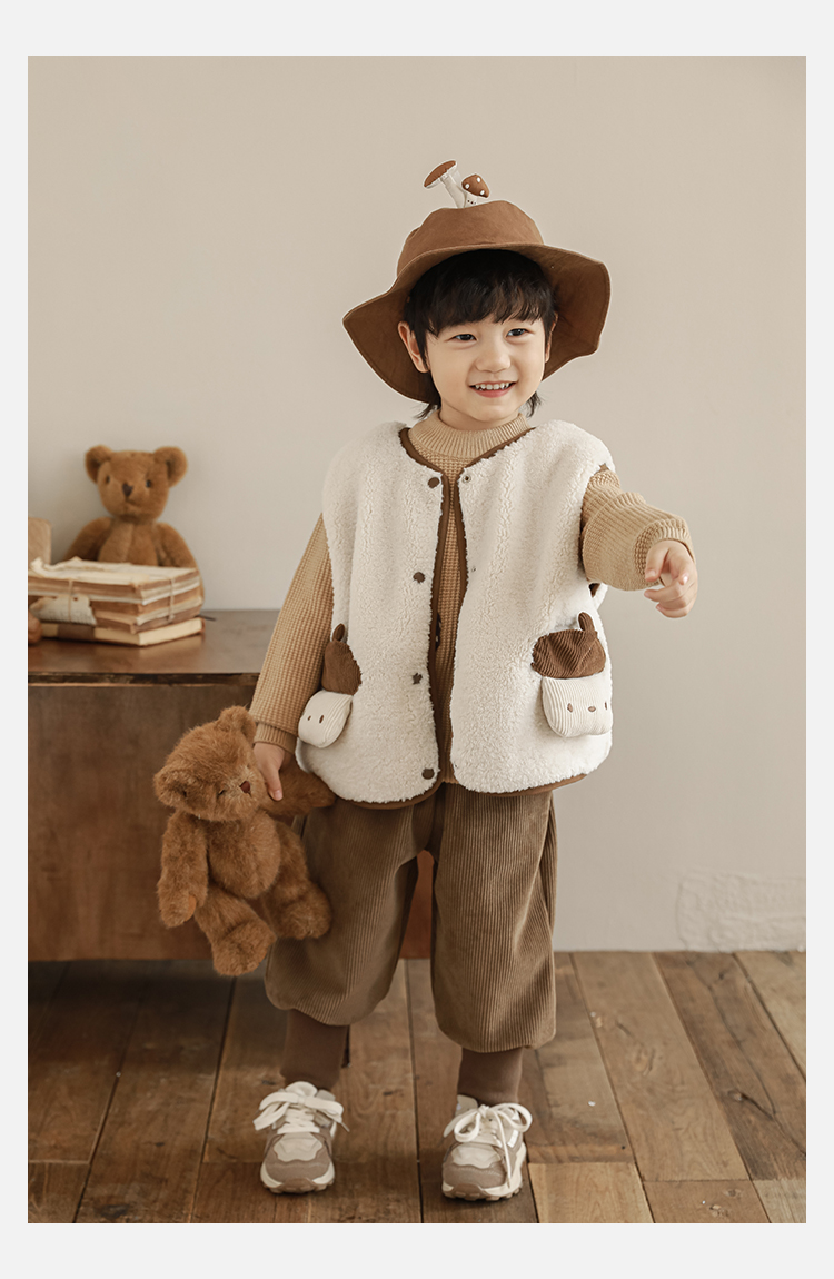 Wulibu Yinan 2025 새로운 스타일의 버섯 양면 조끼 겨울 스타일 아동 패션 트렌디 따뜻한 조끼 두꺼운