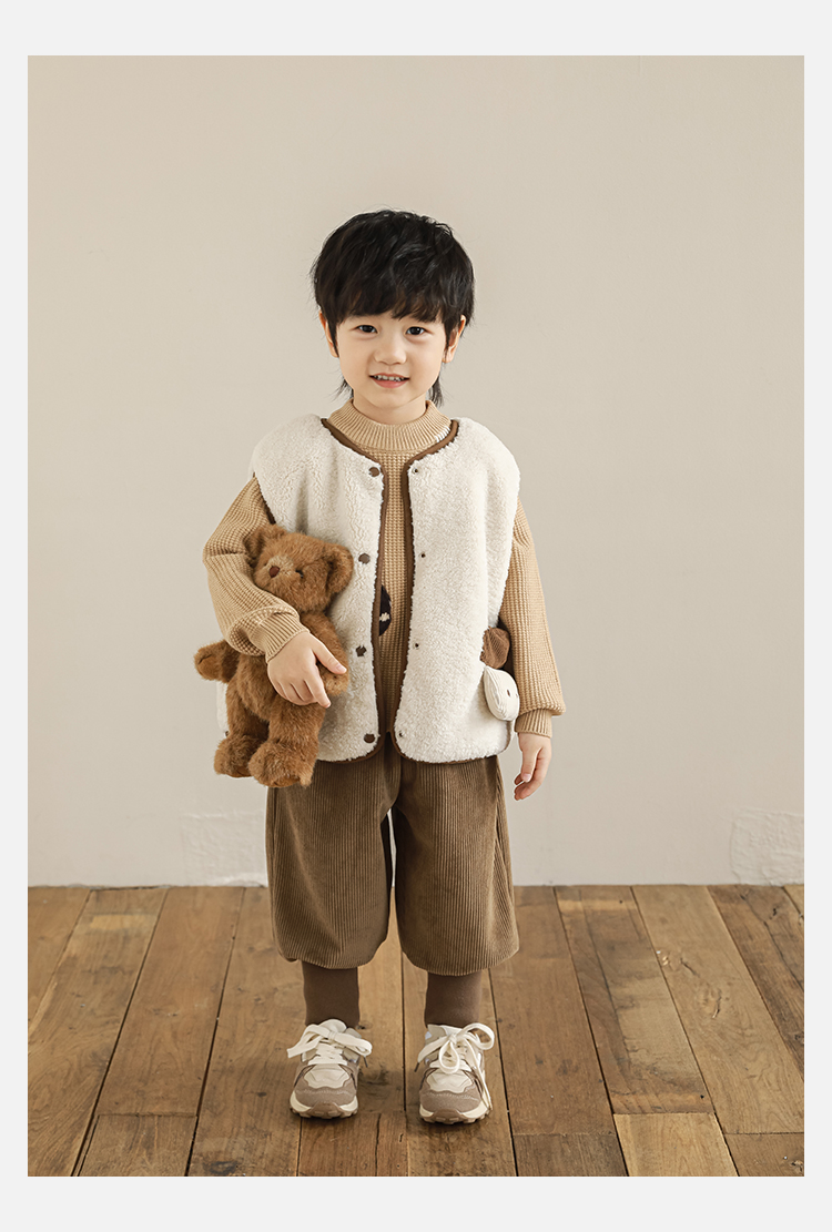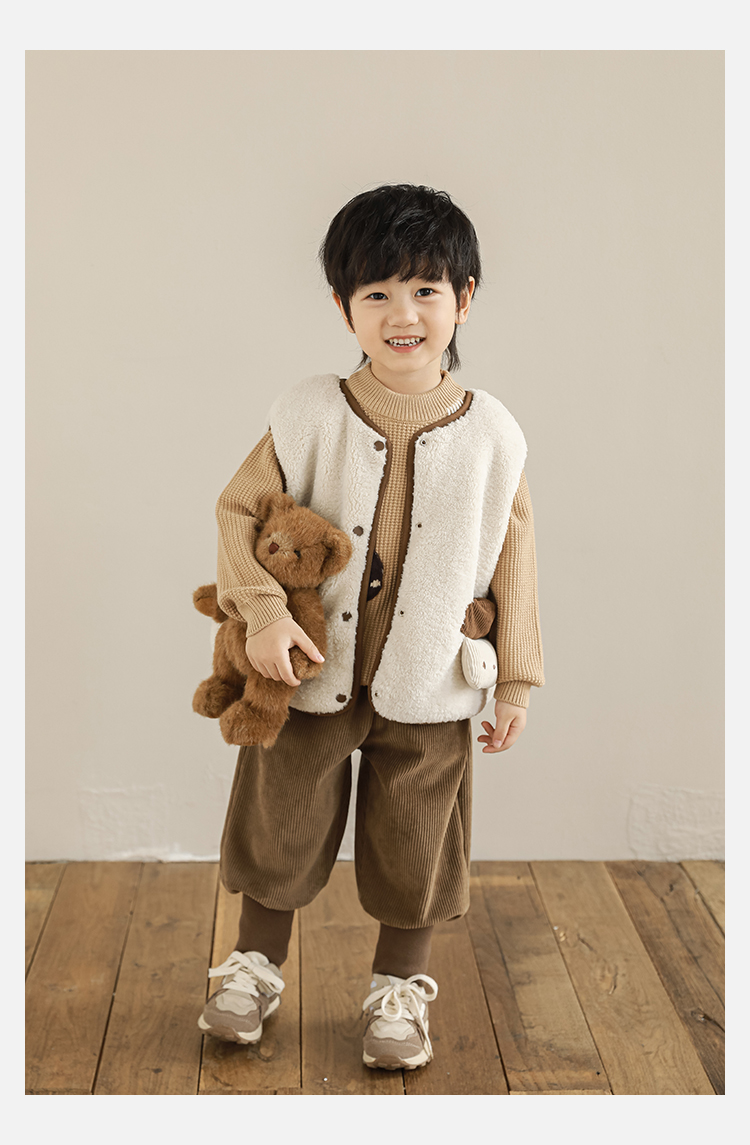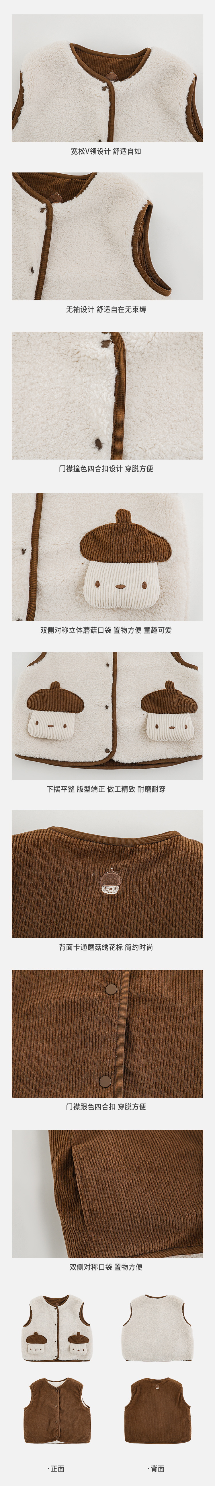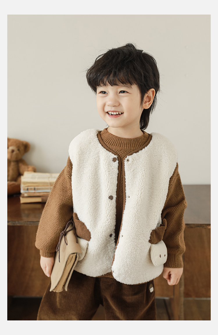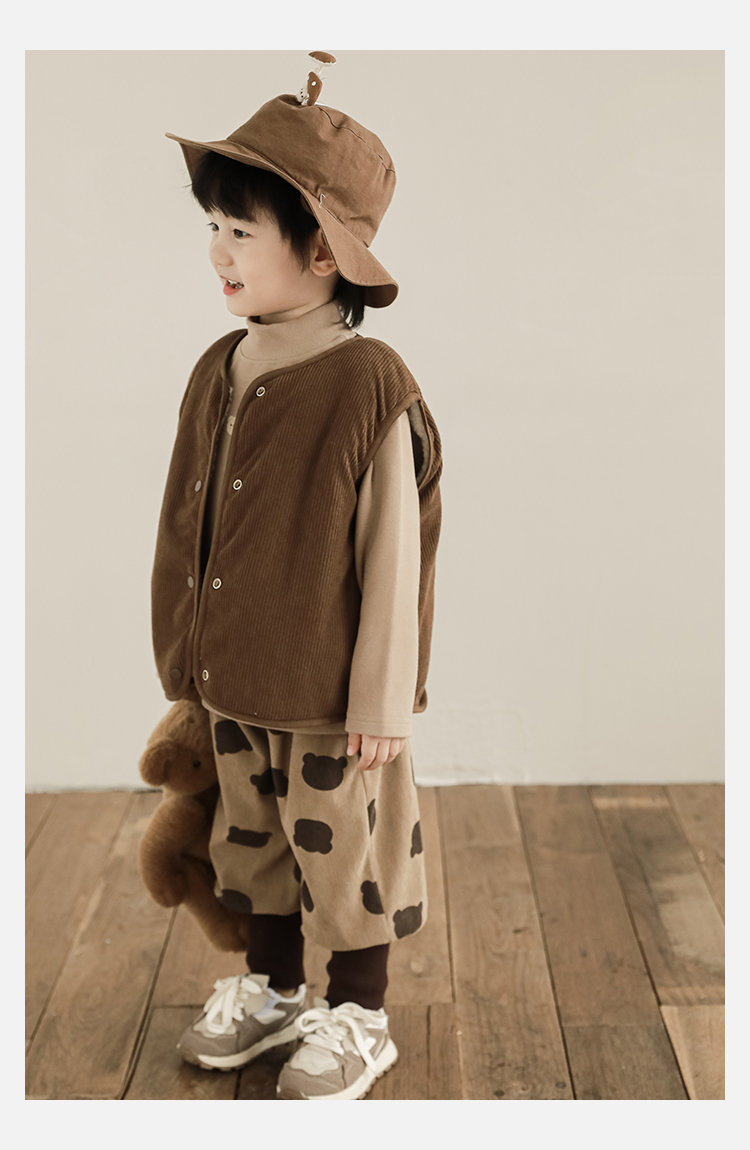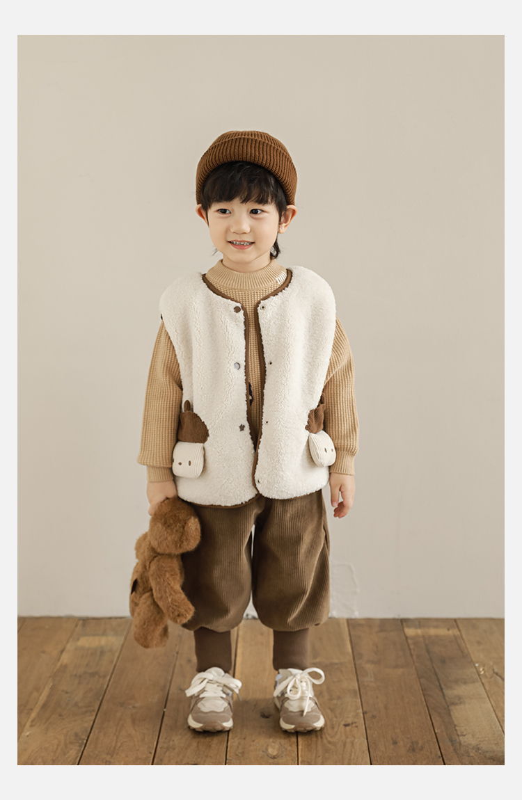 Wulibu Yinan 2025 새로운 스타일의 버섯 양면 조끼 겨울 스타일 아동 패션 트렌디 따뜻한 조끼 두꺼운