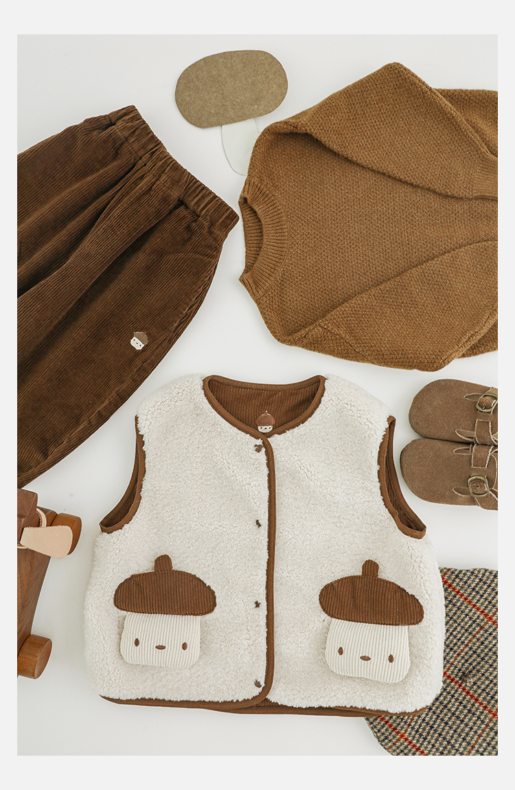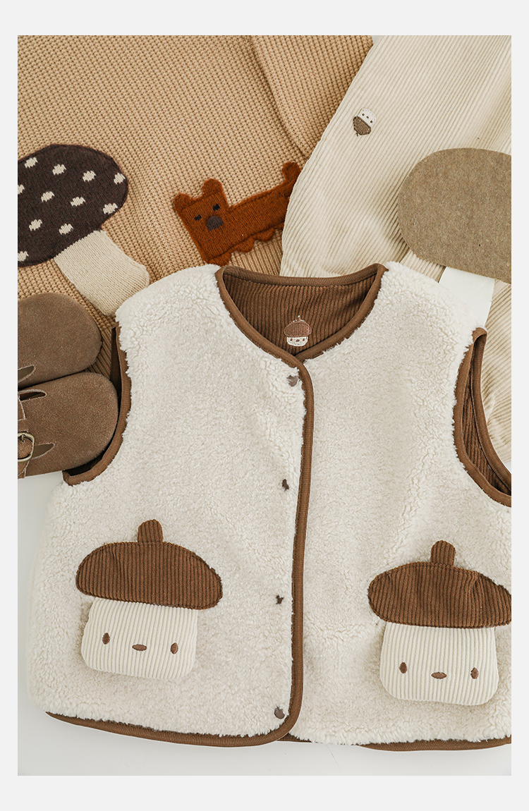 Wulibu Yinan 2025 새로운 스타일의 버섯 양면 조끼 겨울 스타일 아동 패션 트렌디 따뜻한 조끼 두꺼운스토어 가기