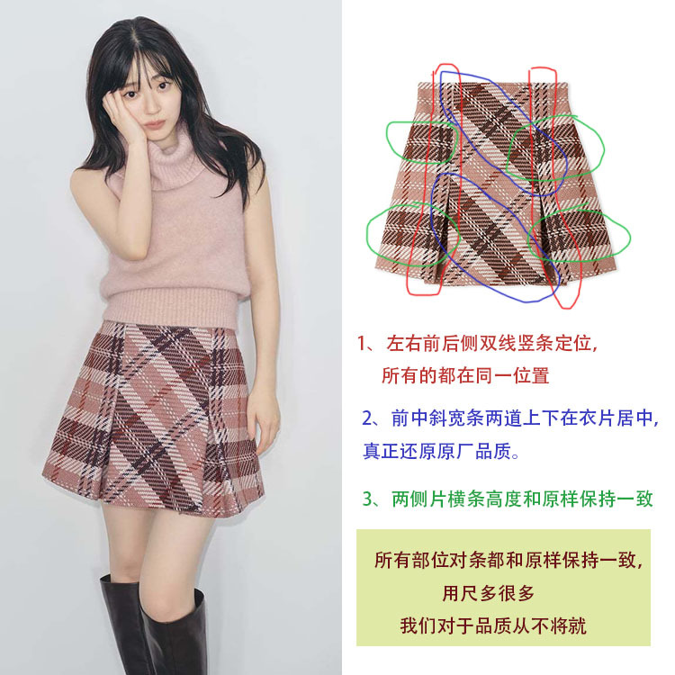 S가족 24 가을 신상 일본풍 달콤하고 다재다능한 하이웨이스트 거즈 체크 미니 스커트 SWFS244086 빅 사이즈