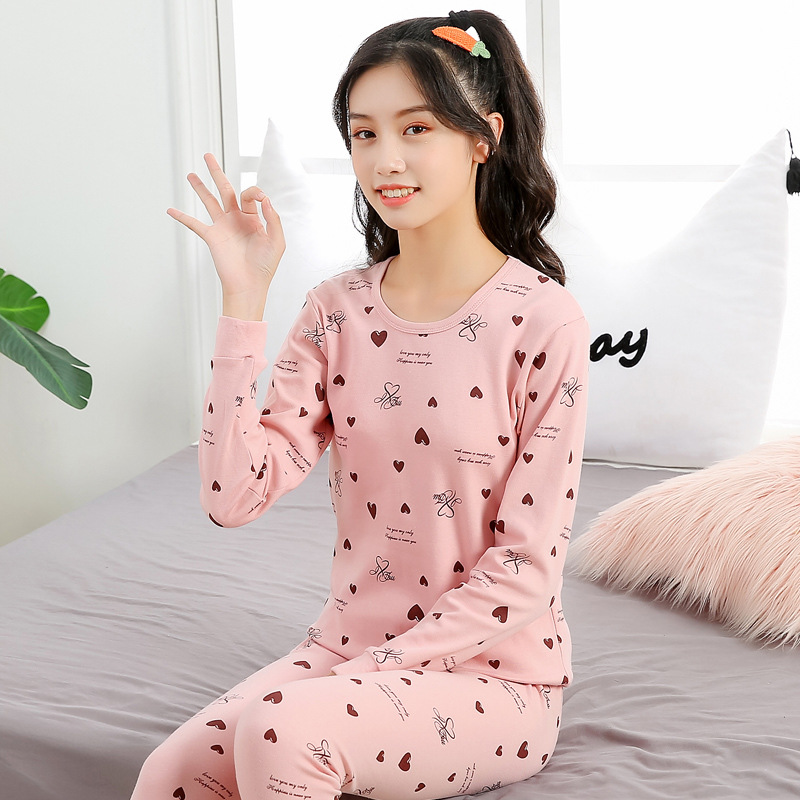 가을과 겨울에 세트 CUHK 어린이 가을 옷과 바지 순면 열 속옷 가정 옷 청소년과 학생은베이스 파자마 A스토어 가기