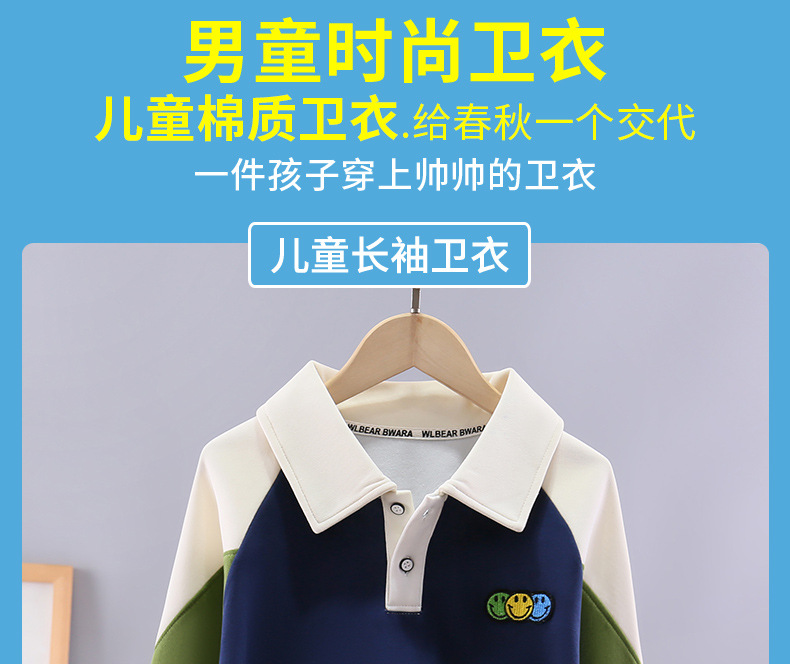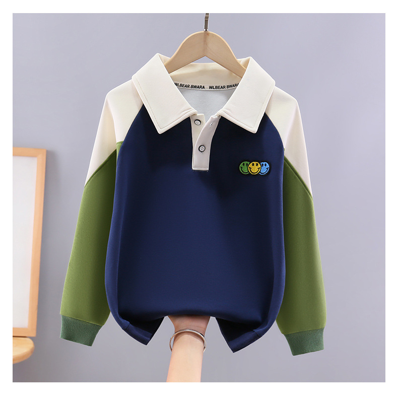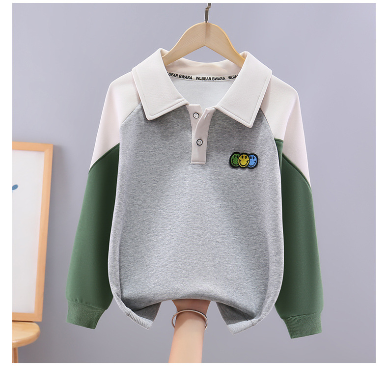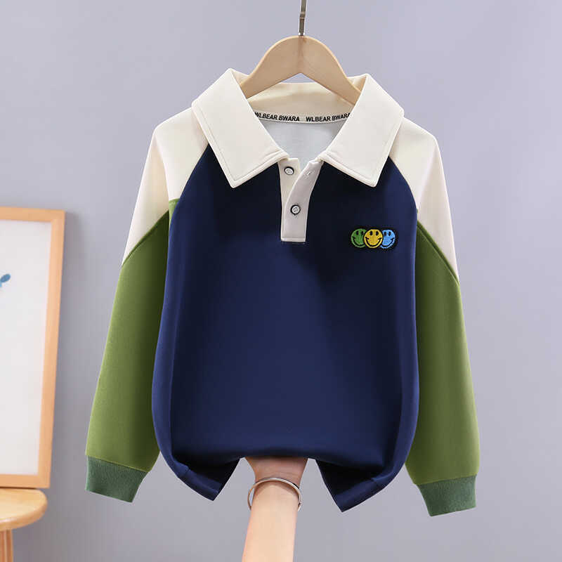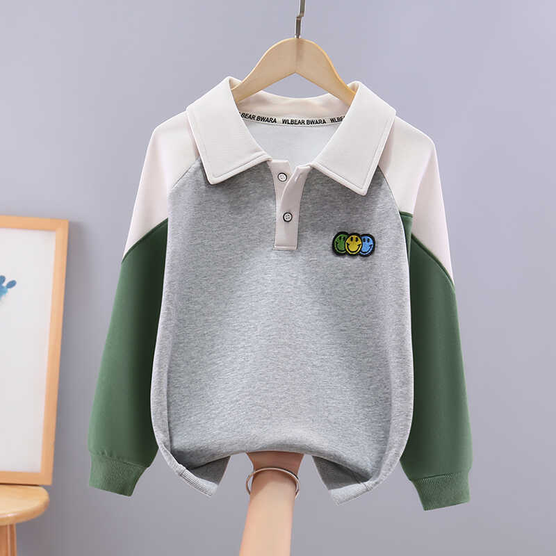 소년 스웨트 셔츠 컬러 블록 옷깃 어린이 폴로 칼라 탑 봄과 가을 옷 유행 큰 어린이 서양식 소년 티셔츠 옷